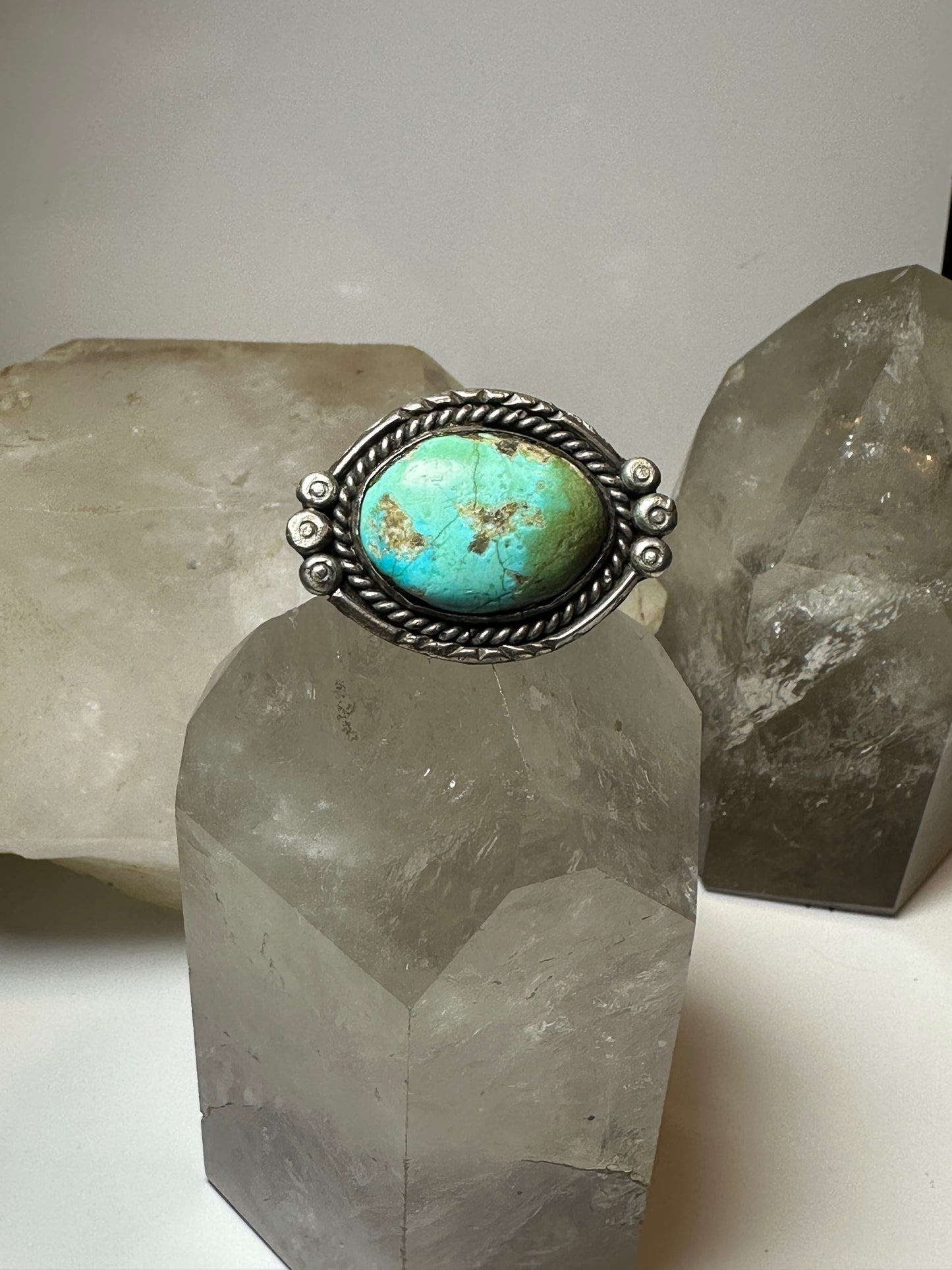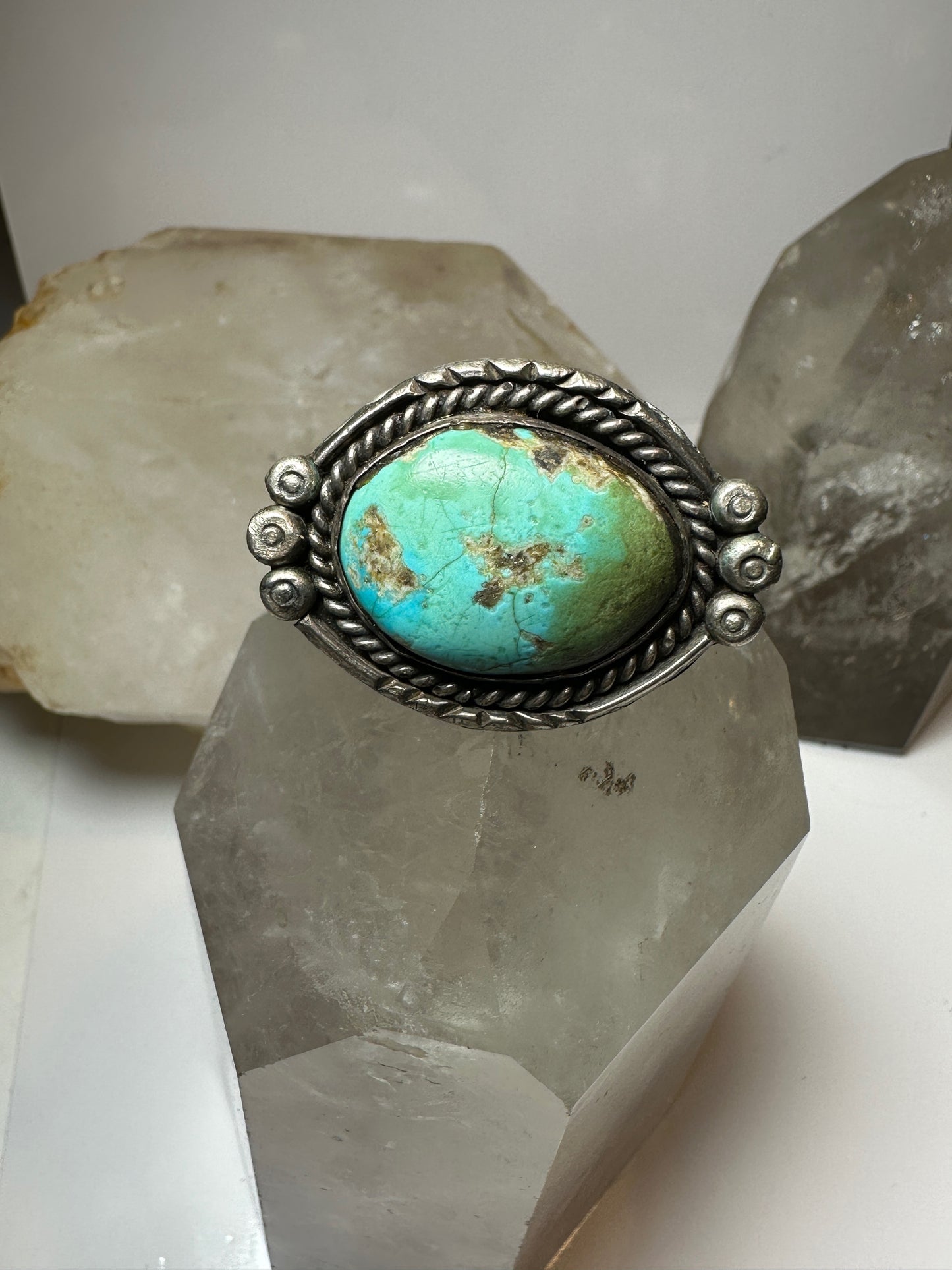 Turquoise ring size 7.50 adj southwest sterling silver women