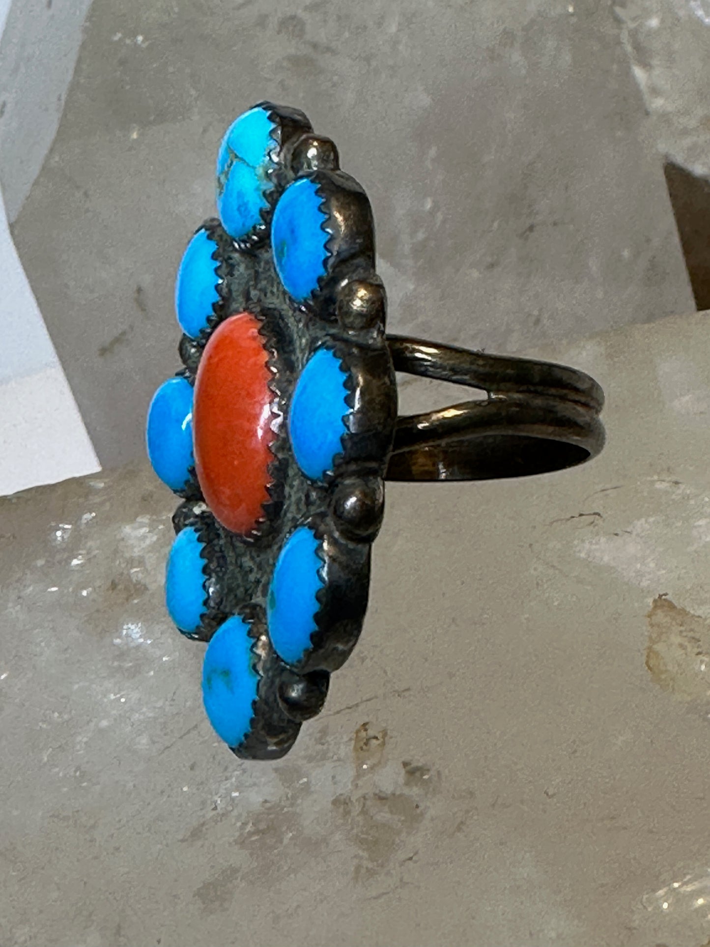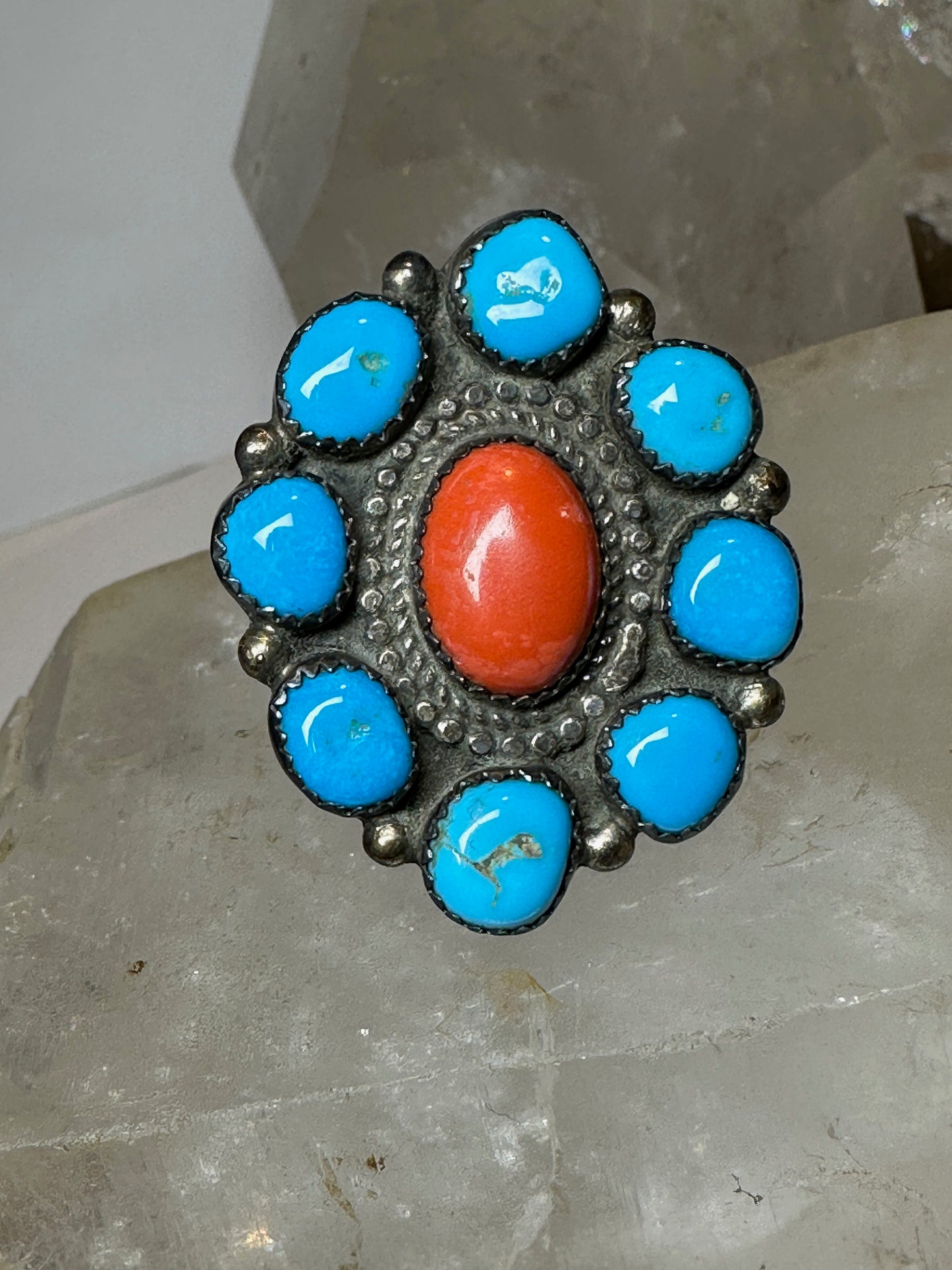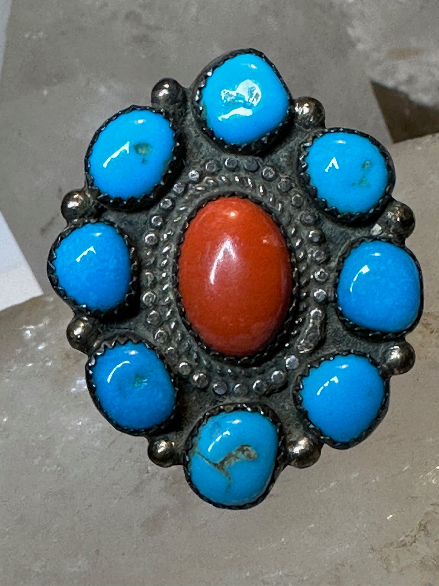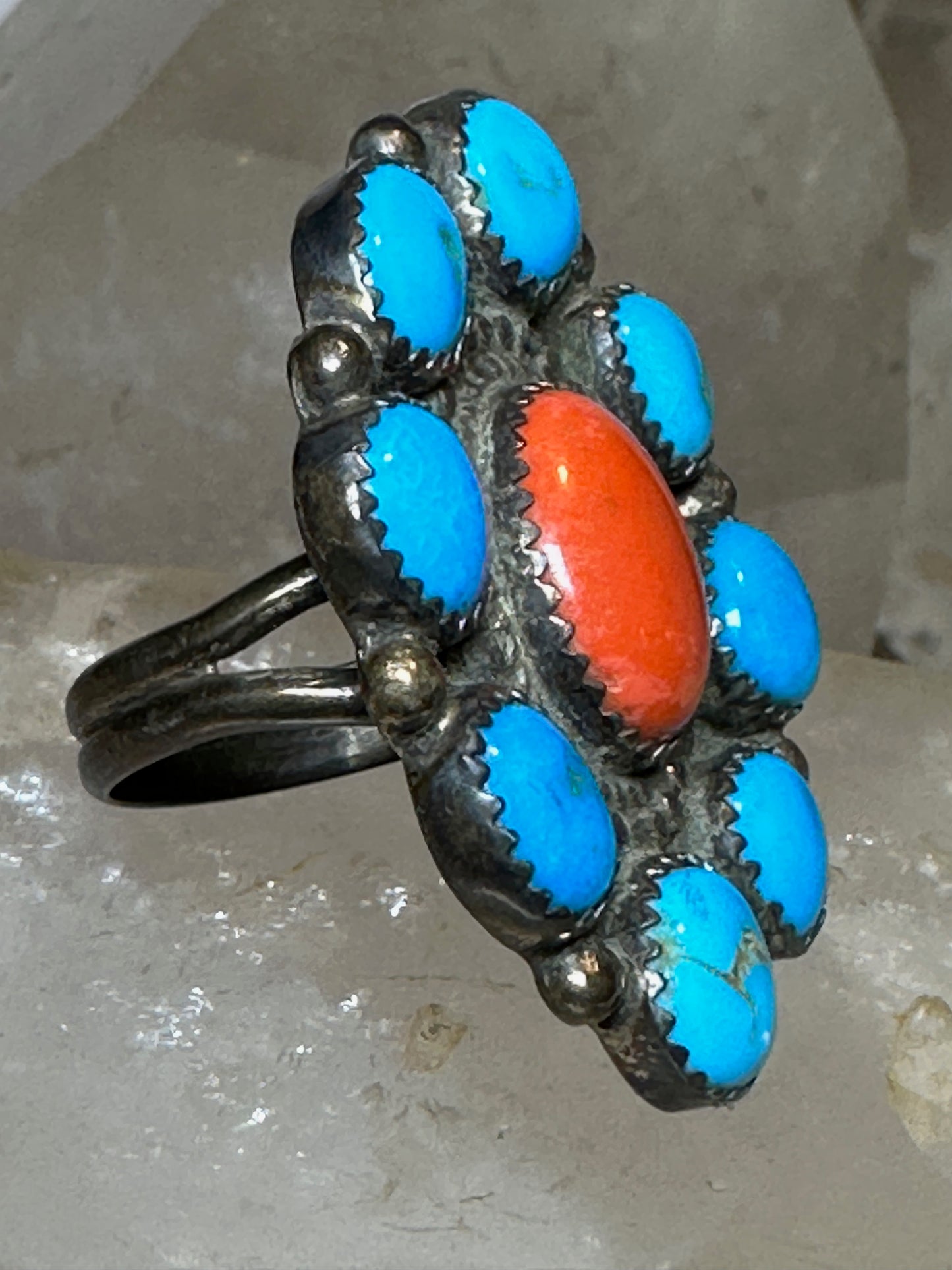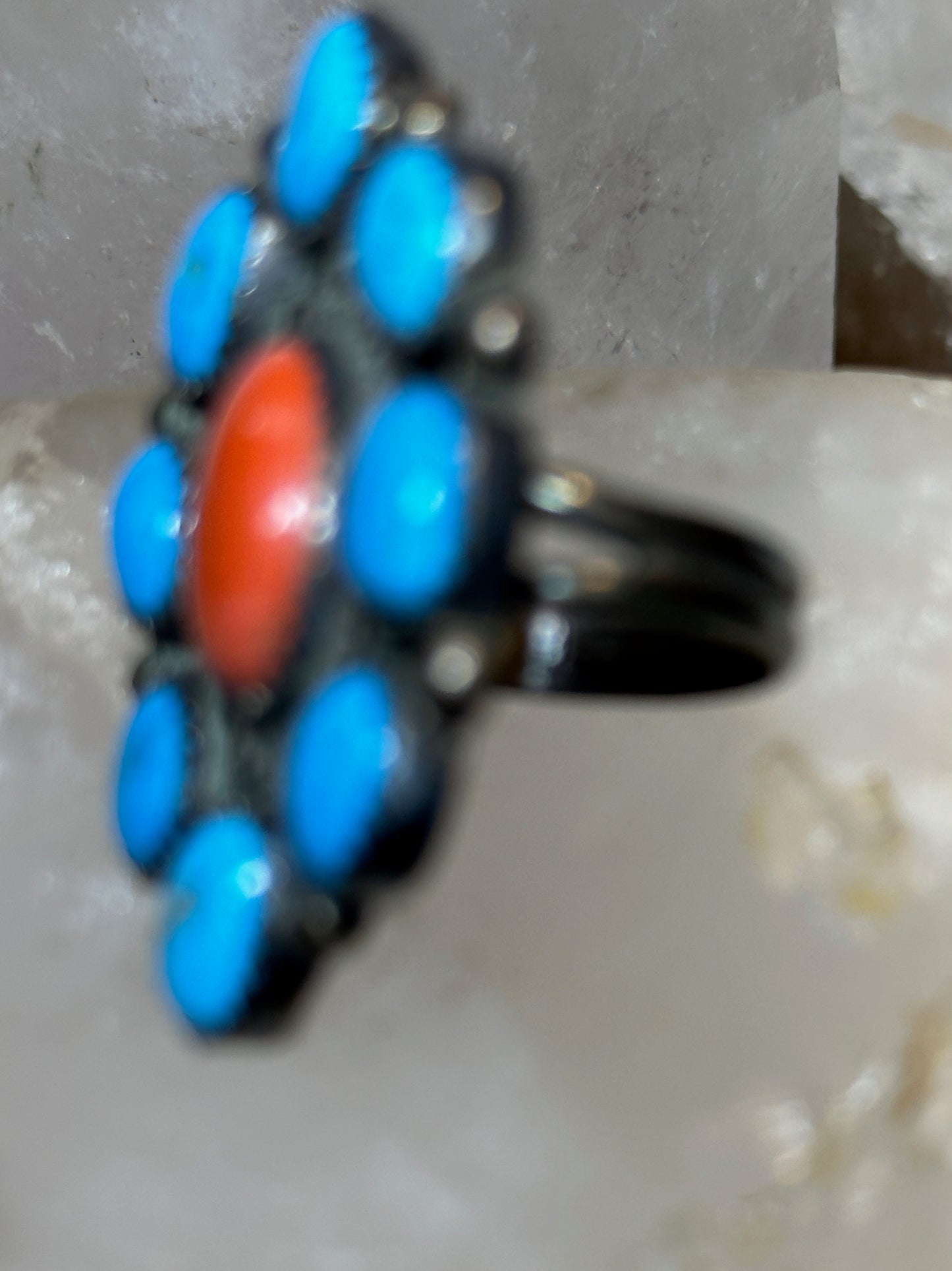 Turquoise ring size 8.25 coral Zuni sterling silver women