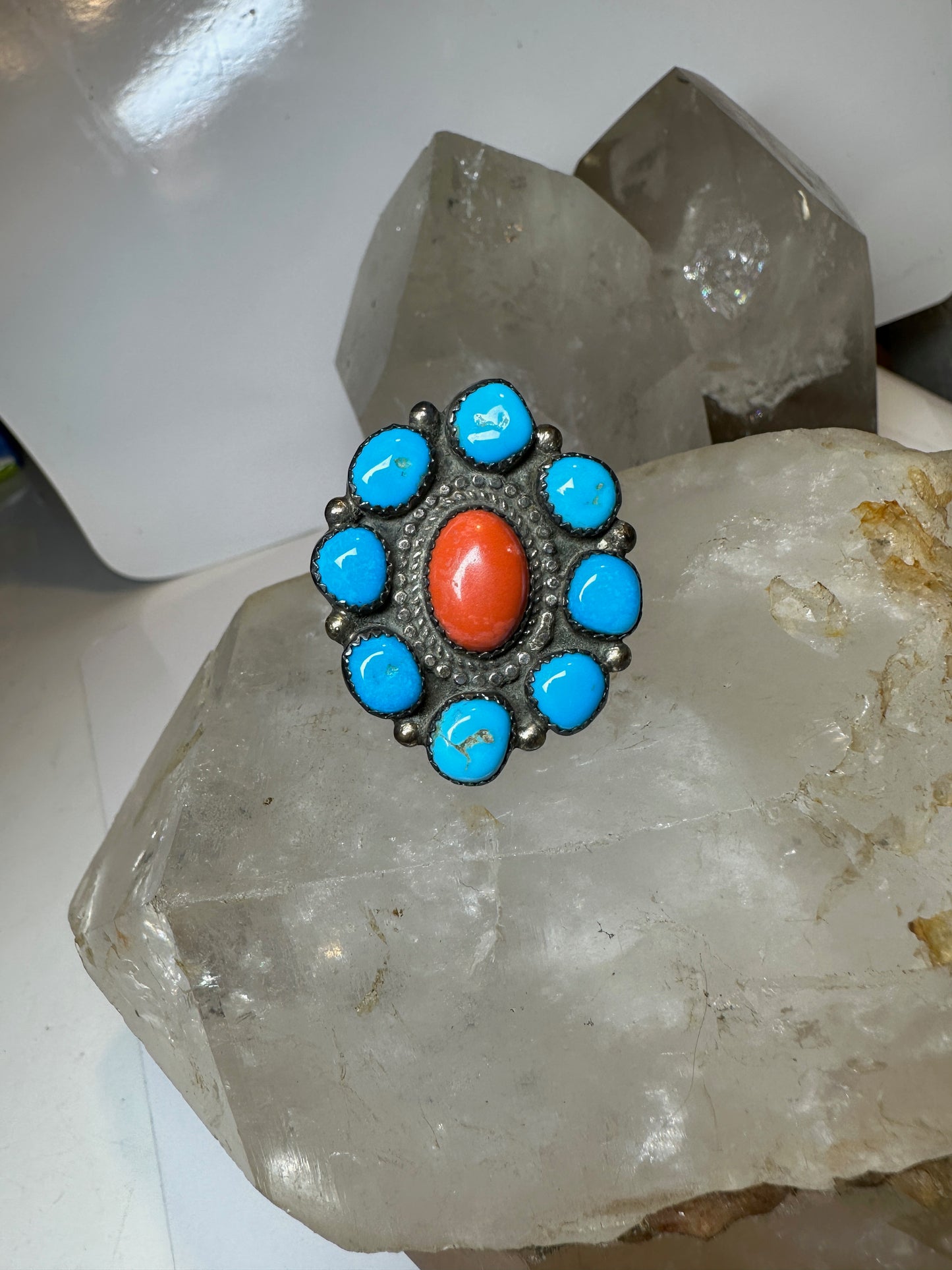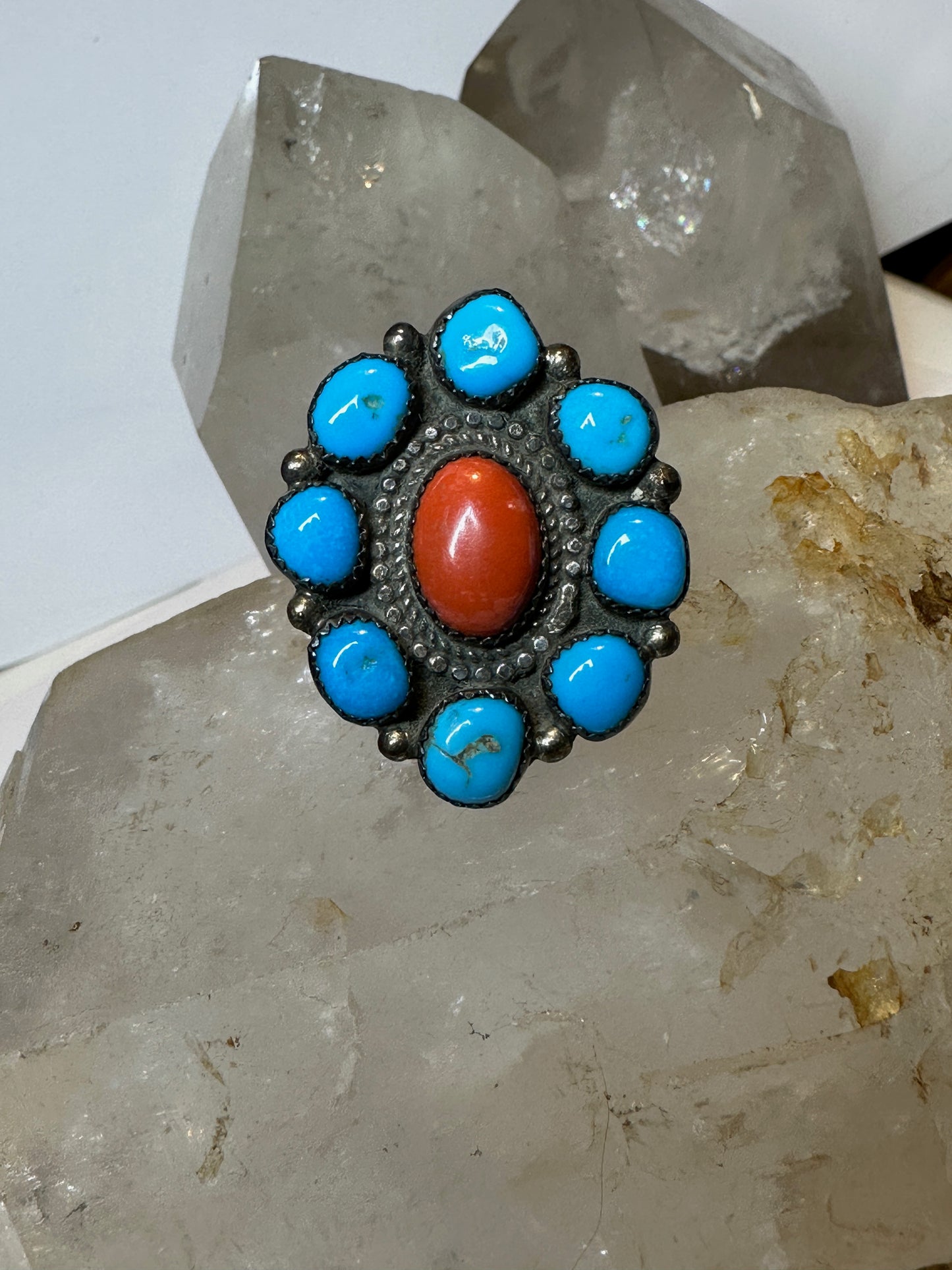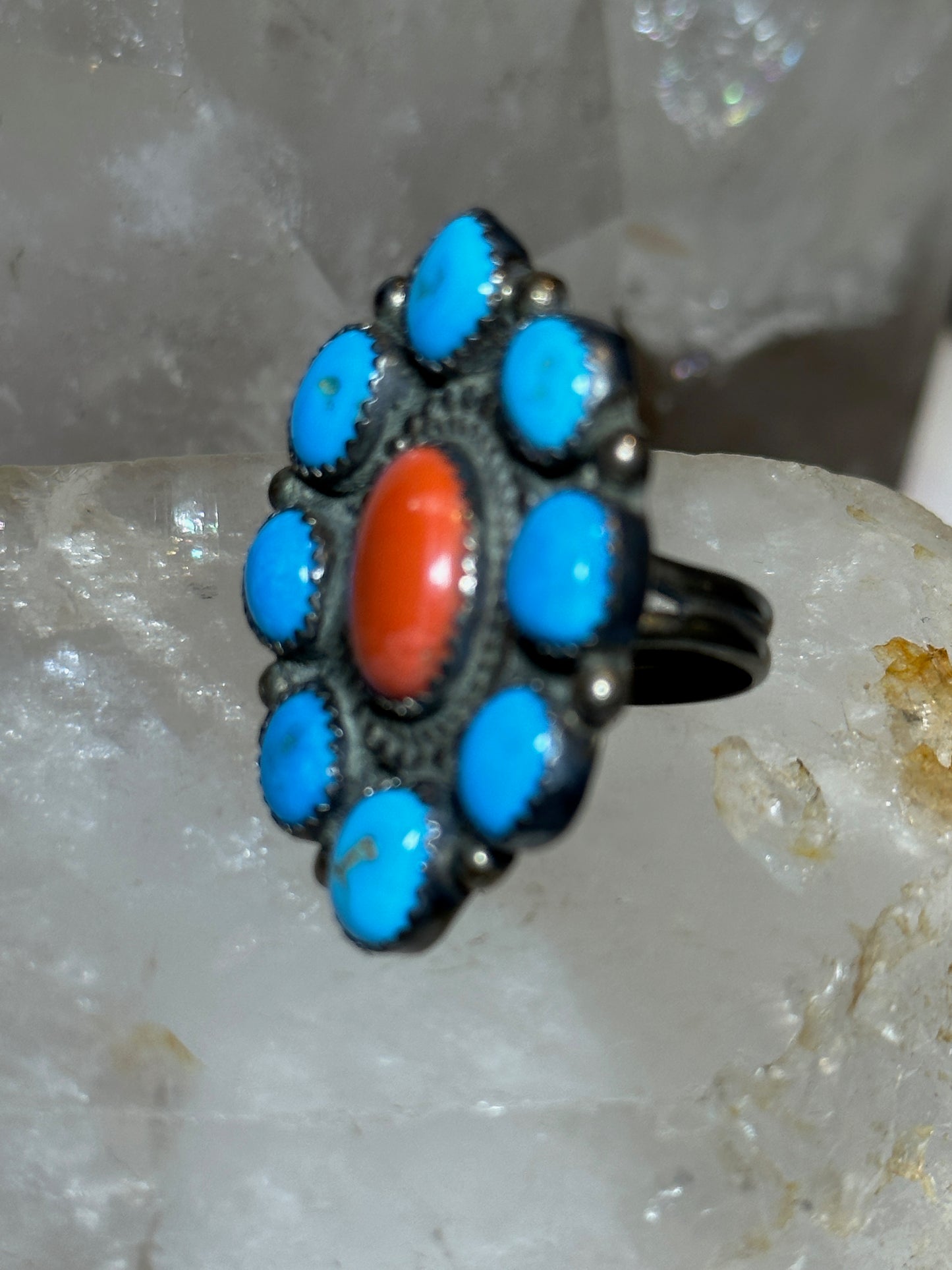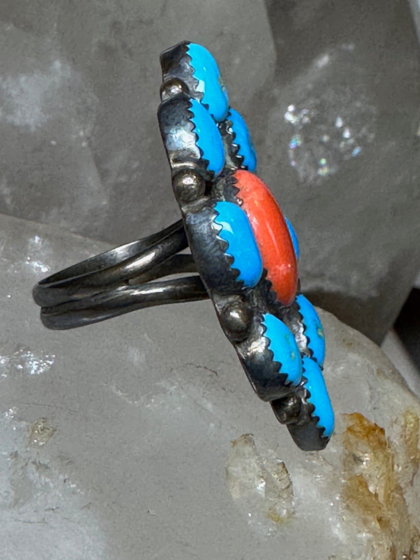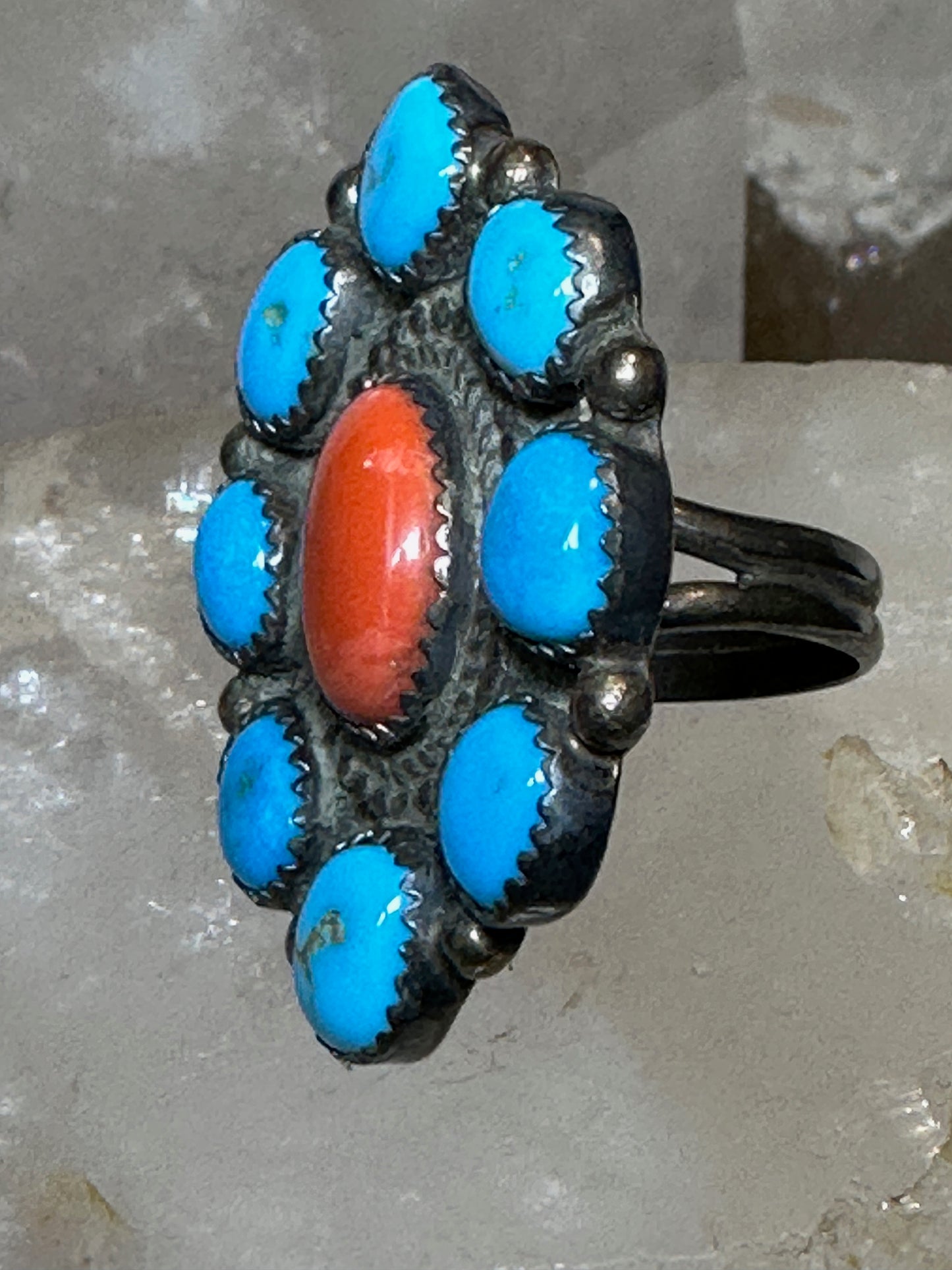 Turquoise ring size 8.25 coral Zuni sterling silver women