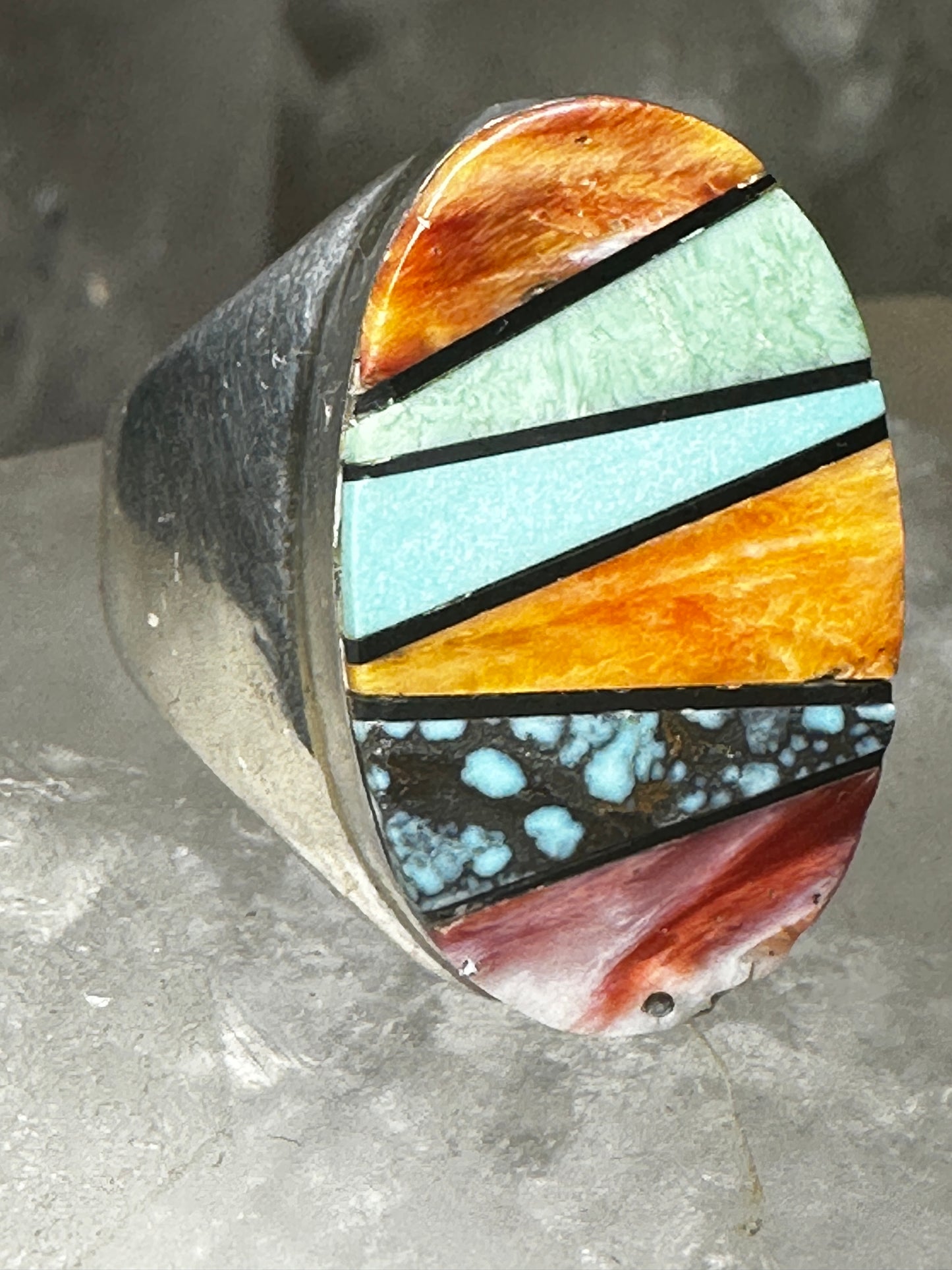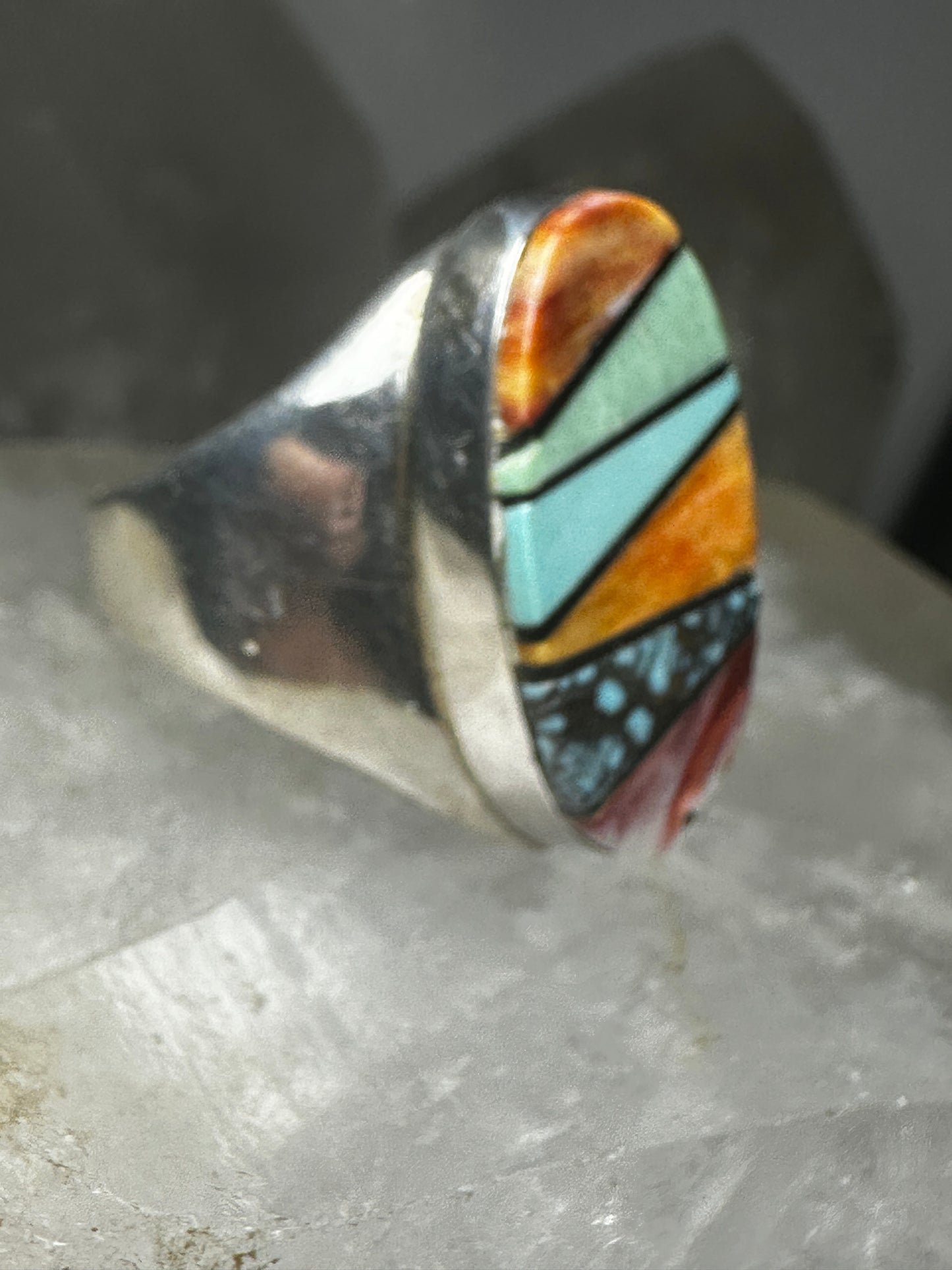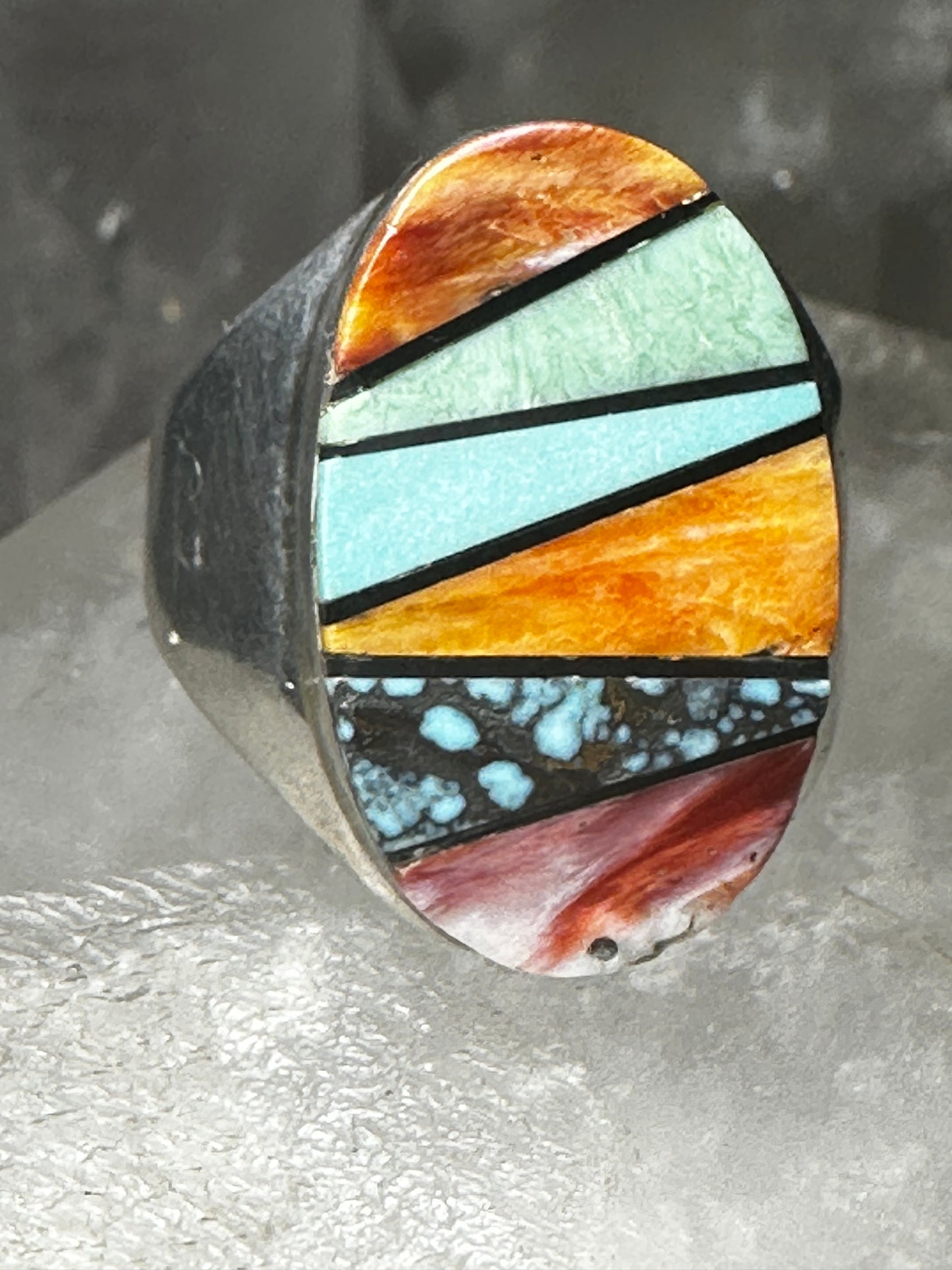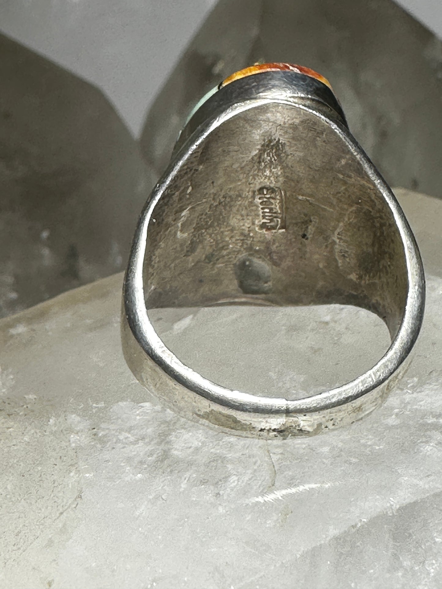Turquoise ring spiny oyster size 11 cigar band sterling silver women men