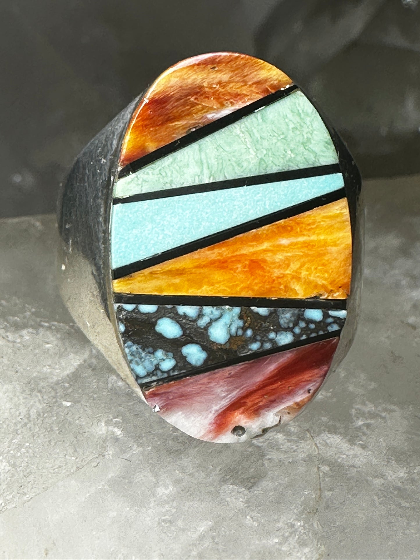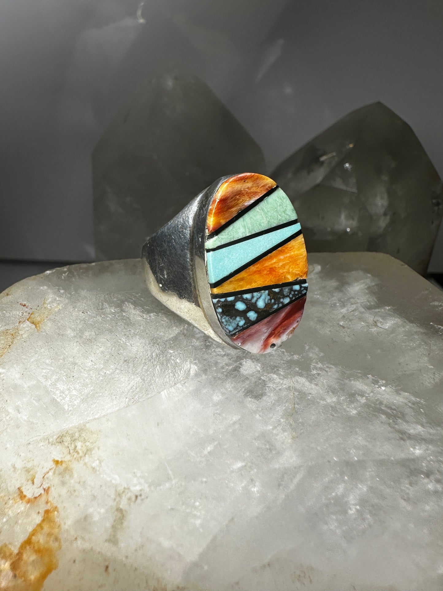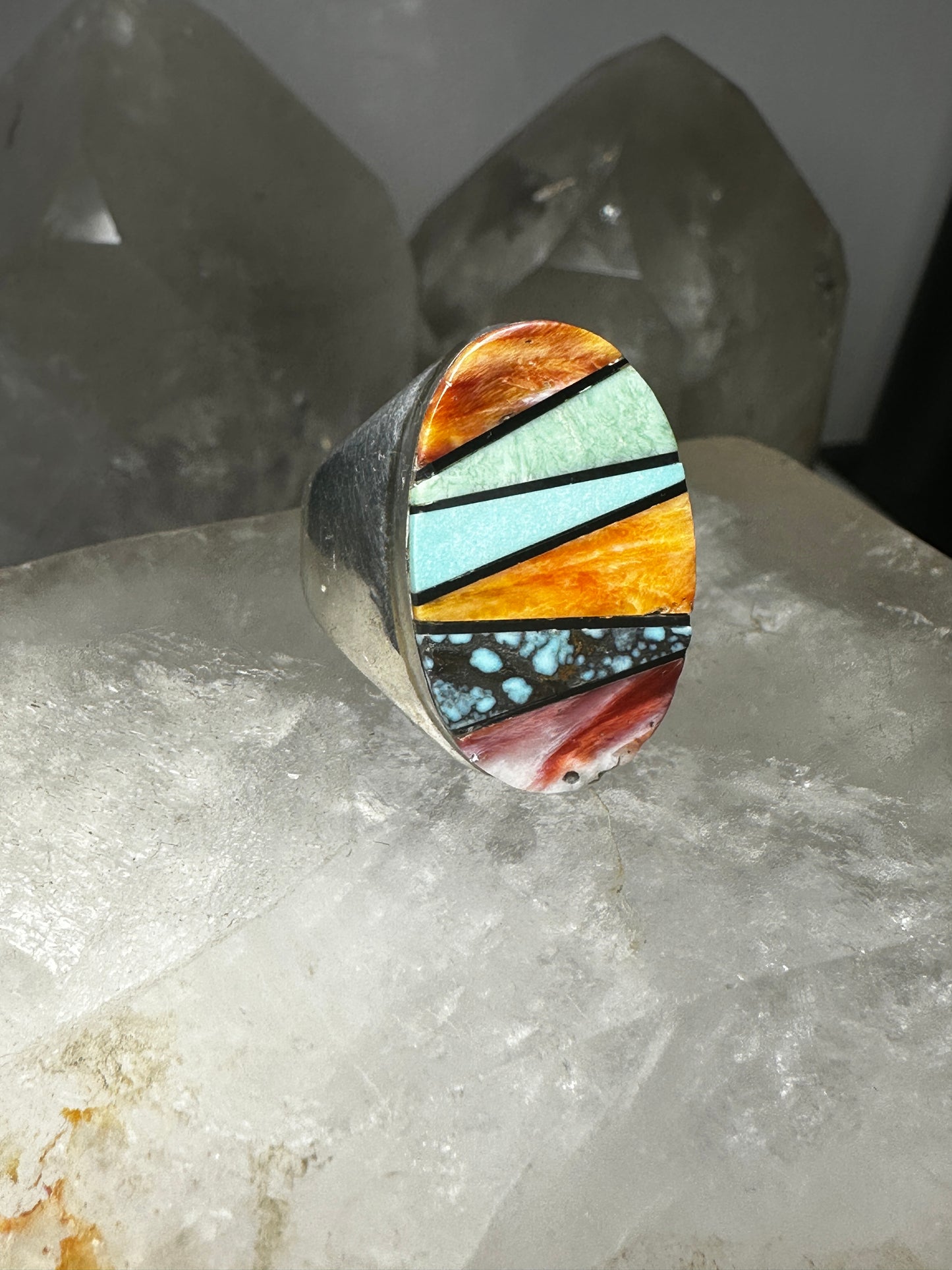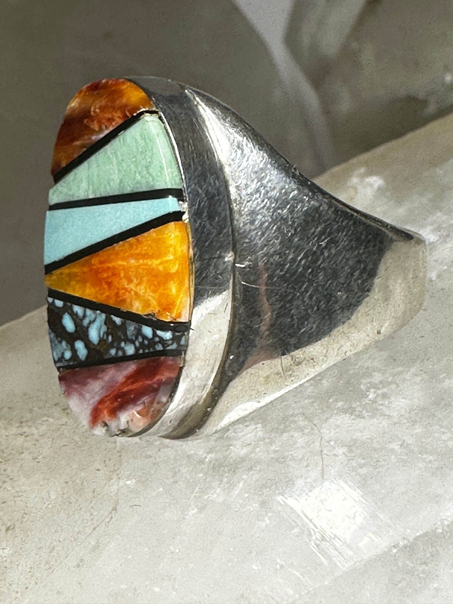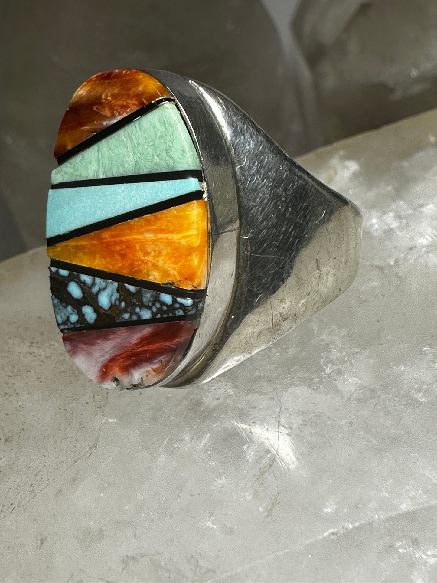 Turquoise ring spiny oyster size 11 cigar band sterling silver women men
