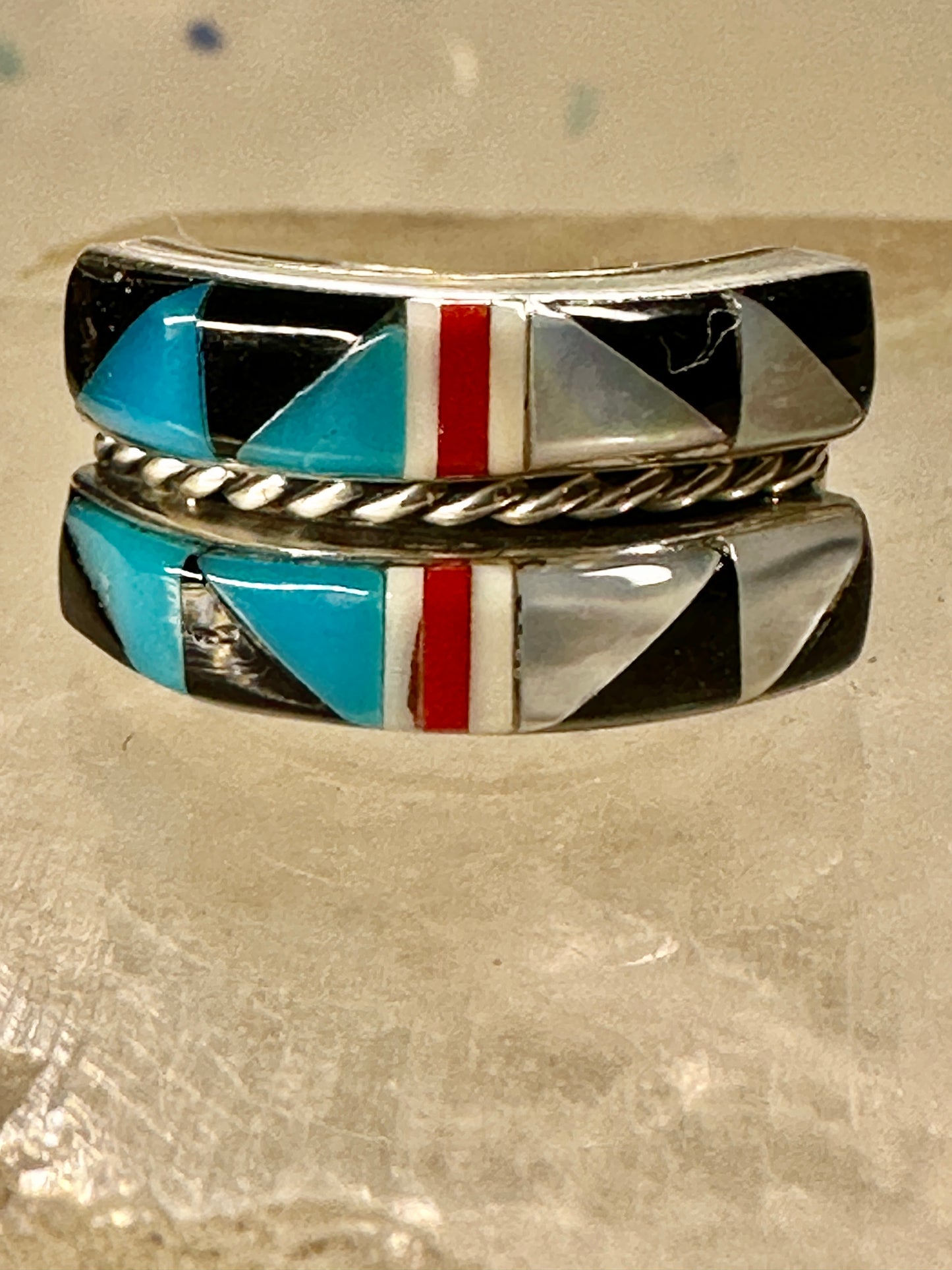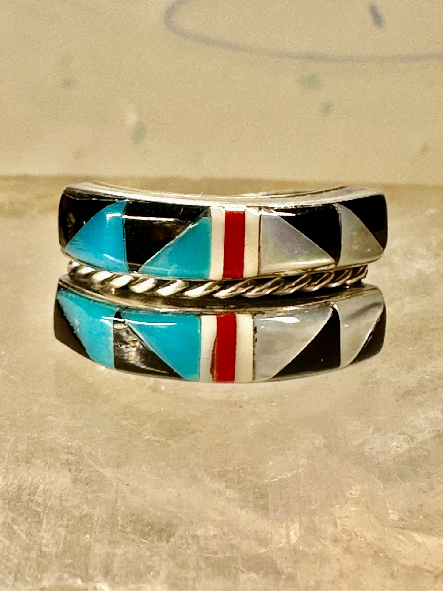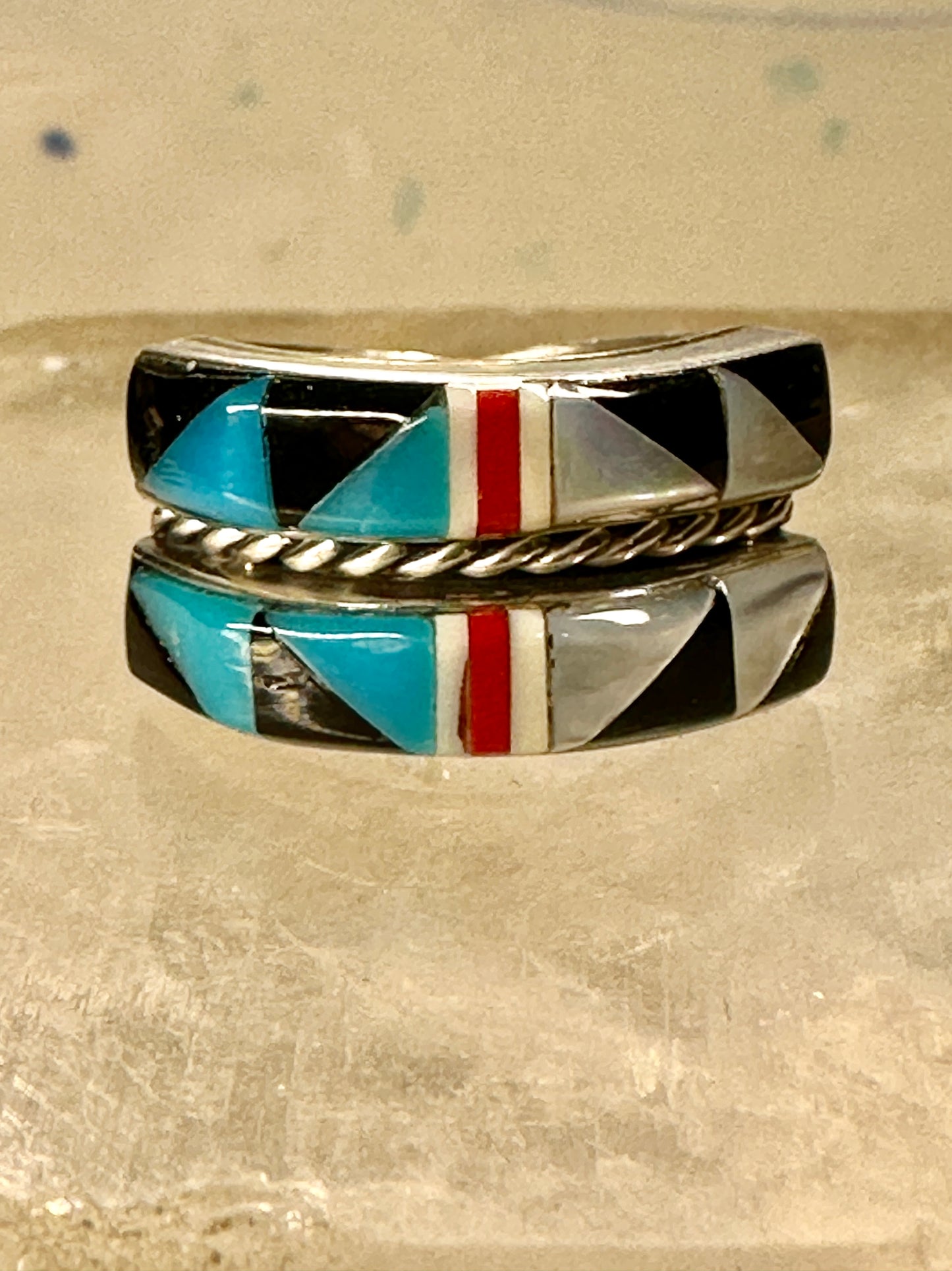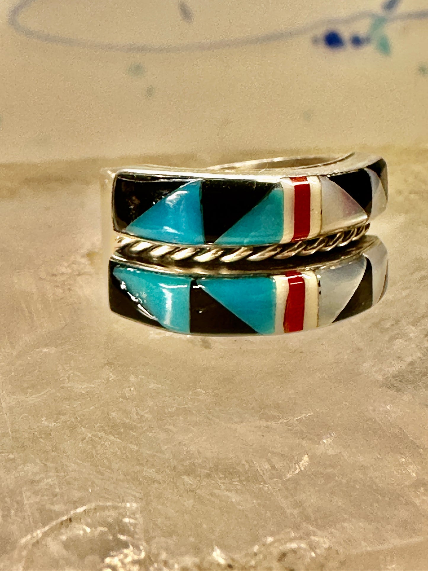 Turquoise ring Zuni band Coral southwest size 5.75 sterling silver girls women