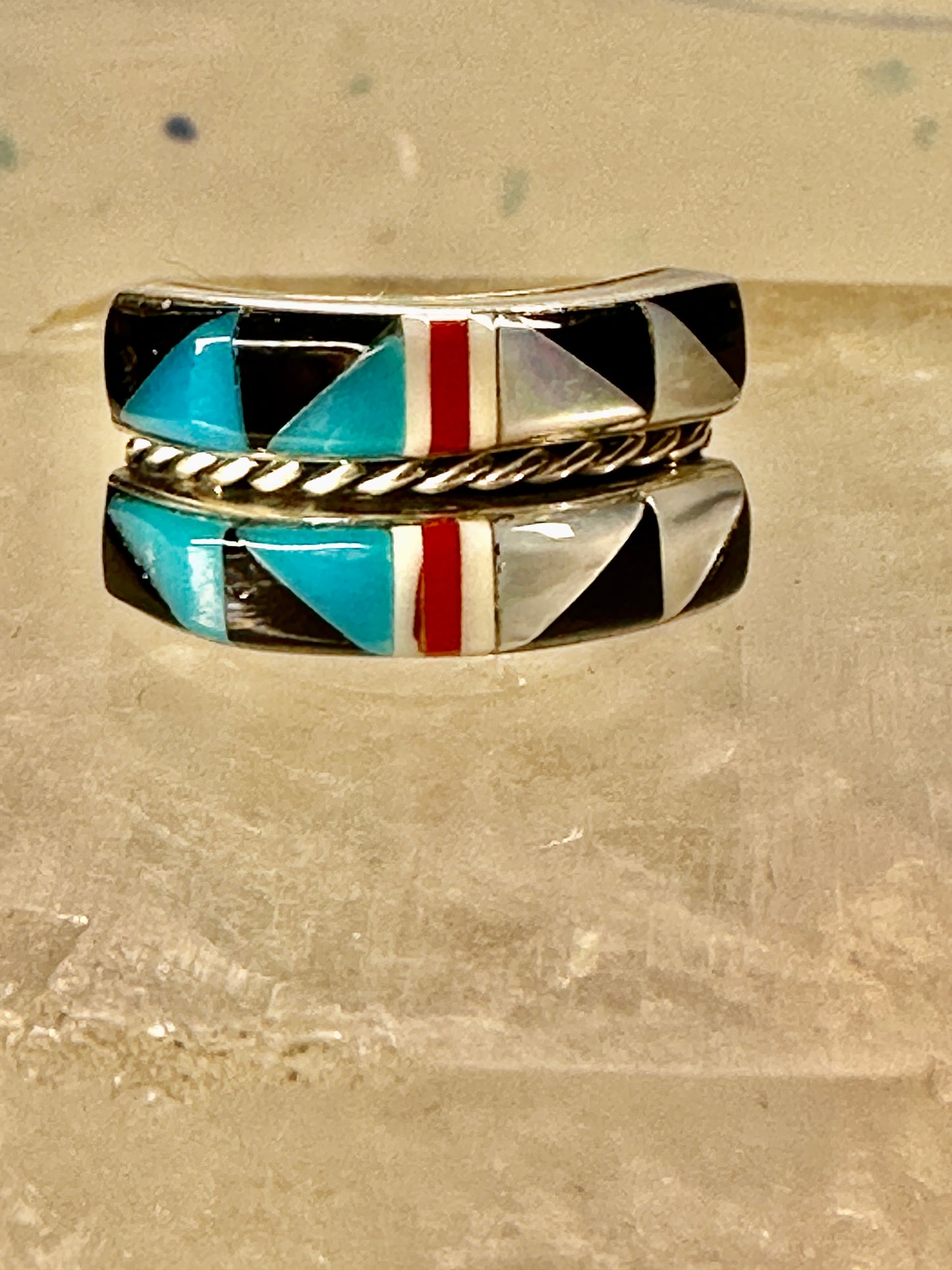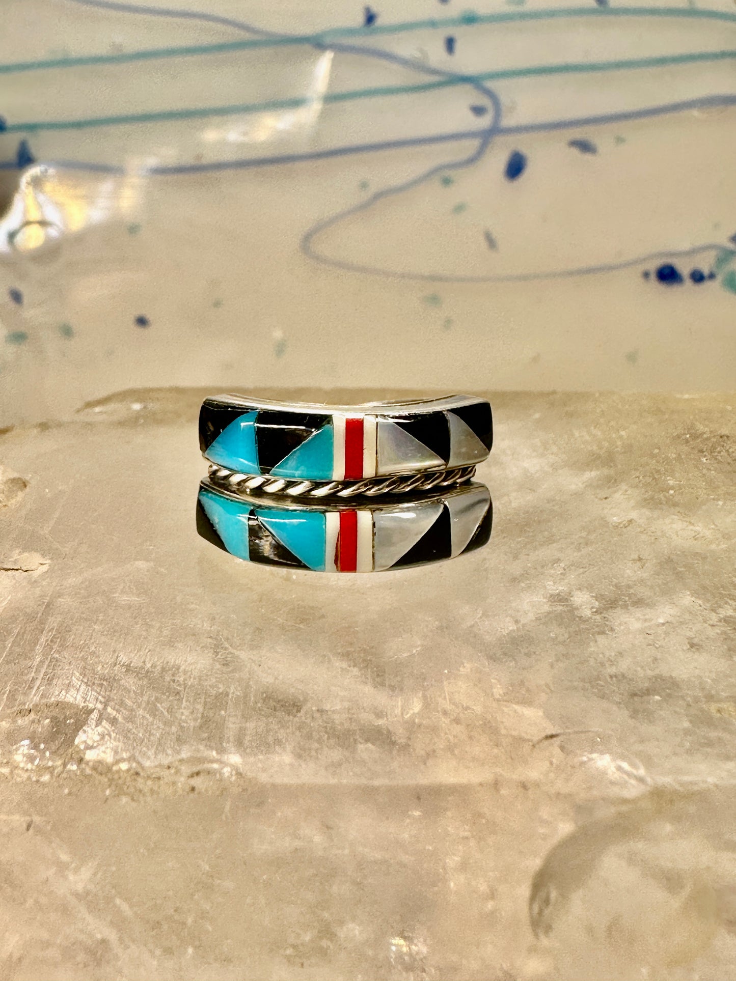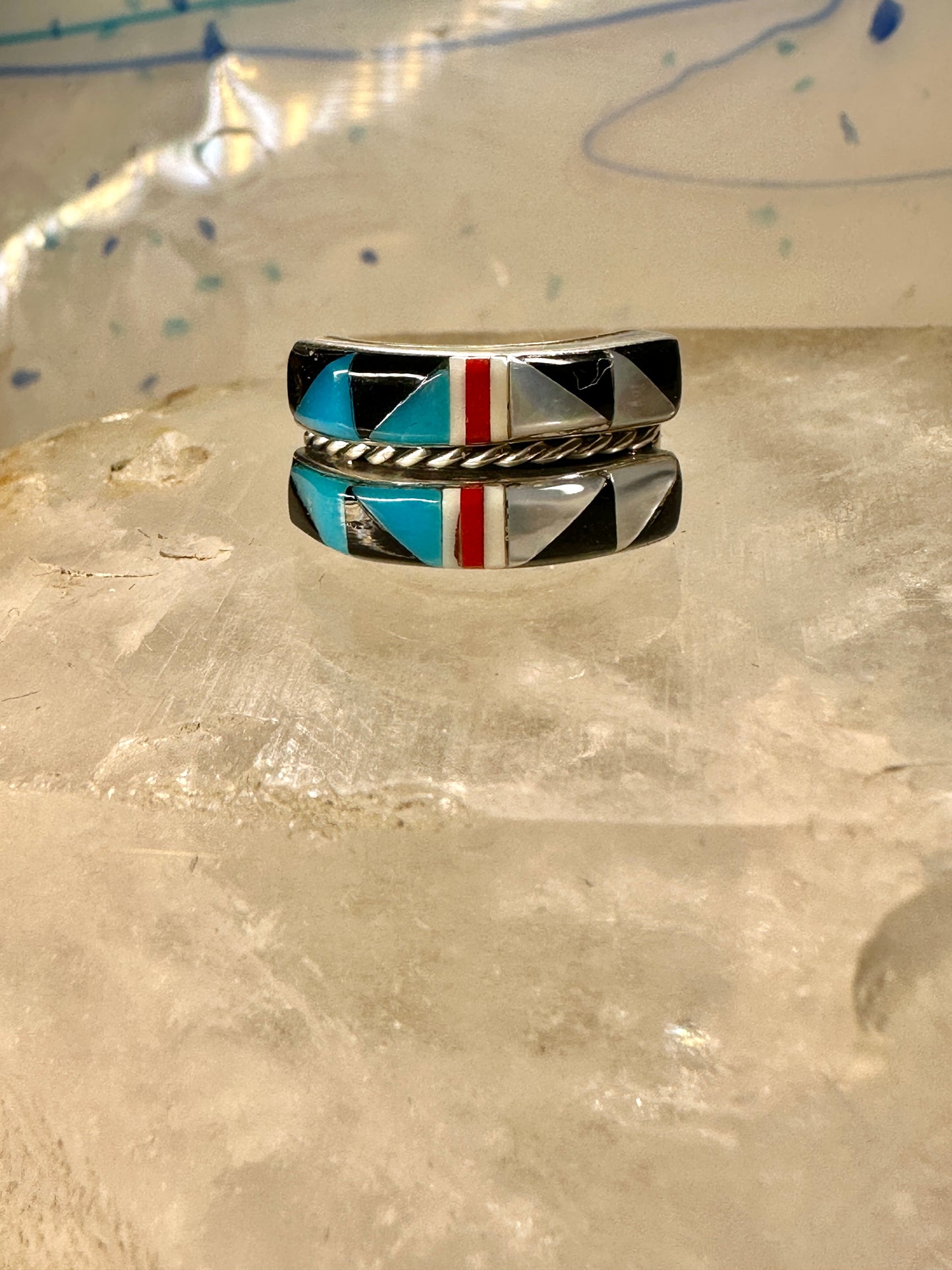 Turquoise ring Zuni band Coral southwest size 5.75 sterling silver girls women