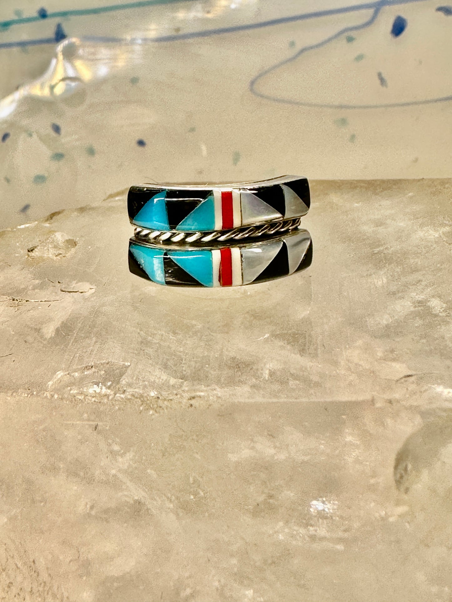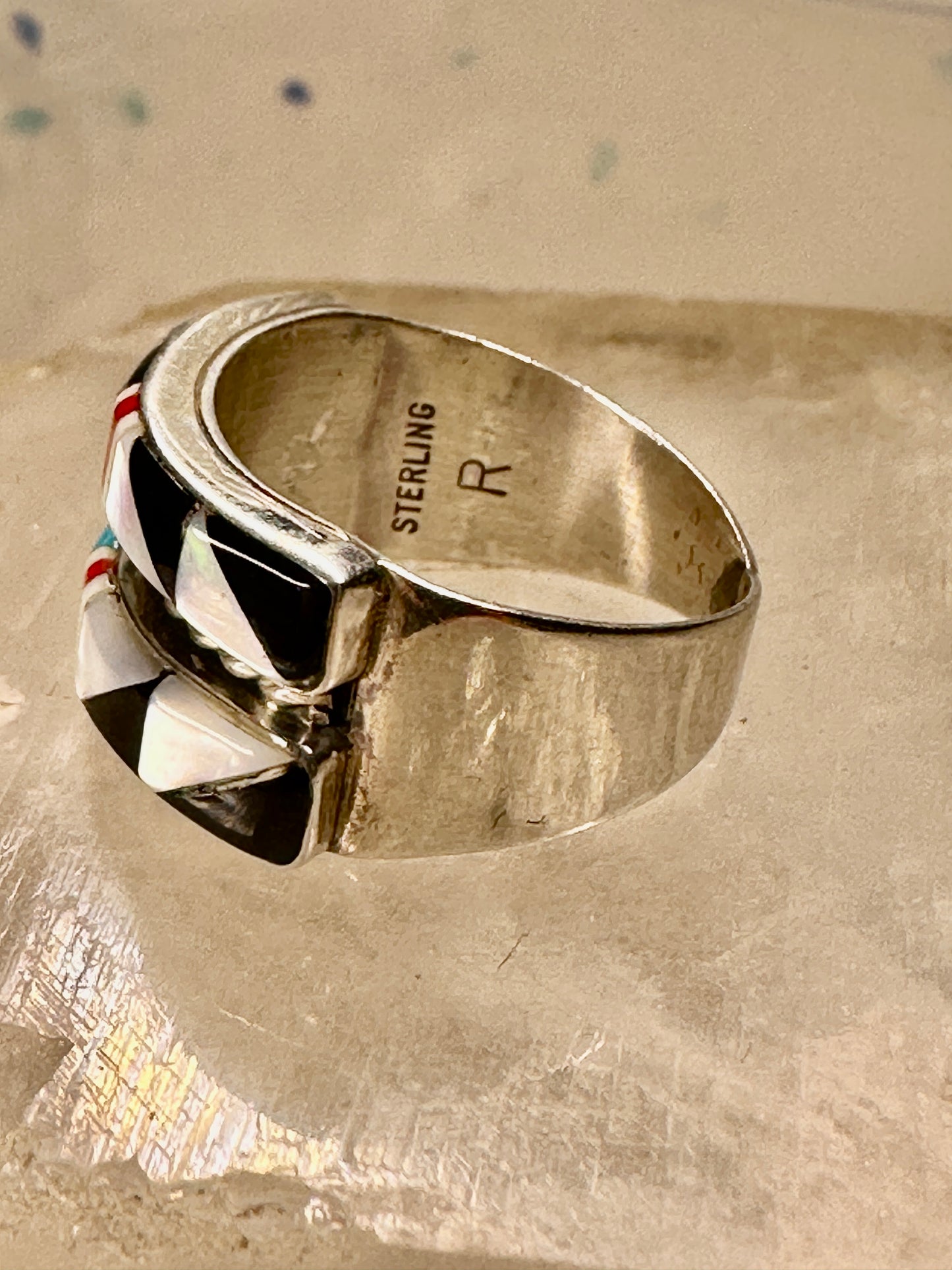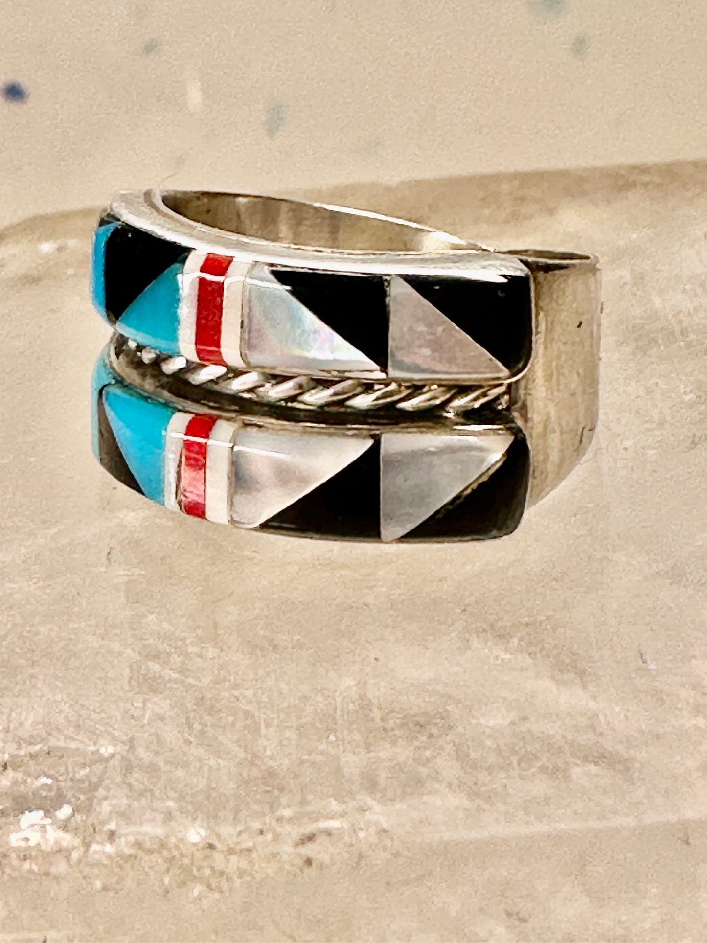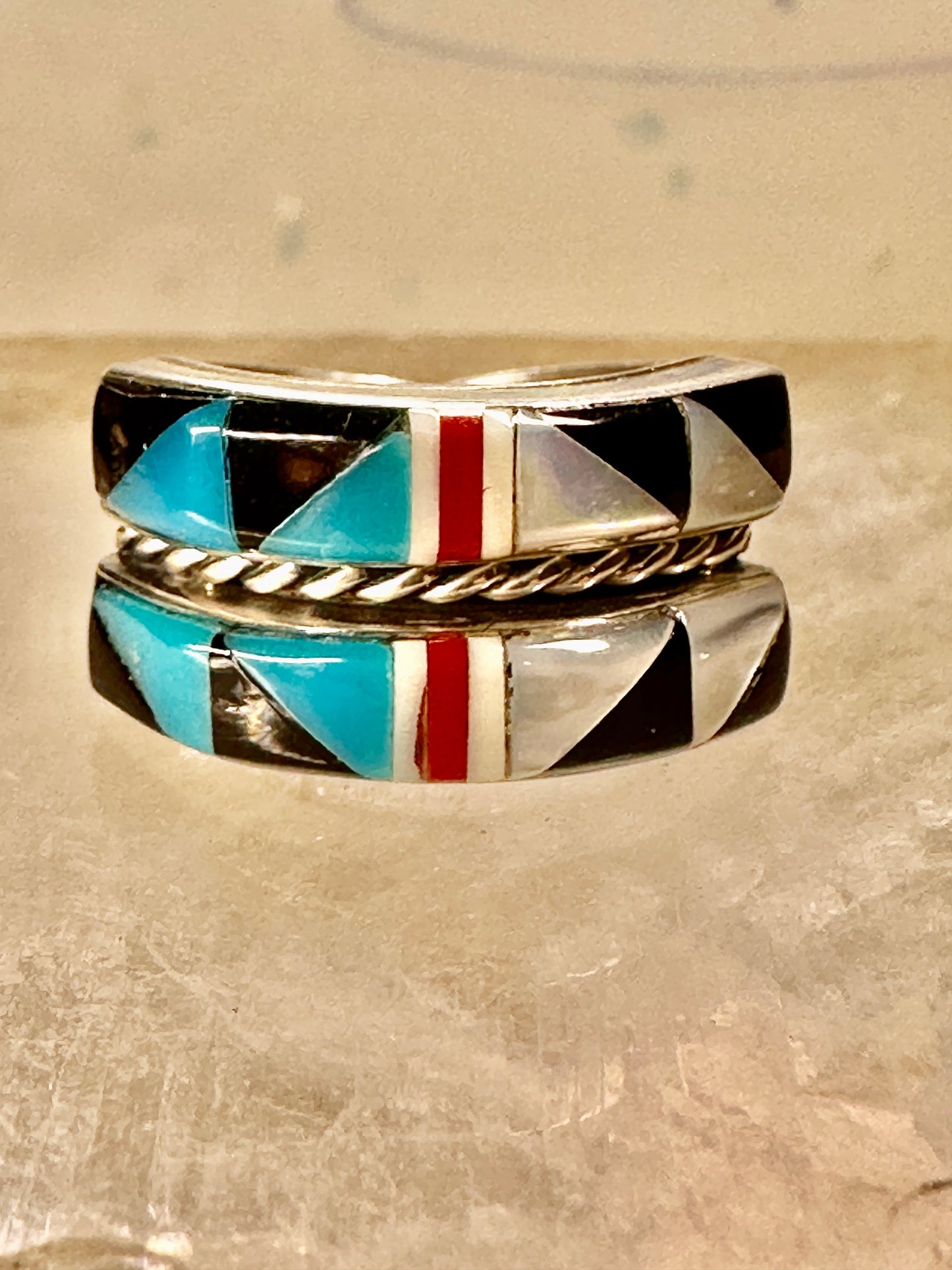 Turquoise ring Zuni band Coral southwest size 5.75 sterling silver girls women