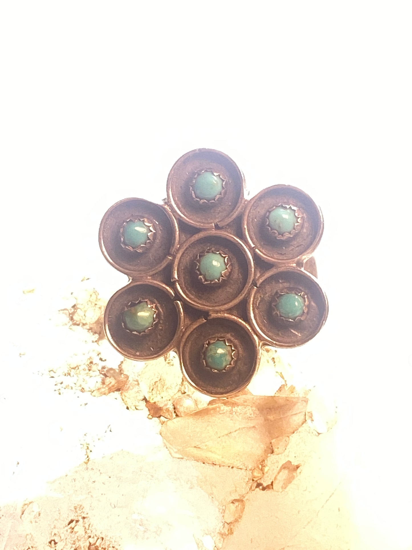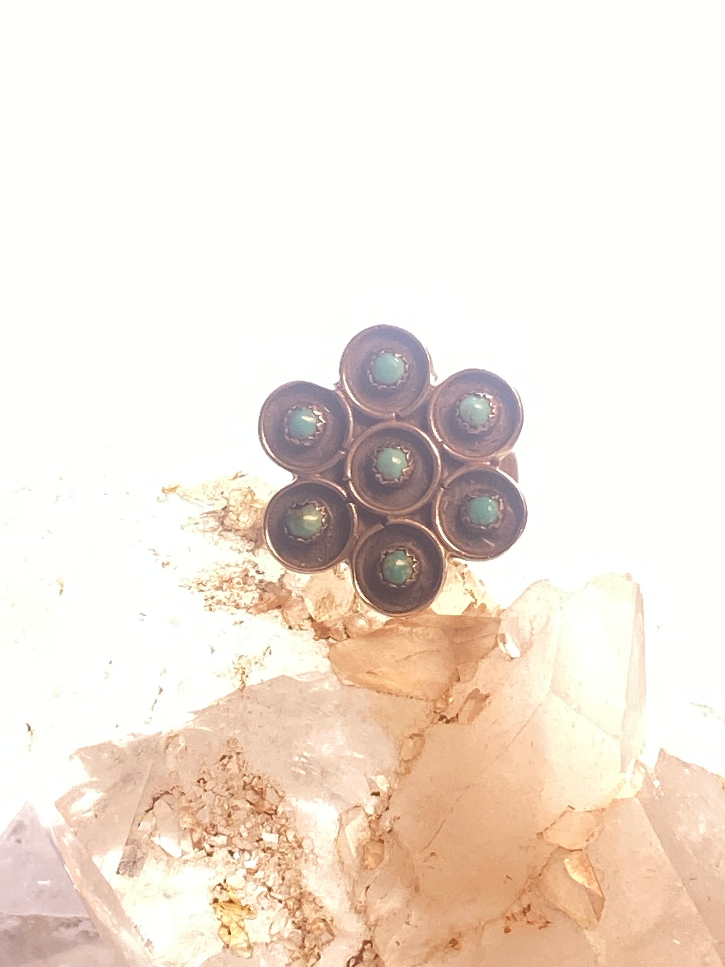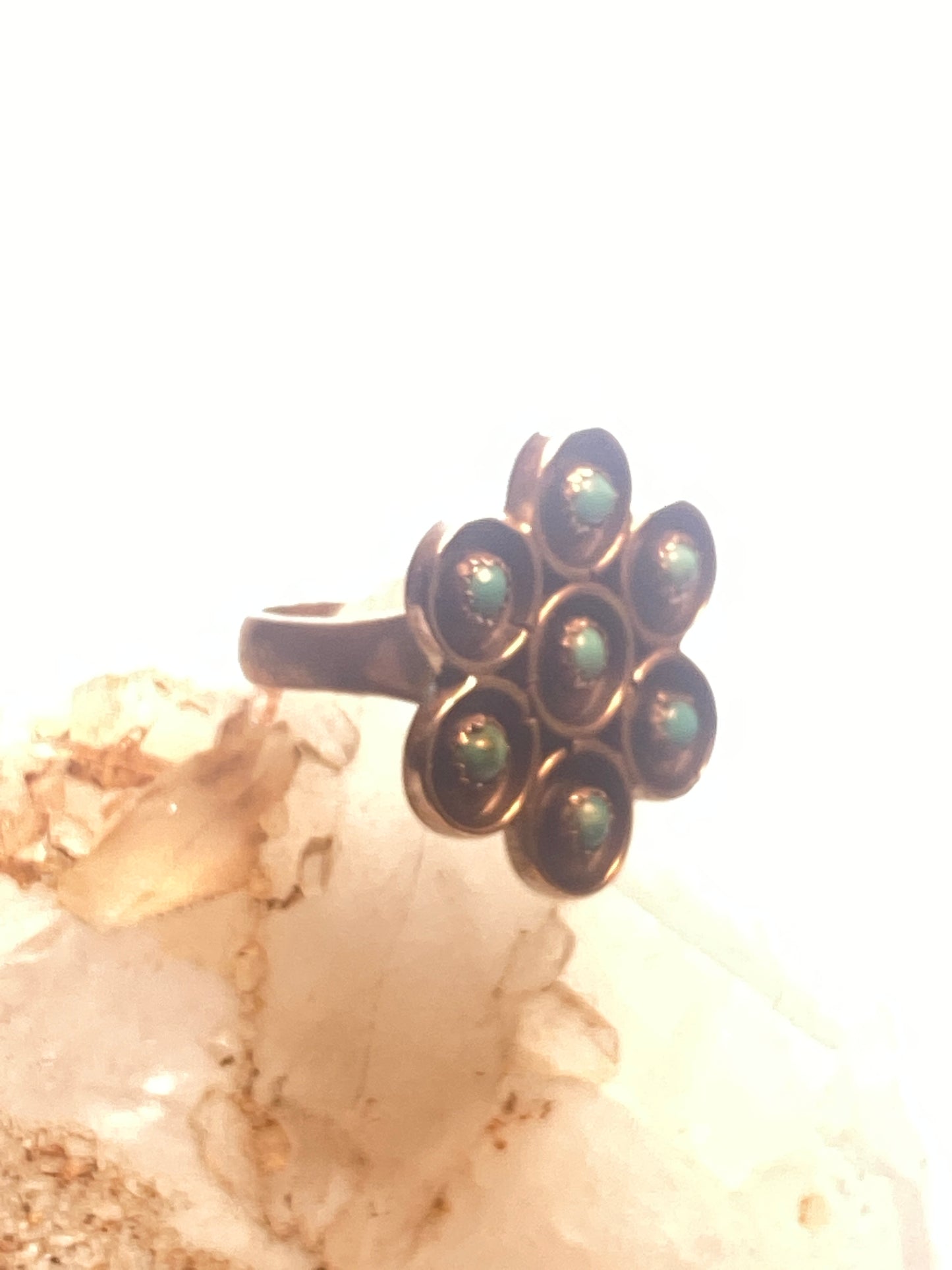 Turquoise ring size 6.50 Zuni flower southwest sterling silver women girls