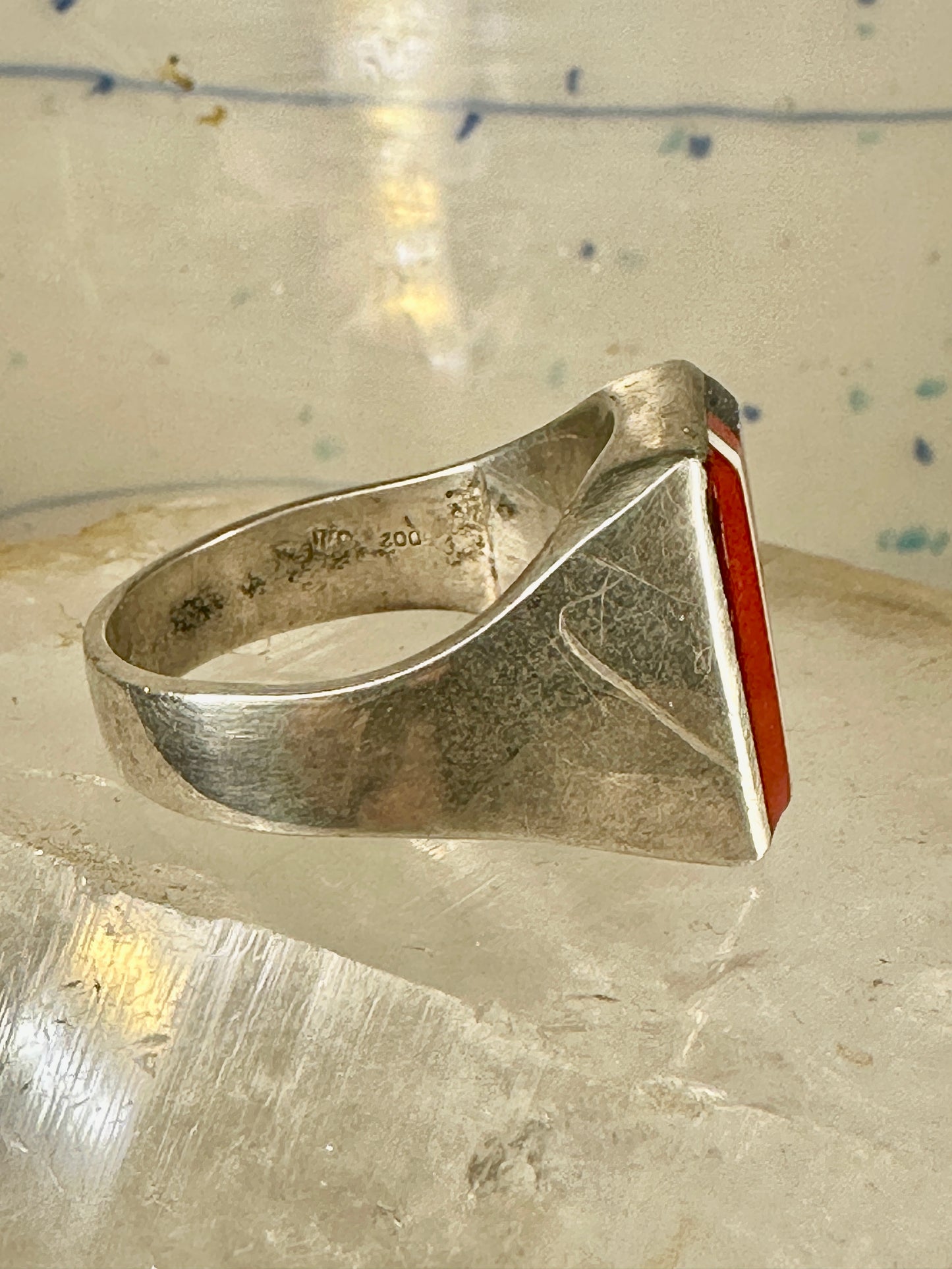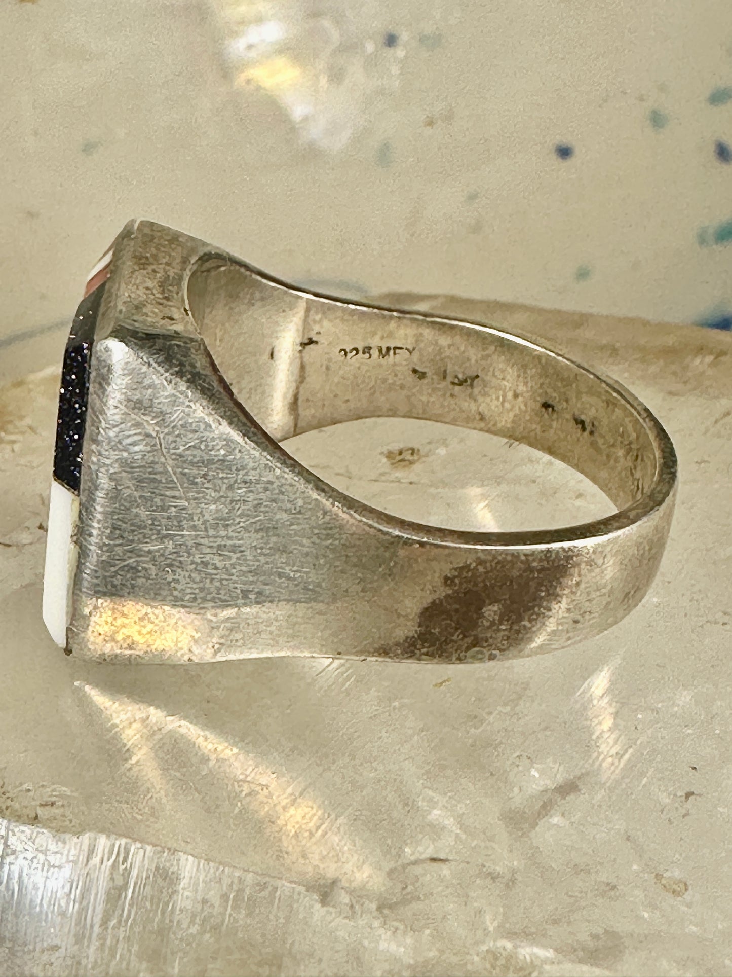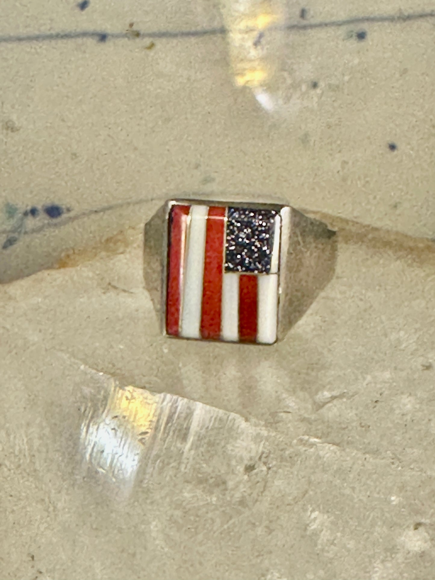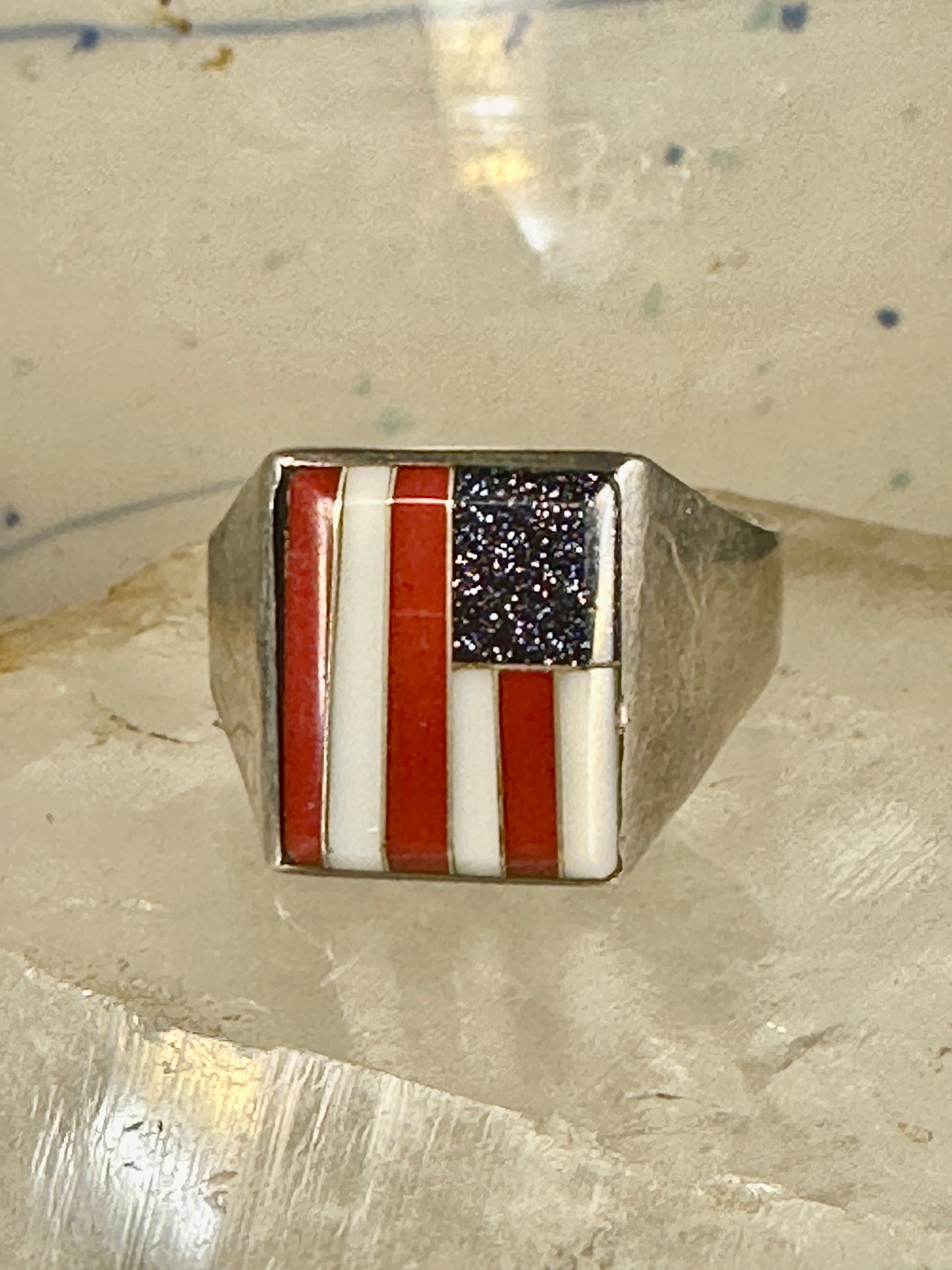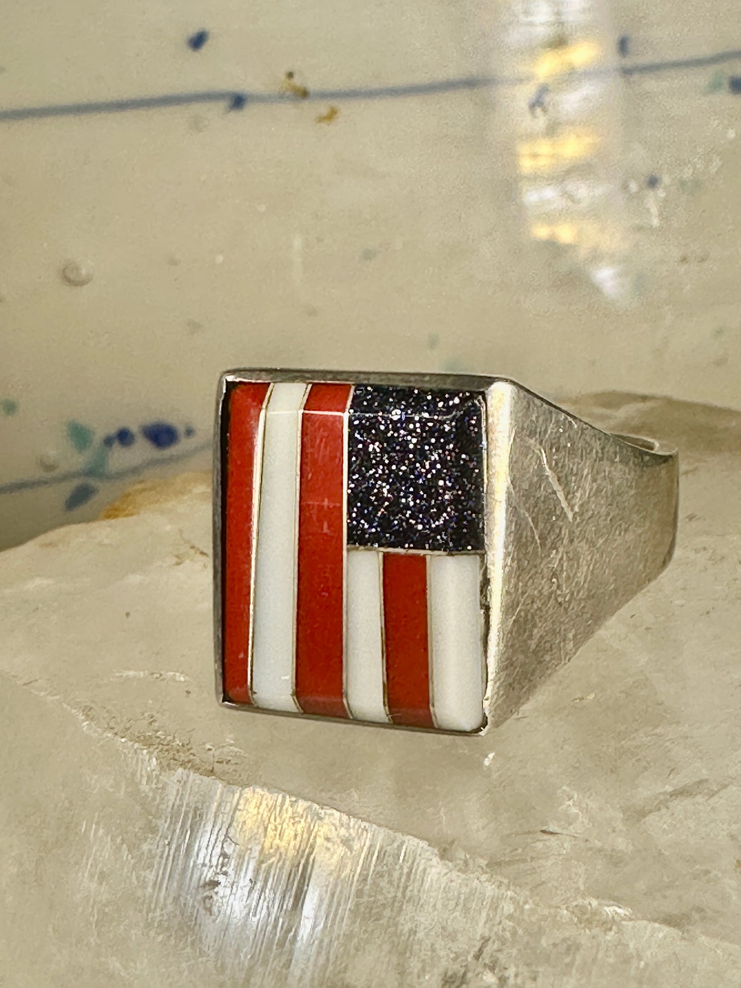 USA Flag ring size 14.25 coral MOP goldstone patriotic sterling silver men women