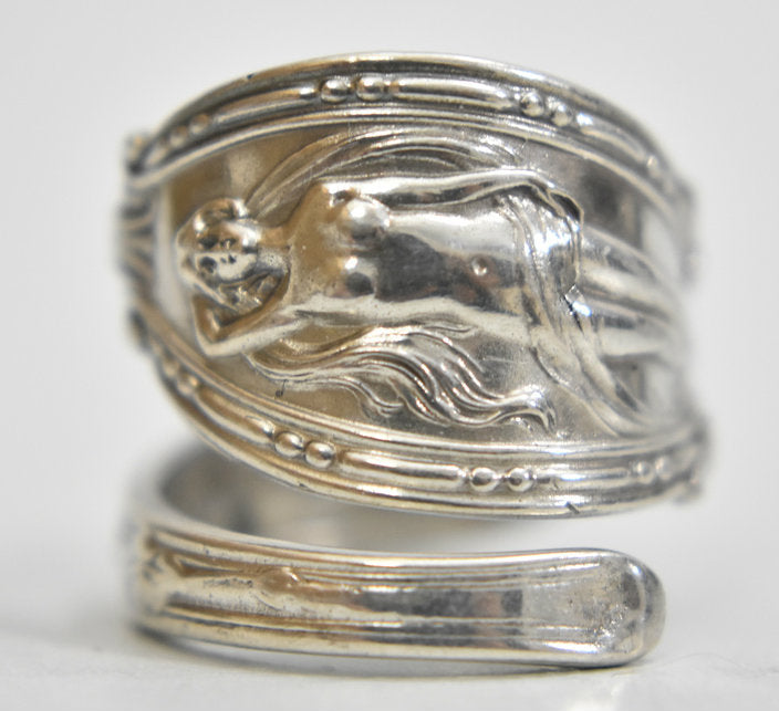 Venus Spoon ring naked lady with flowers floral design sterling silver band Size 7