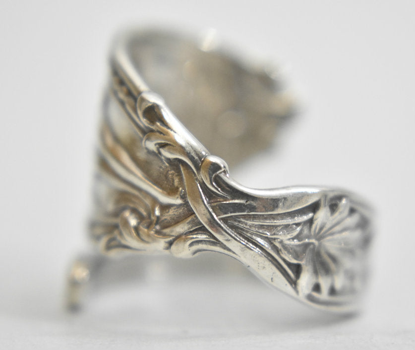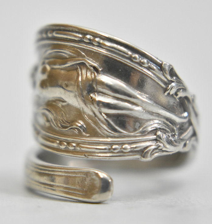 Venus Spoon ring naked lady with flowers floral design sterling silver band