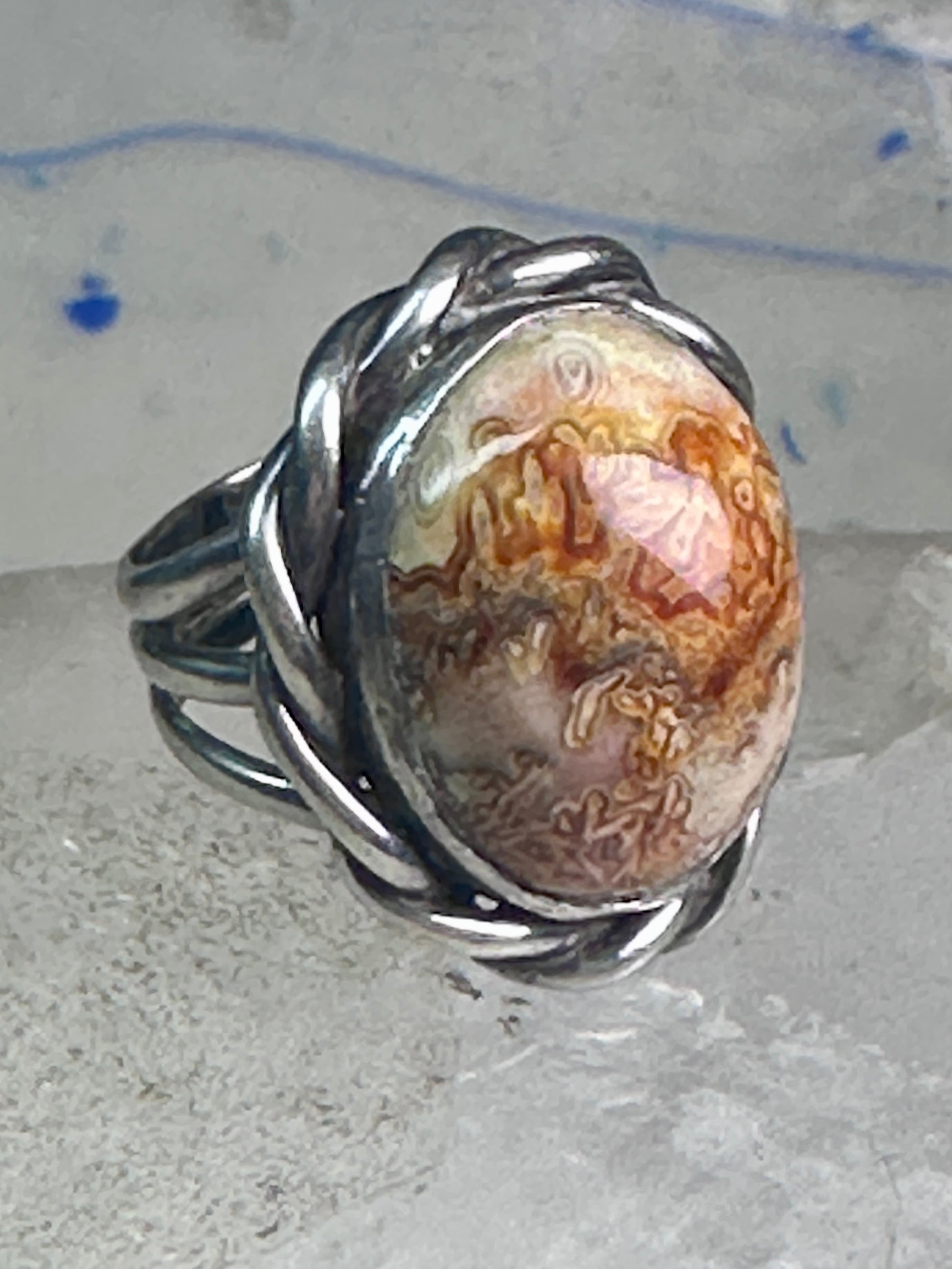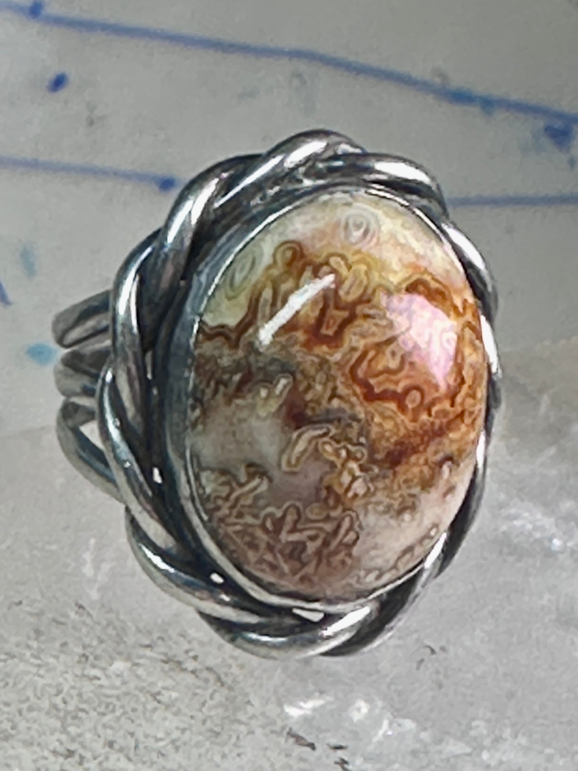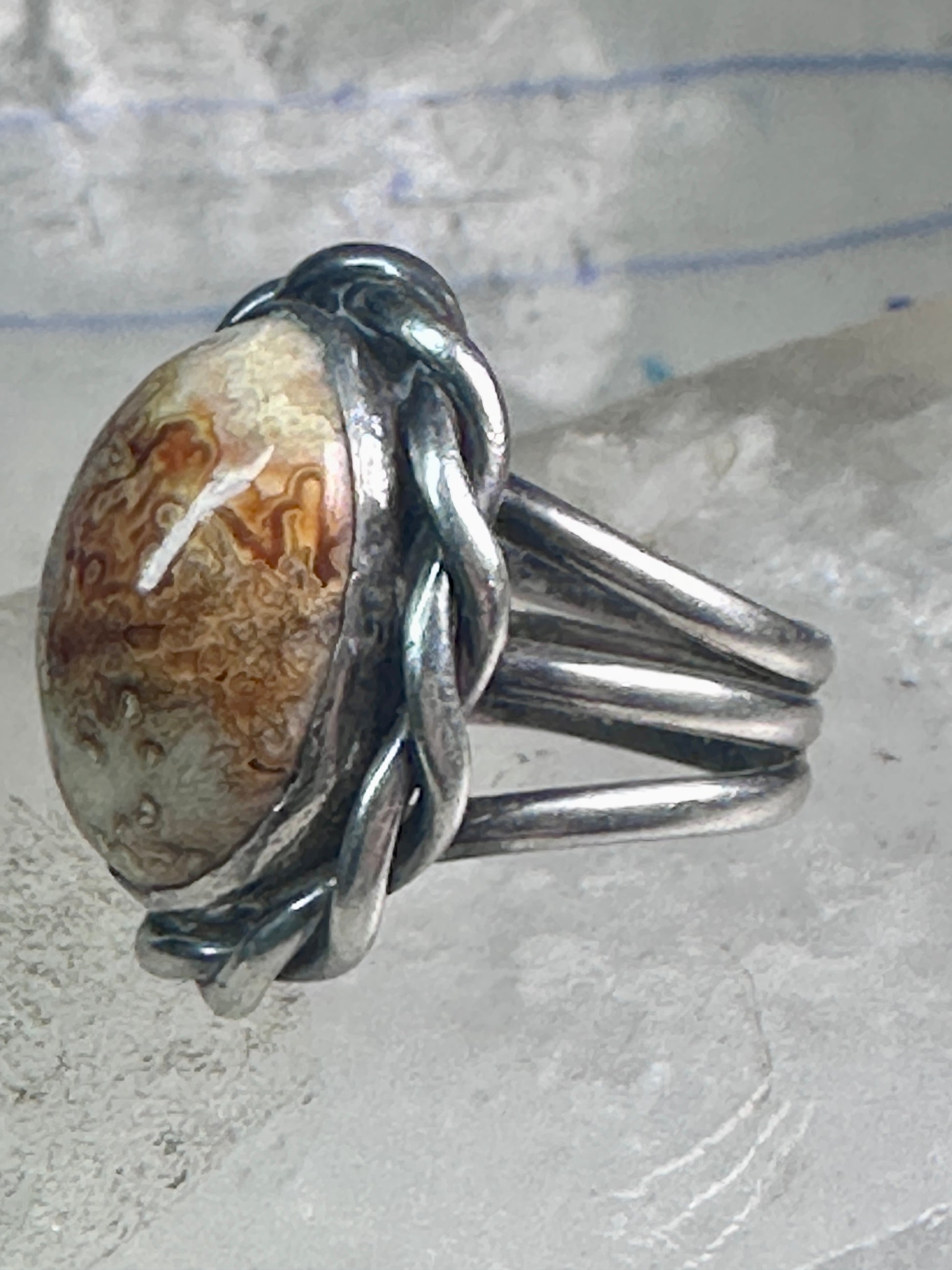 Vintage Lace Agate Ring southwest size 7 sterling silver women girls