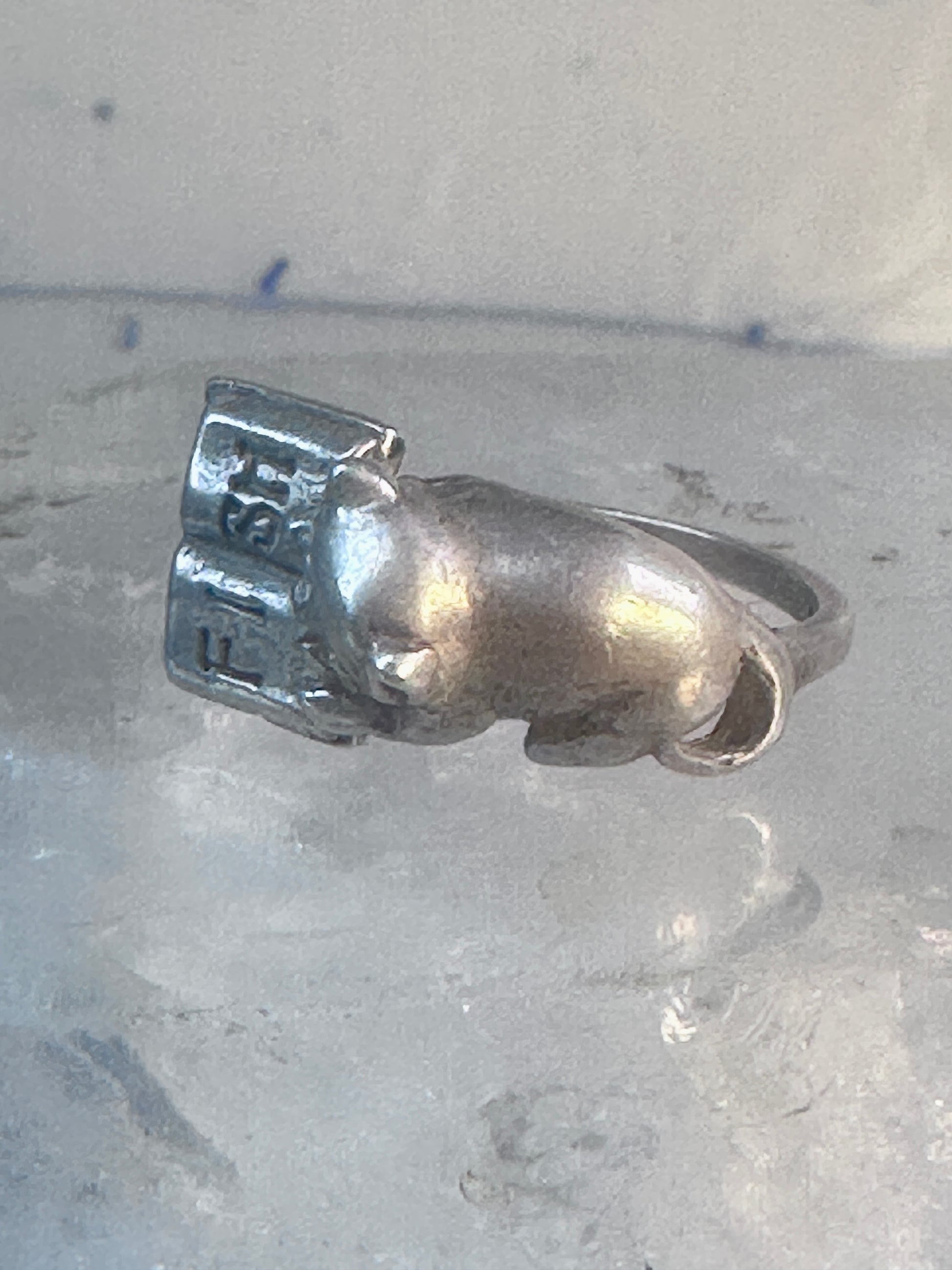 Vintage cat ring cat reading book Kabana band size 6.75 sterling silver women girls