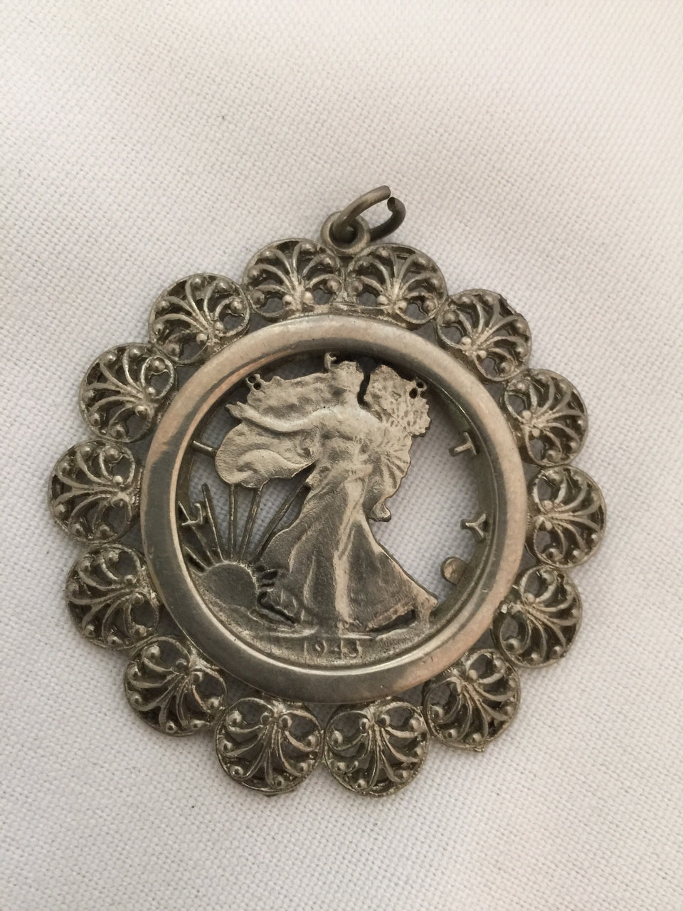 Vintage Coin Pendant of Lady Liberty 1943