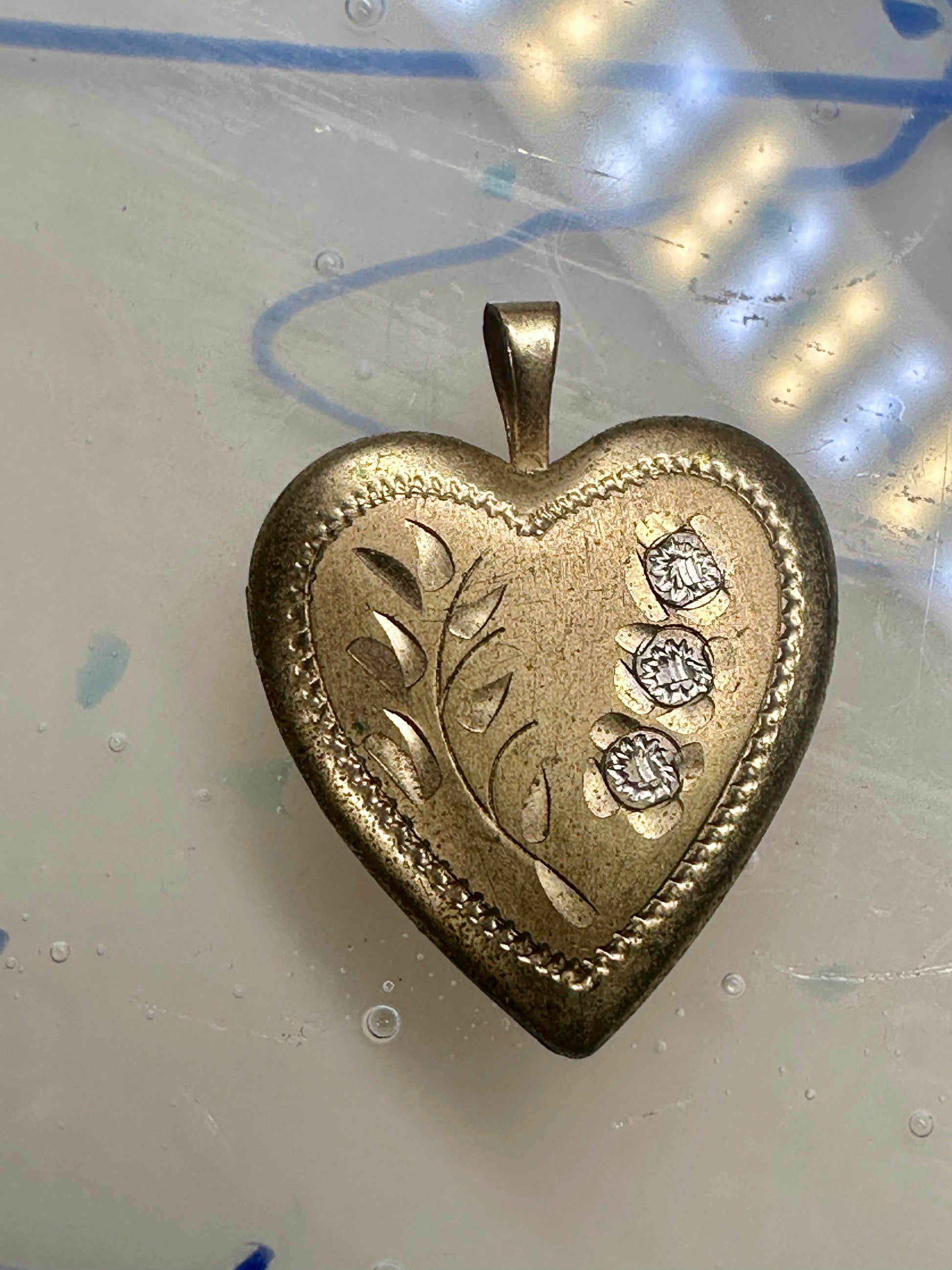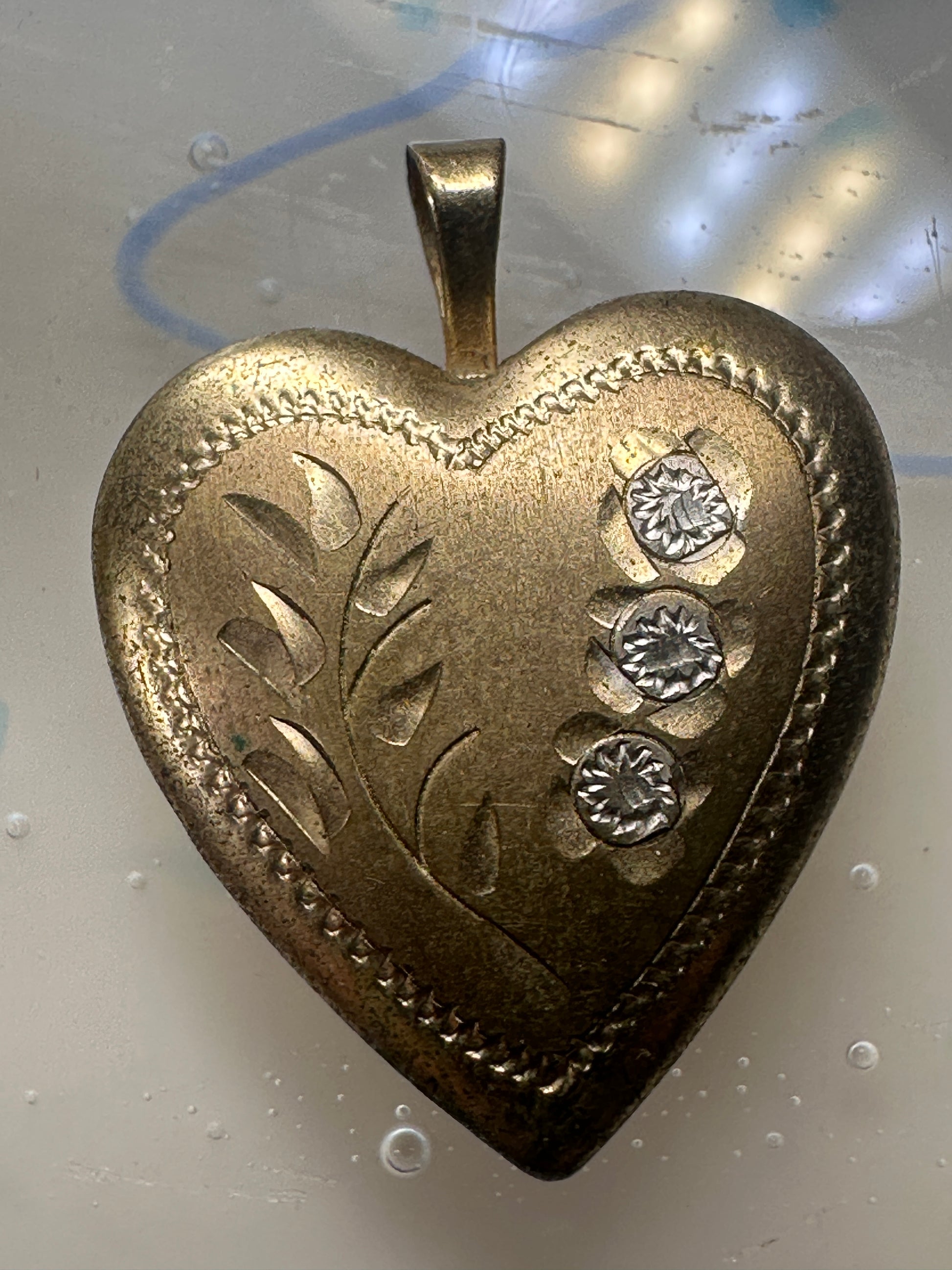 Vintage Floral Photo Heart Love Valentine Locket flower Pendant 1/20 14KGF