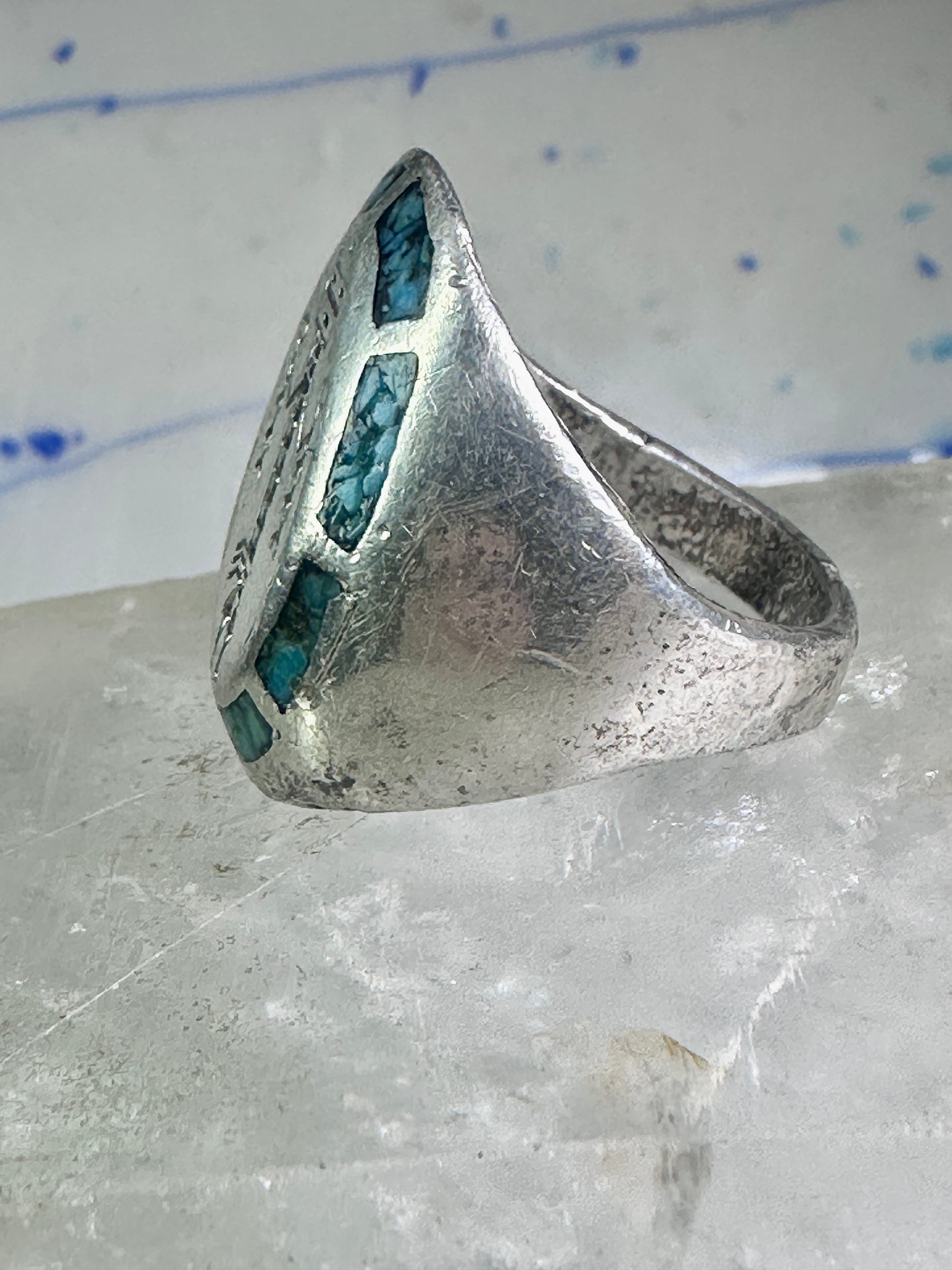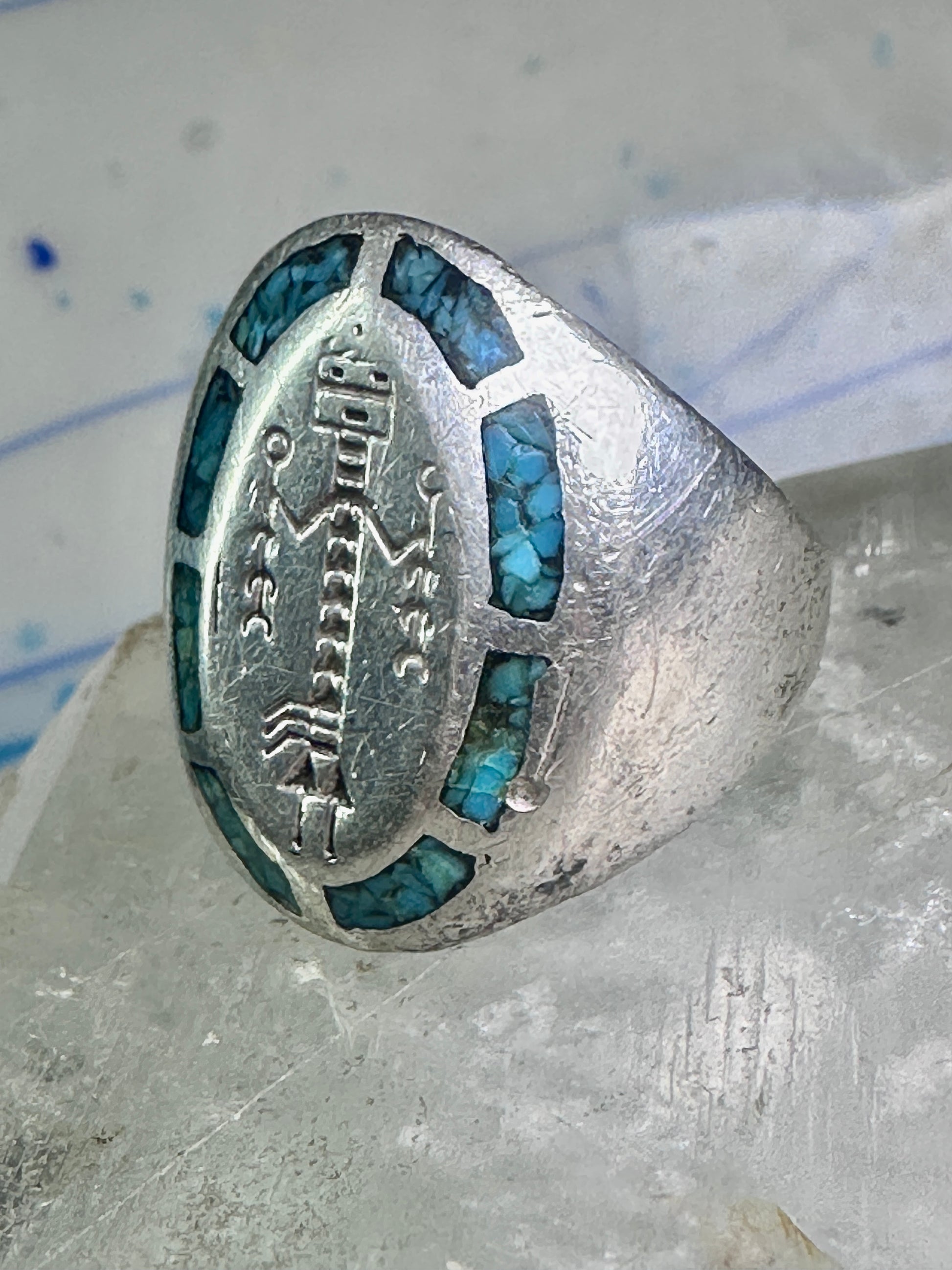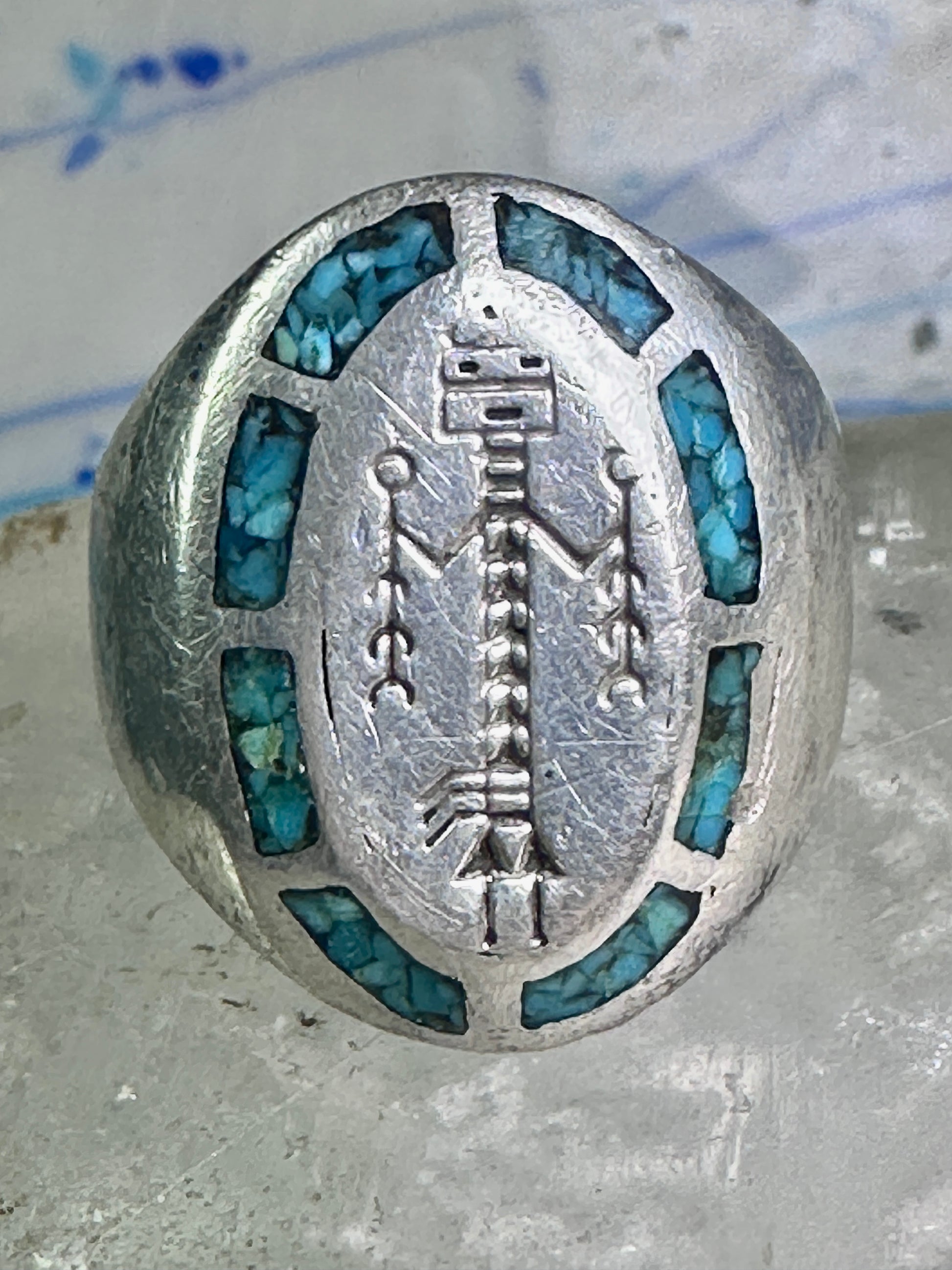 Vintage Kachina ring Turquoise chips heavy band size 11 sterling silver women men