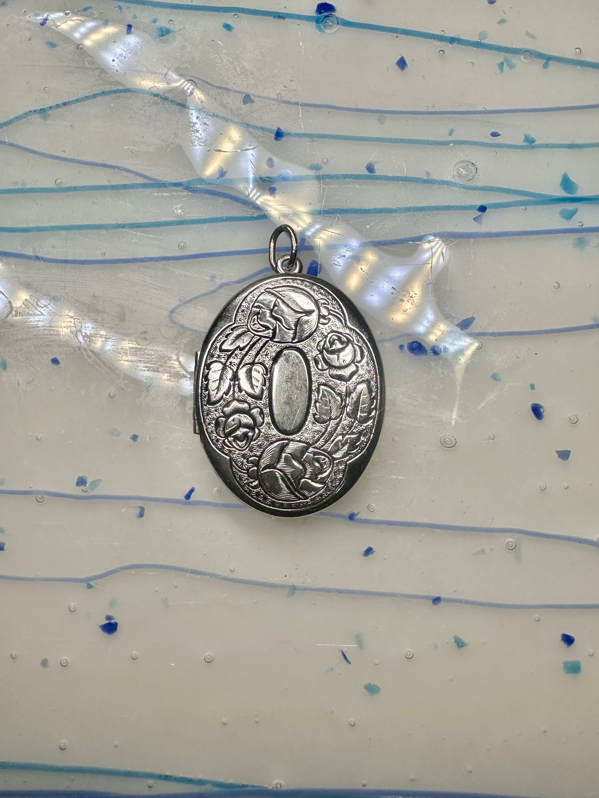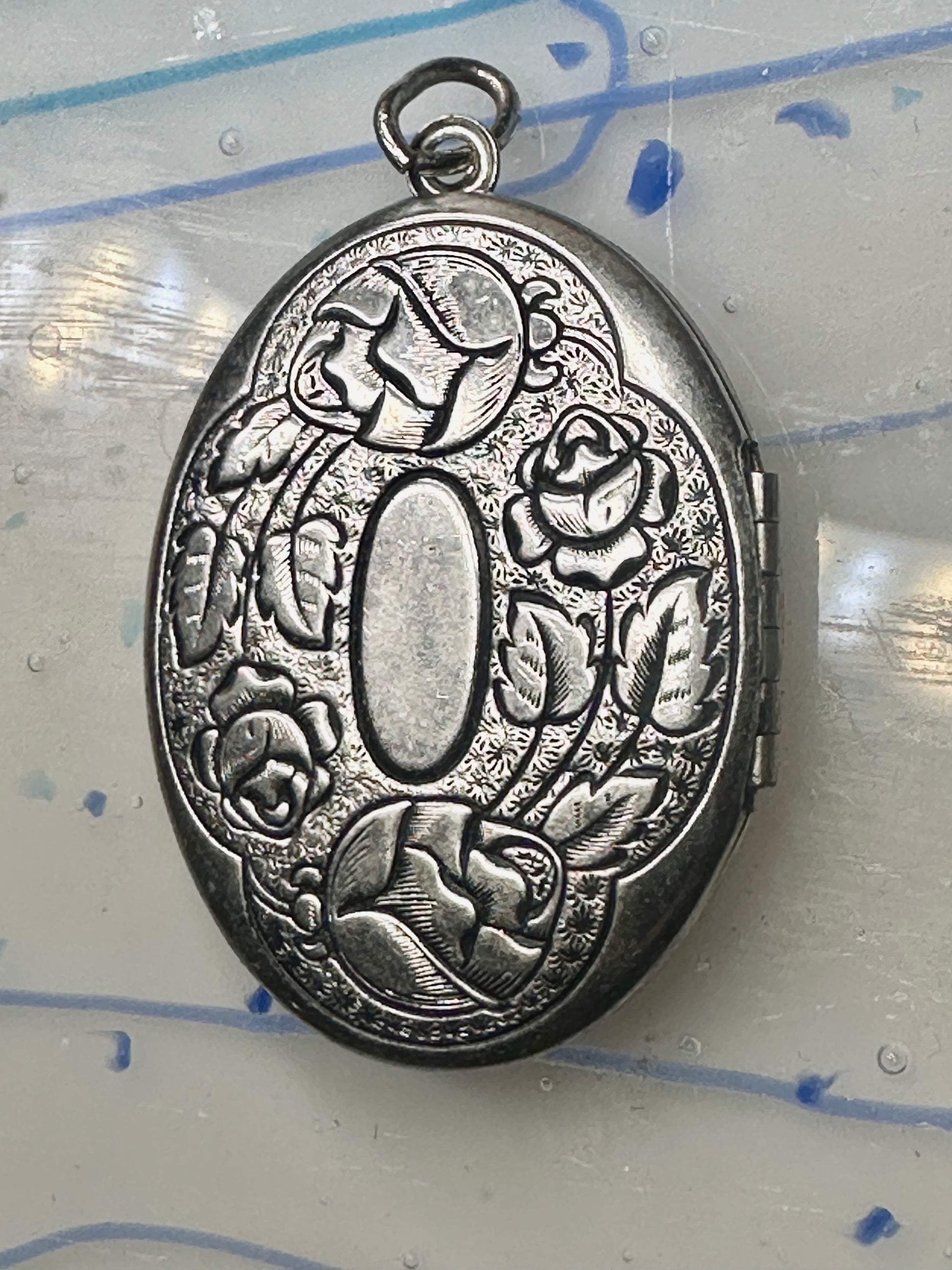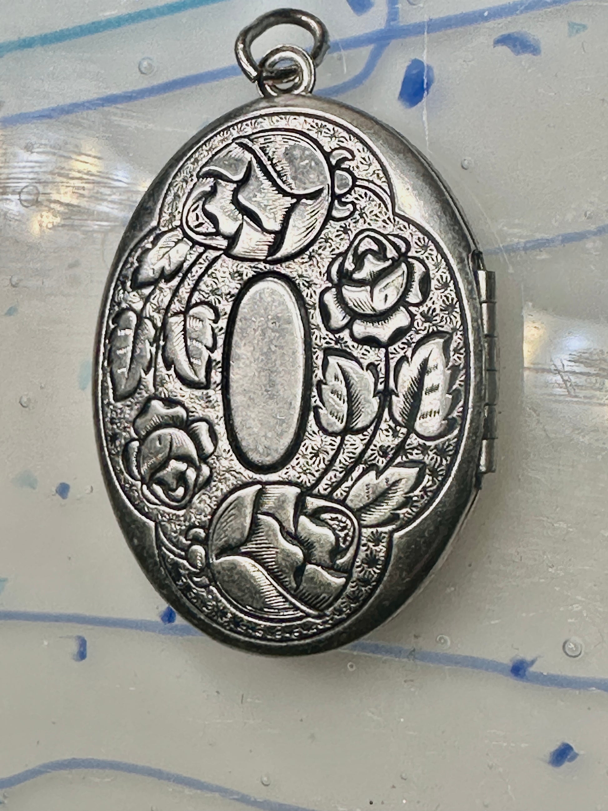 Vintage Large Rose Floral Photo Locket Pendant