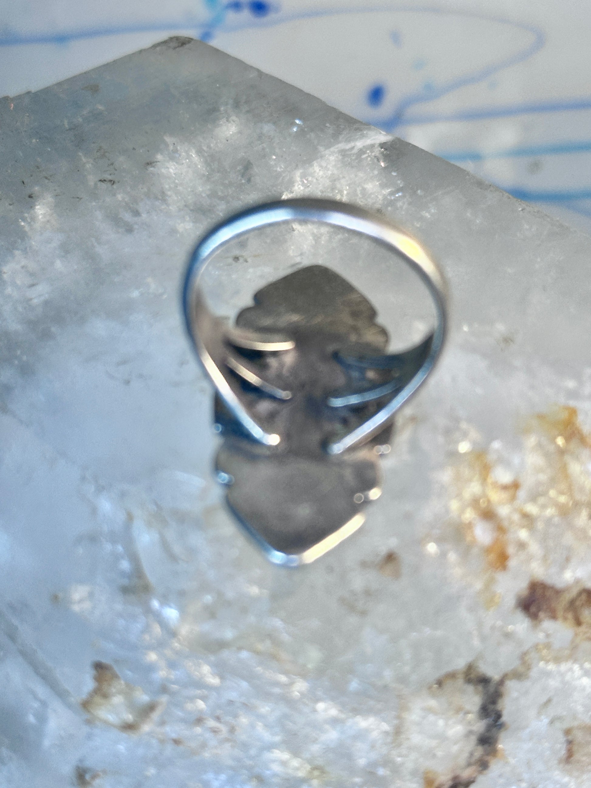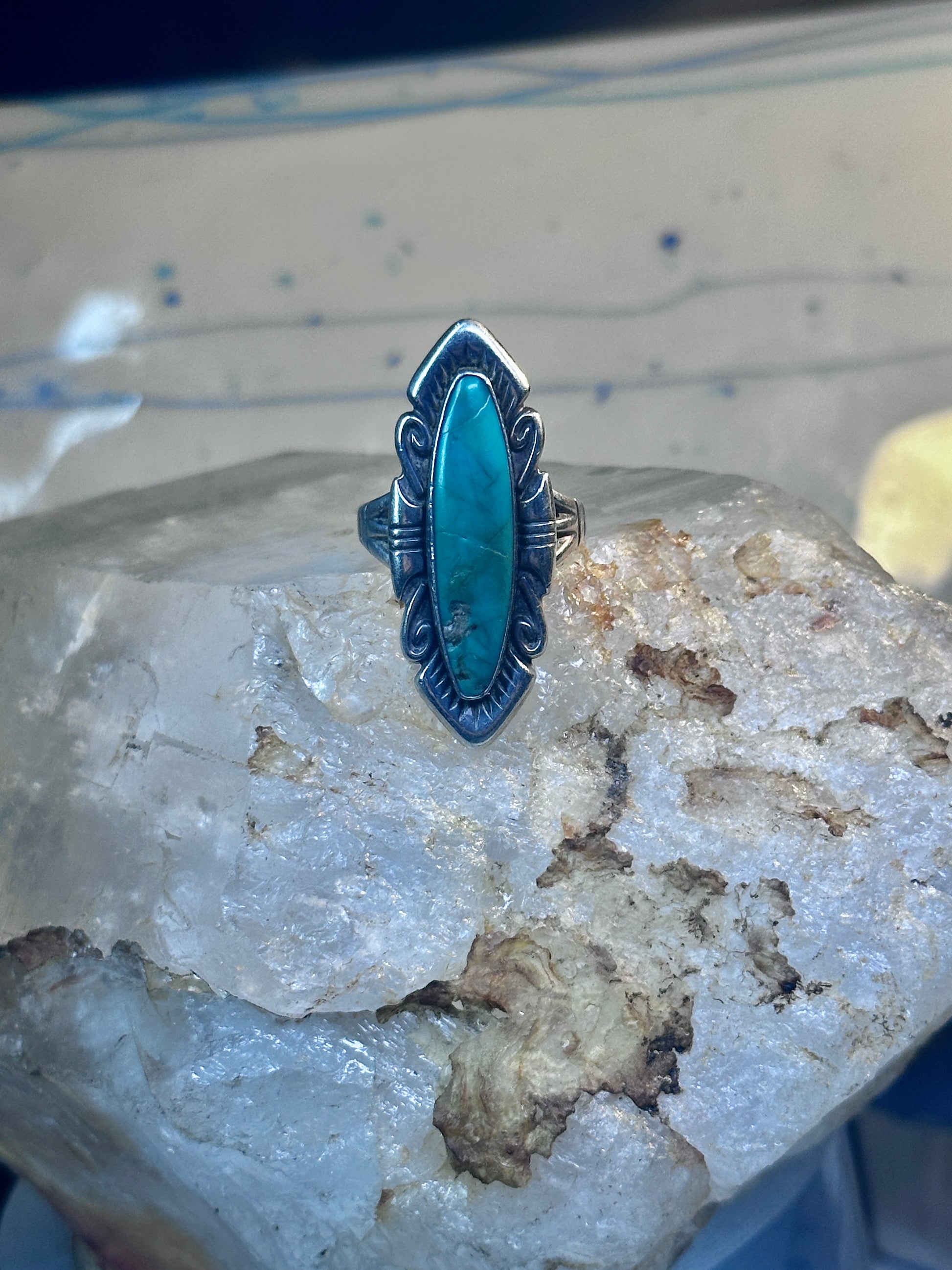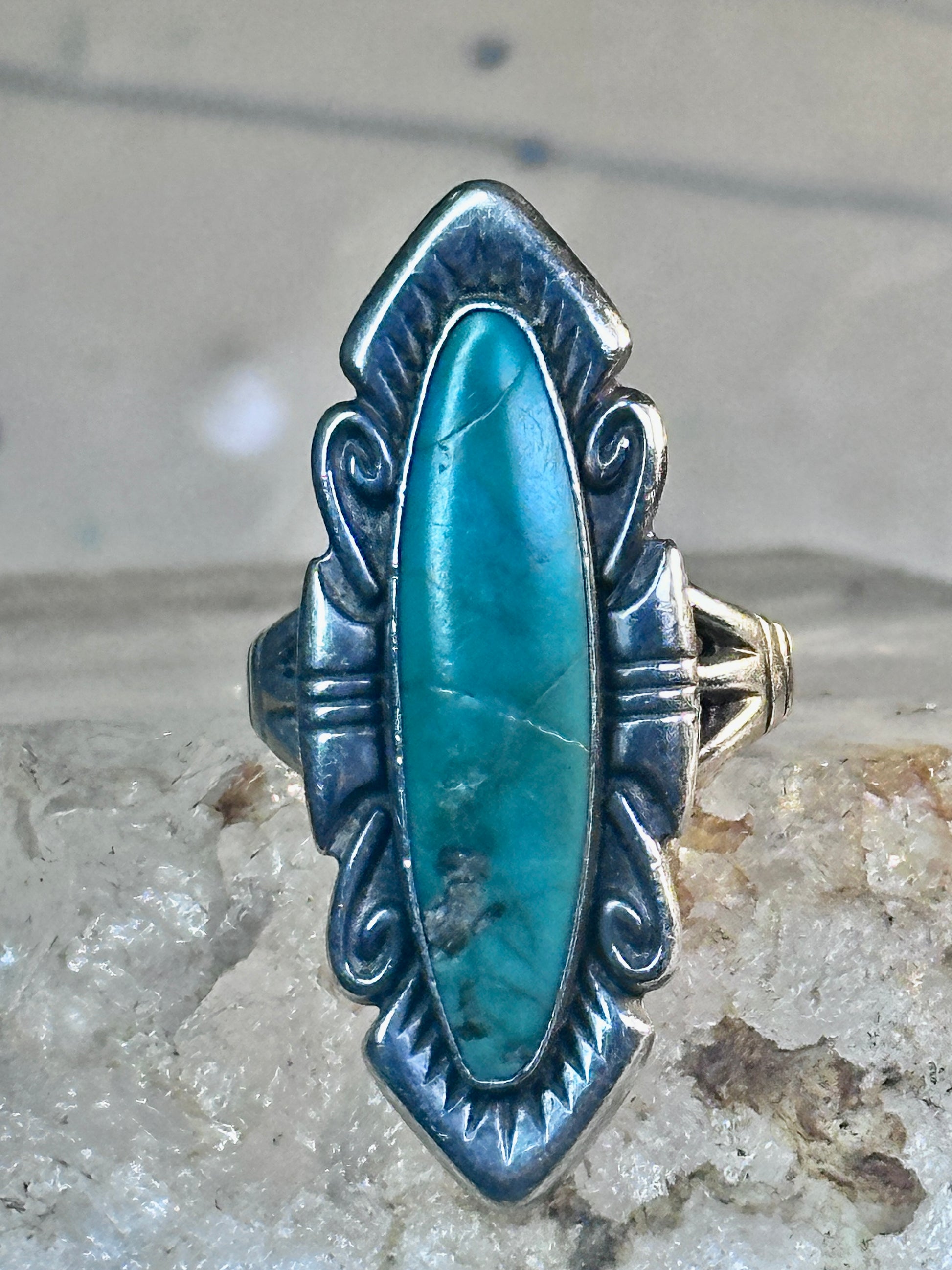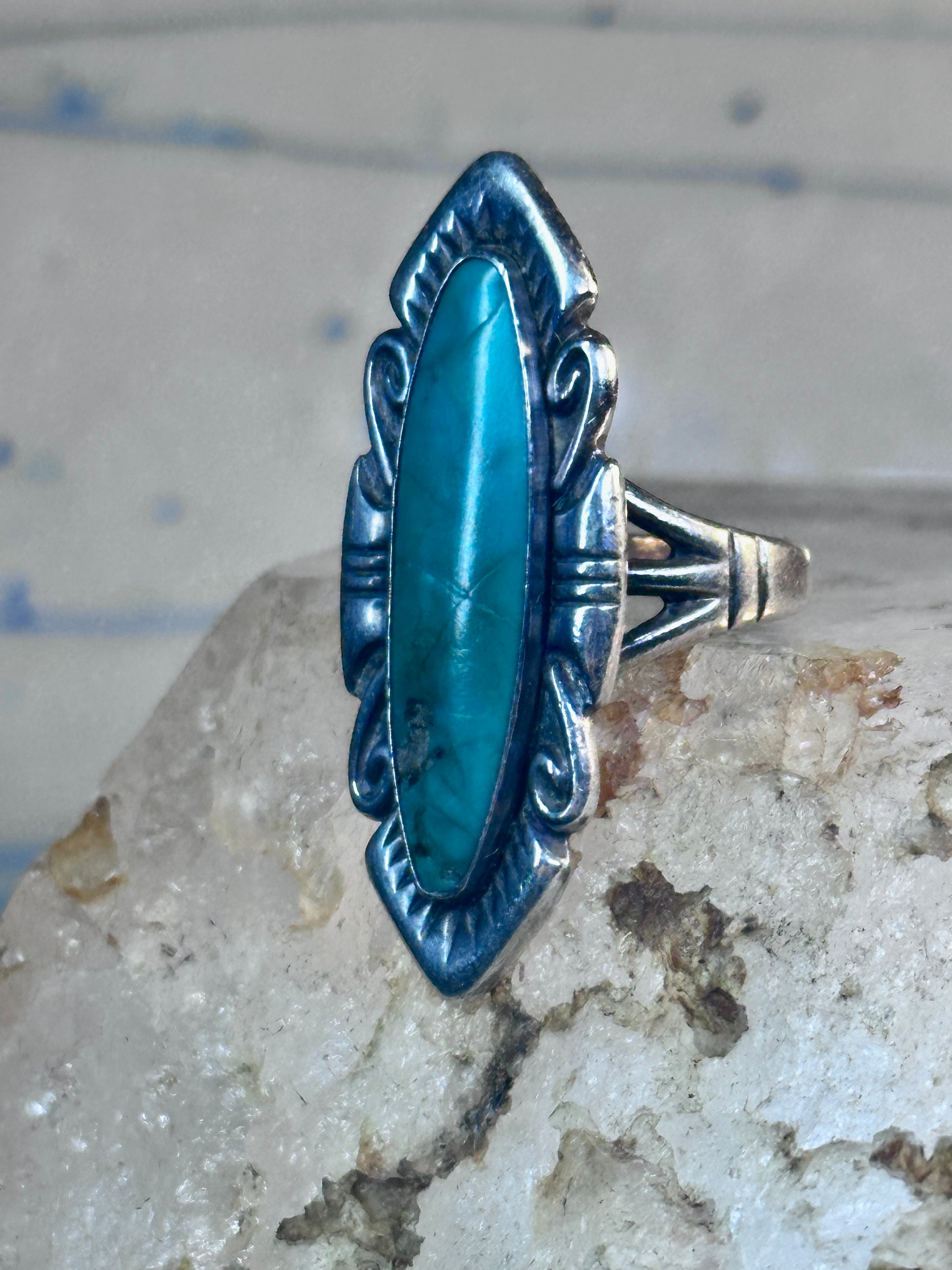 Vintage Long Turquoise Ring Navajo size 7.75 sterling silver women girls
