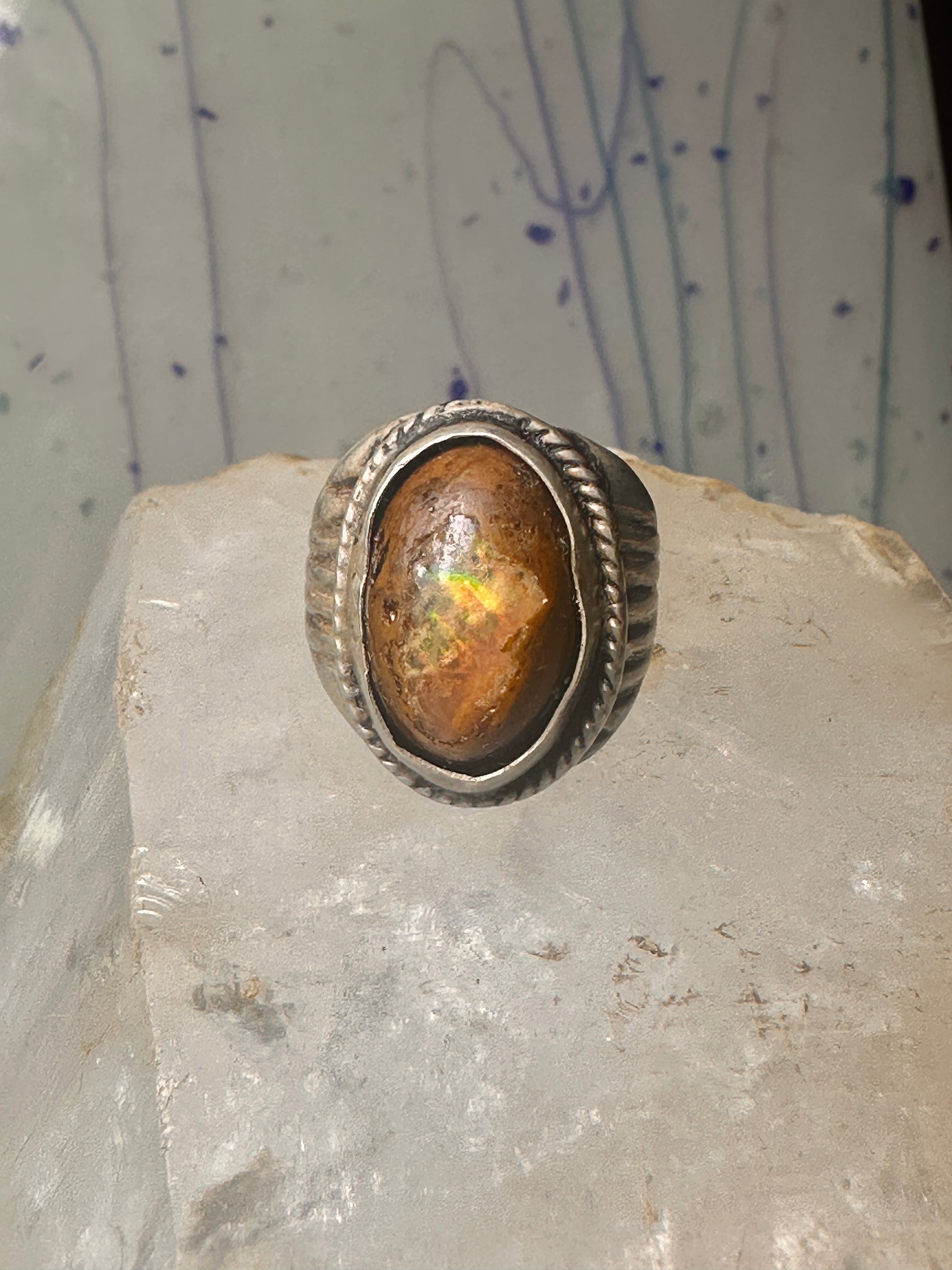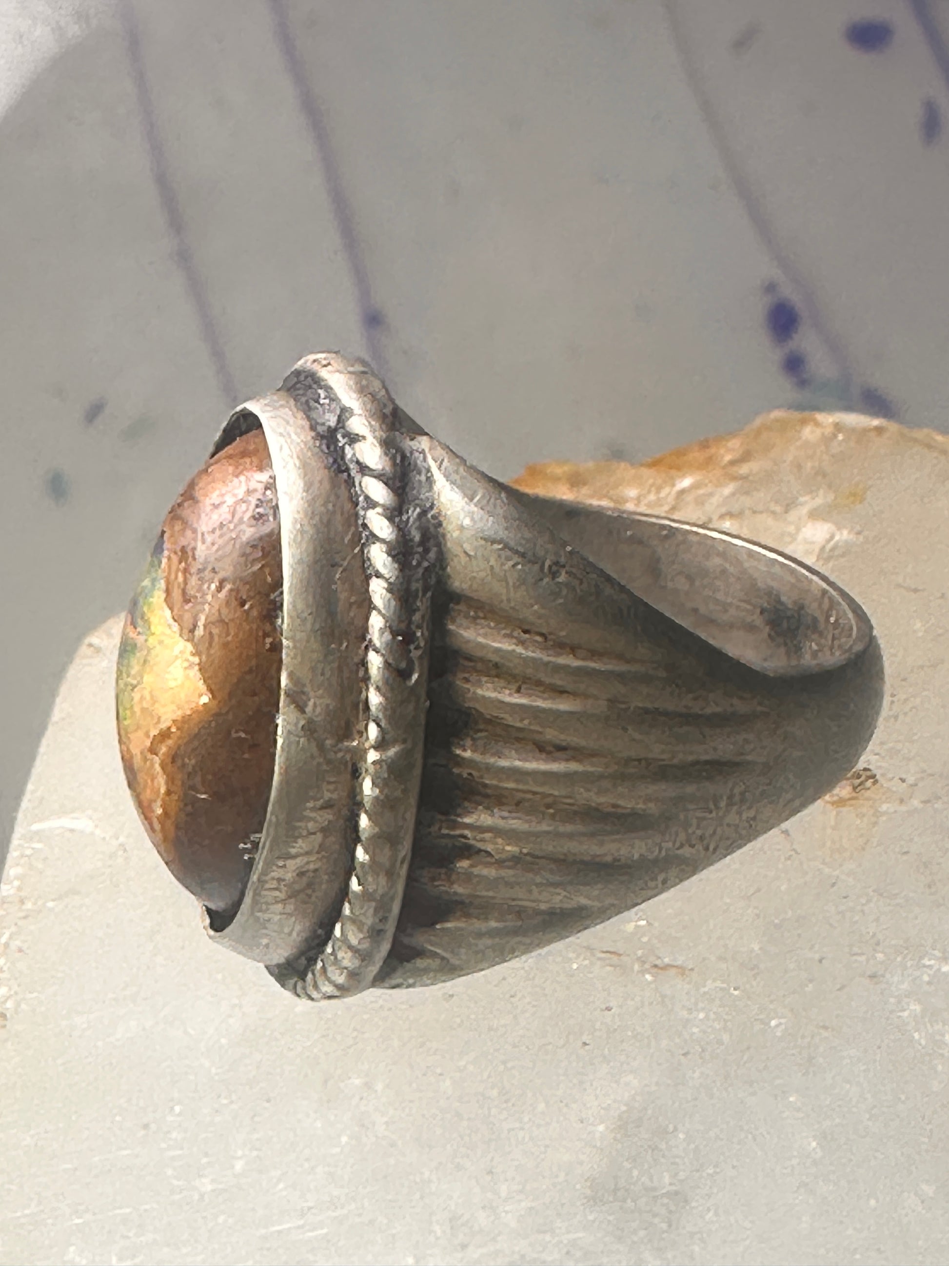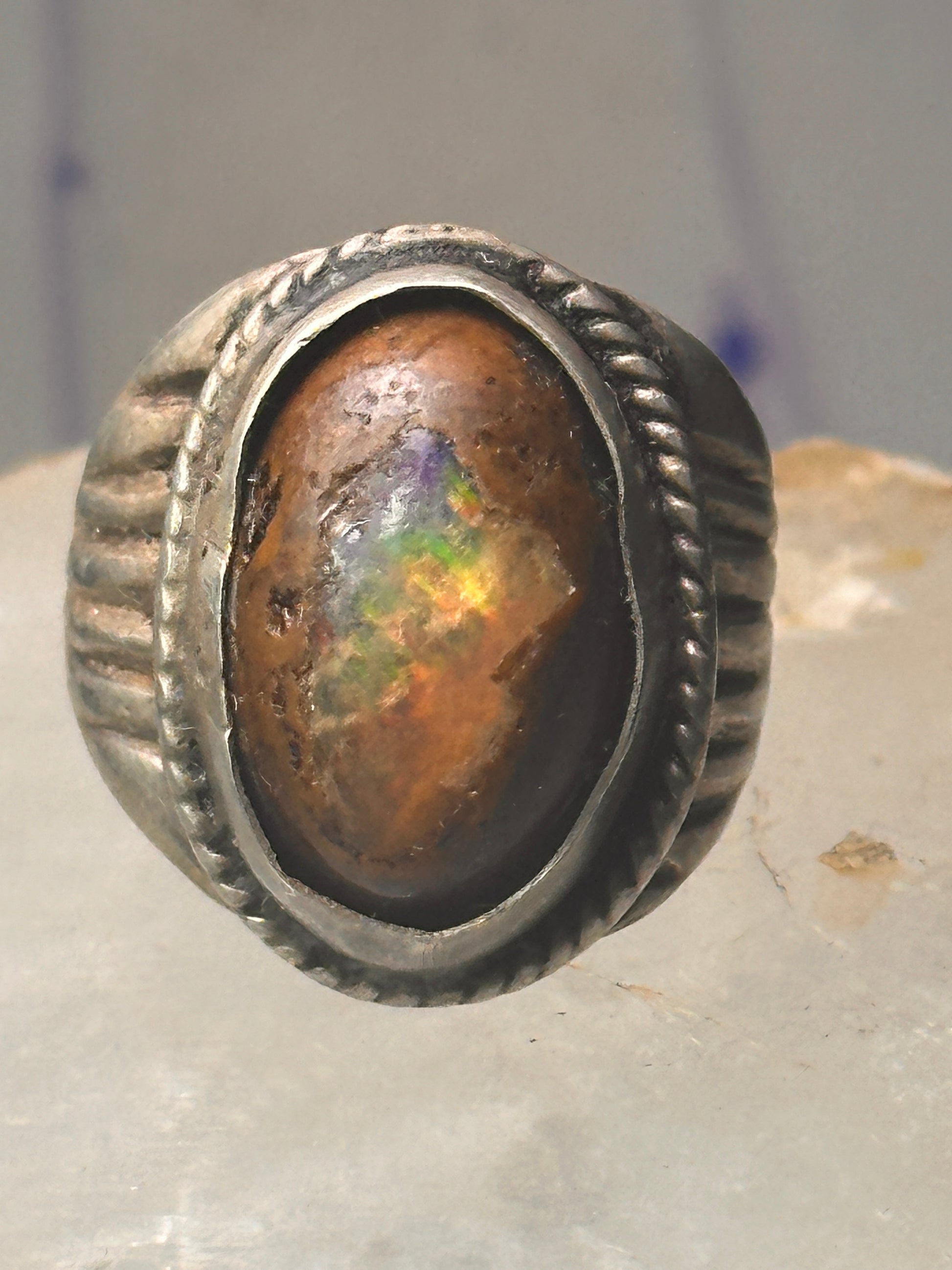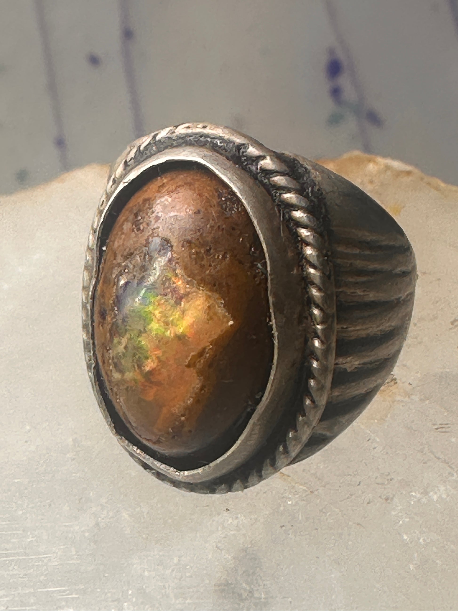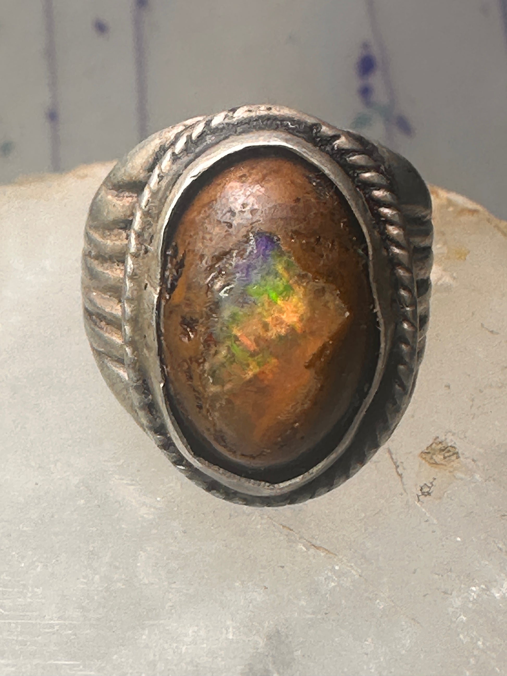 Vintage ring boulder opal Mexico Richard Guad band size 8 sterling silver women