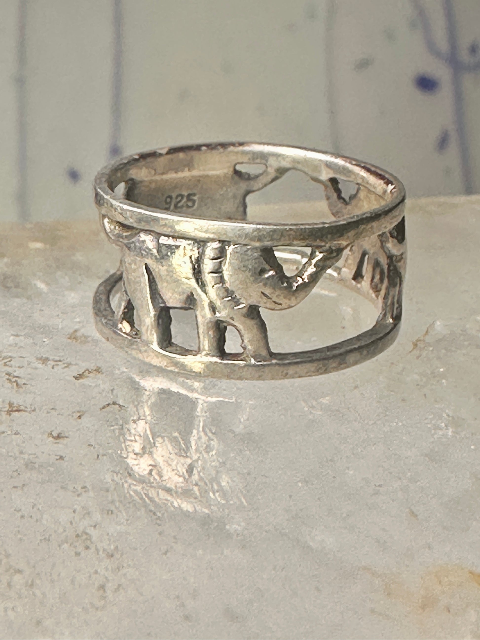 Vintage ring Elephant band size 5 sterling silver women girls pinky