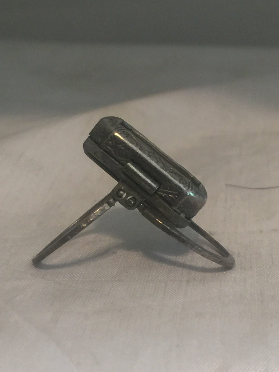 Vintage Sterling Silver Picture Photo Stand Locket Ring Art Deco Size 4 4.7g