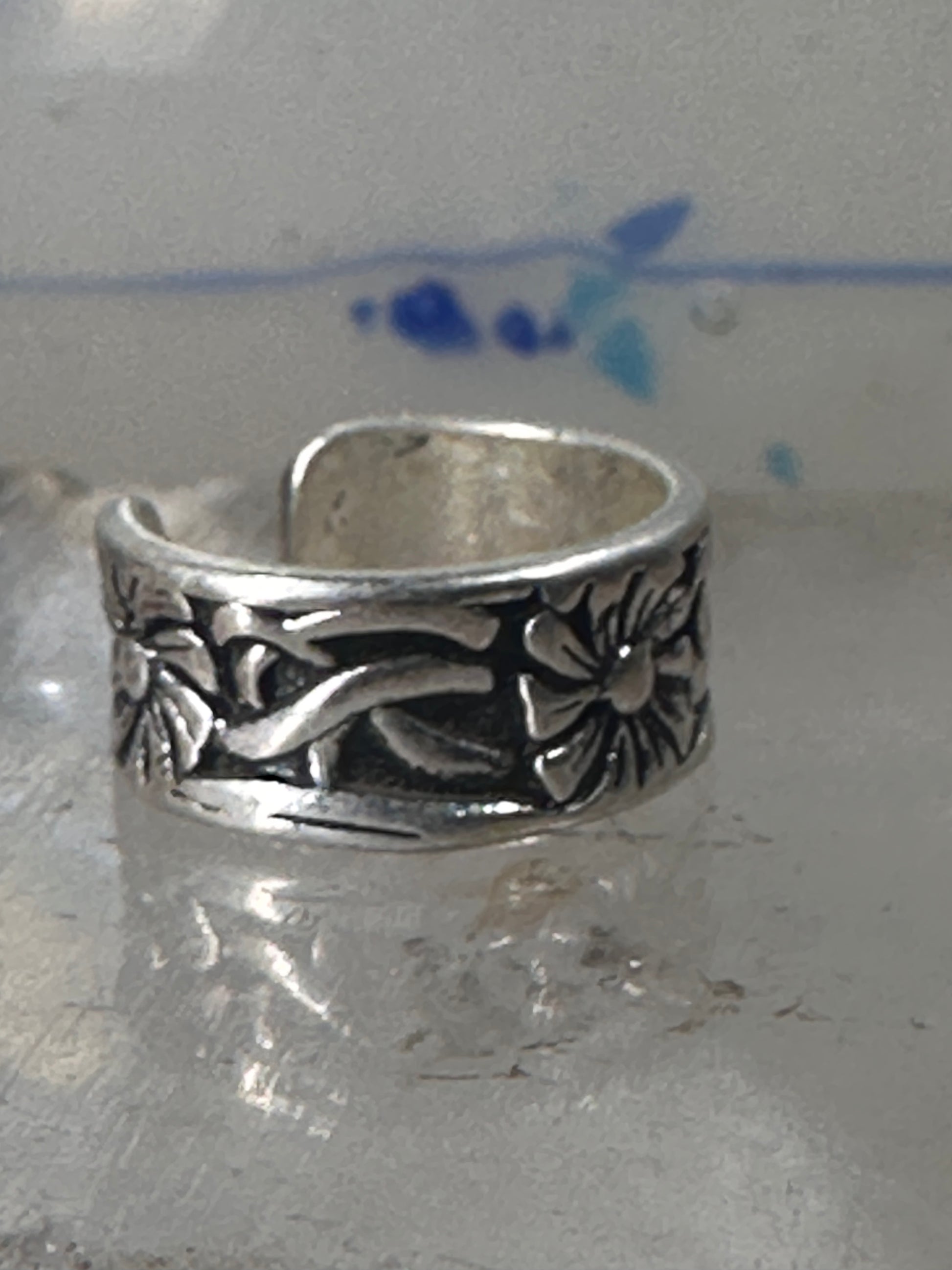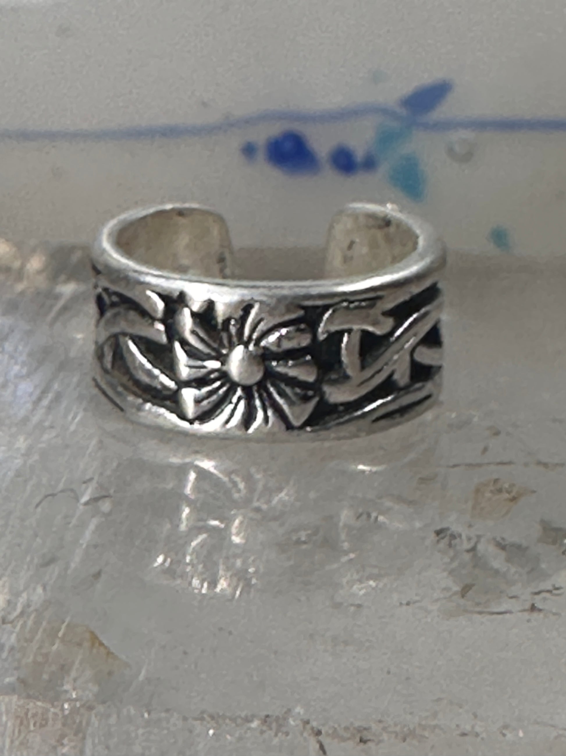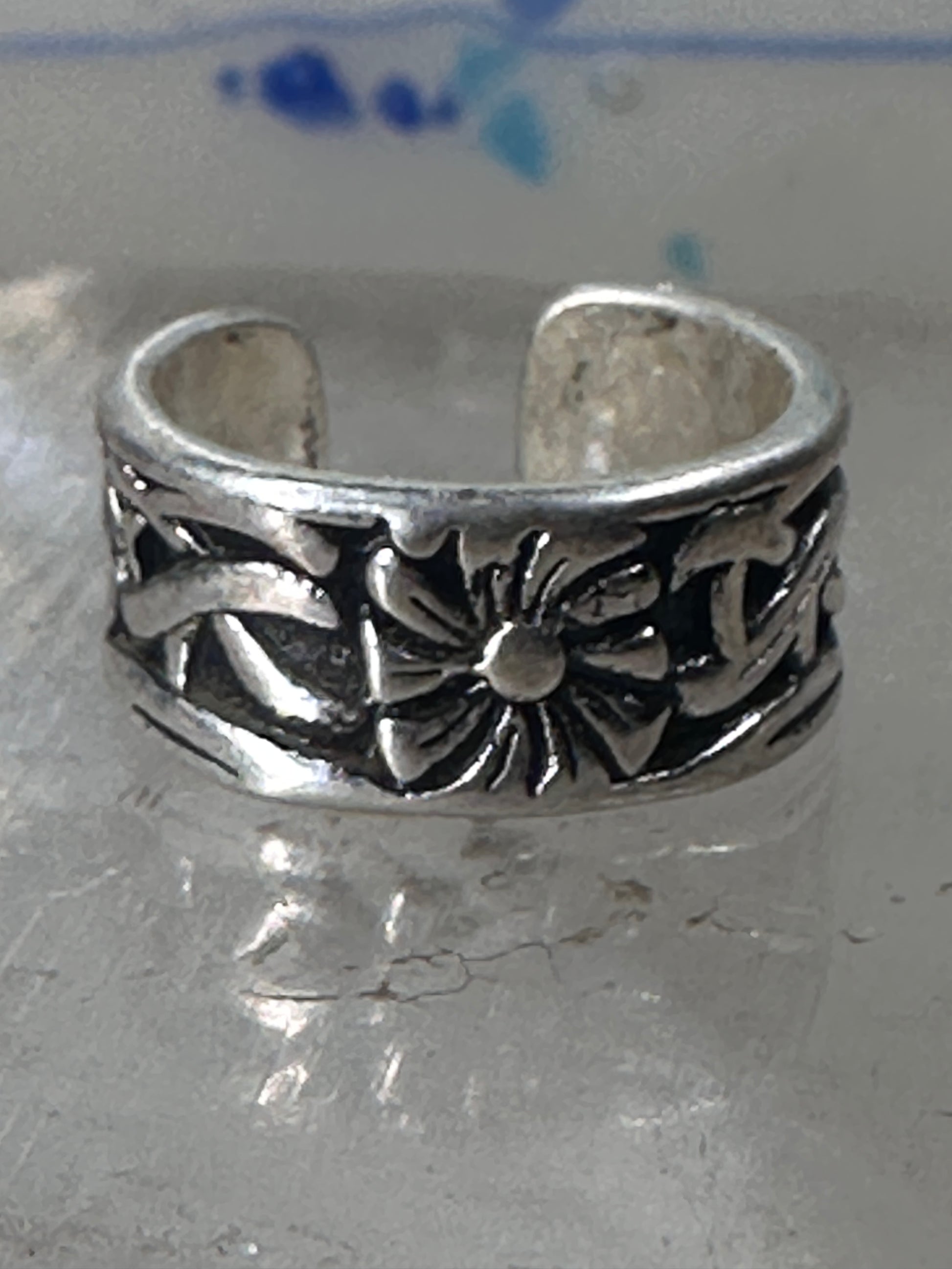 Wide floral ring toe band size 2 adjustable sterling silver women girls