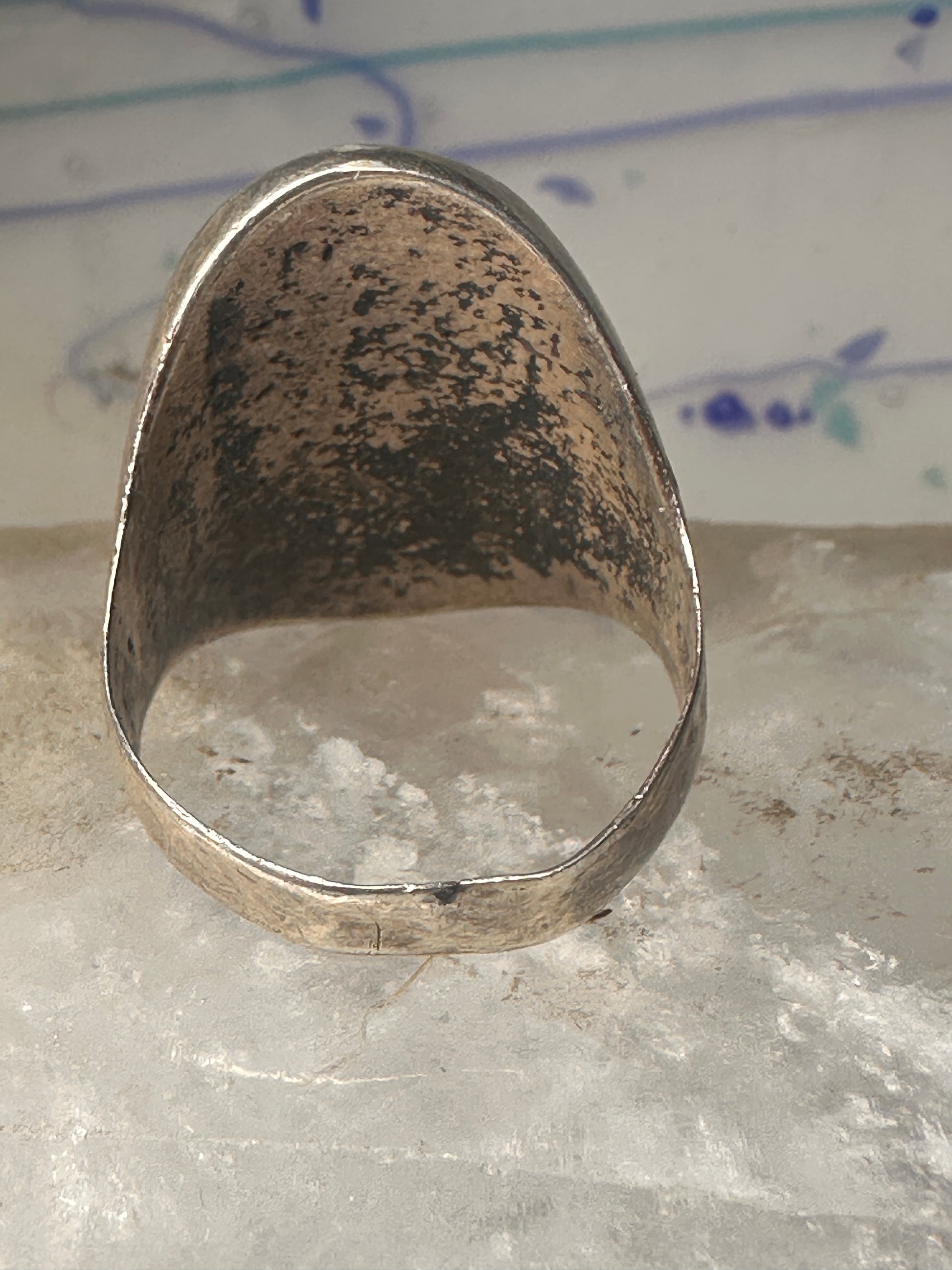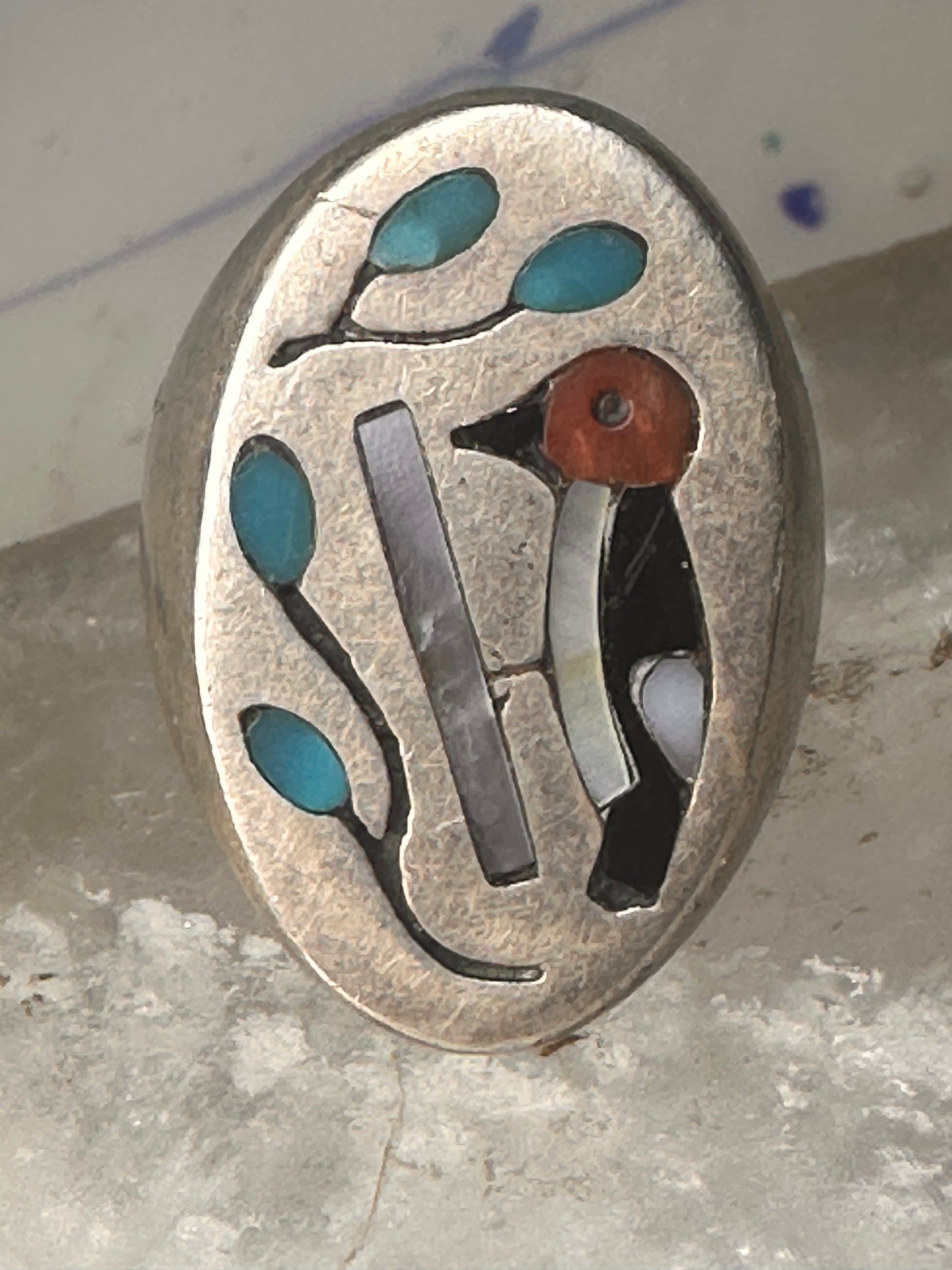 Woodpecker ring Native American turquoise leaves coral onyx size 11.50 sterling silver women men