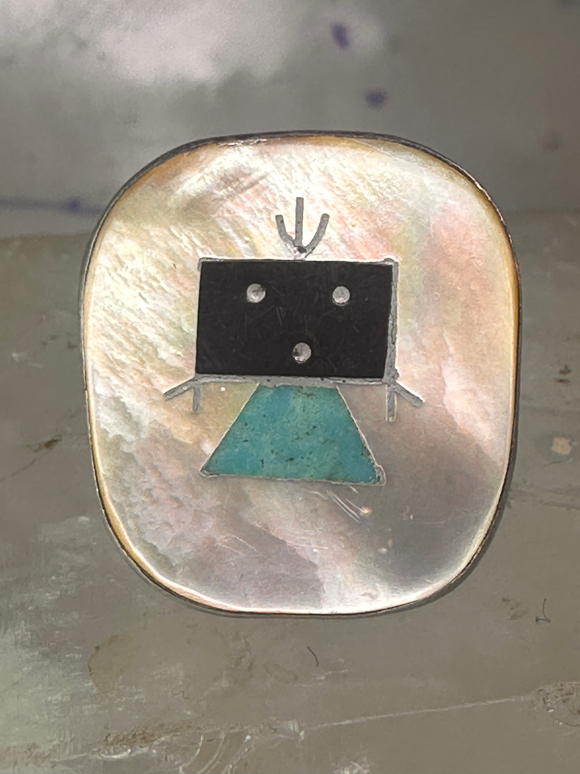 Zuni ring band turquoise Kachina mudman size 5.75 sterling silver women