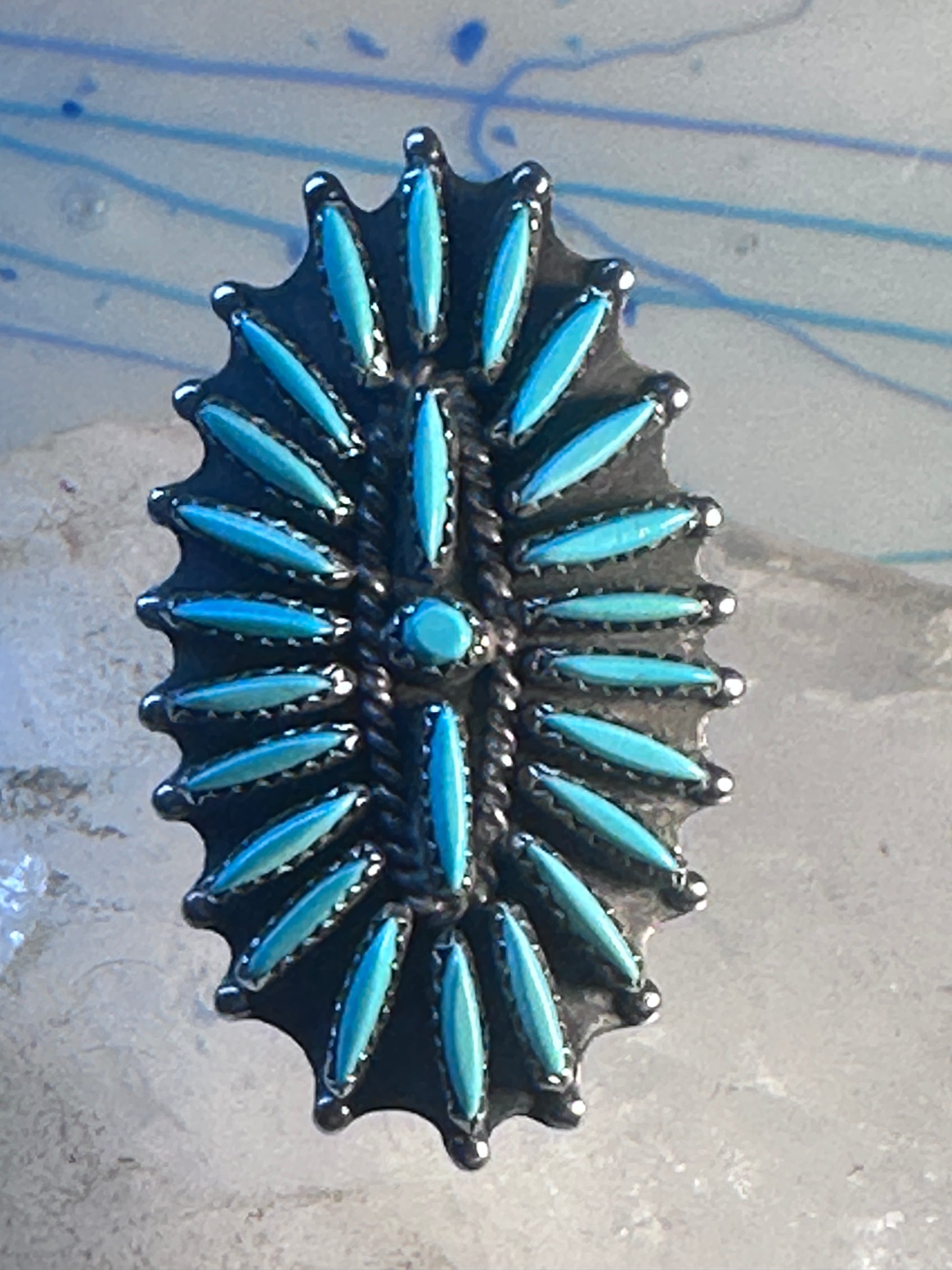Zuni ring long turquoise petite point sterling silver size 10.50 women