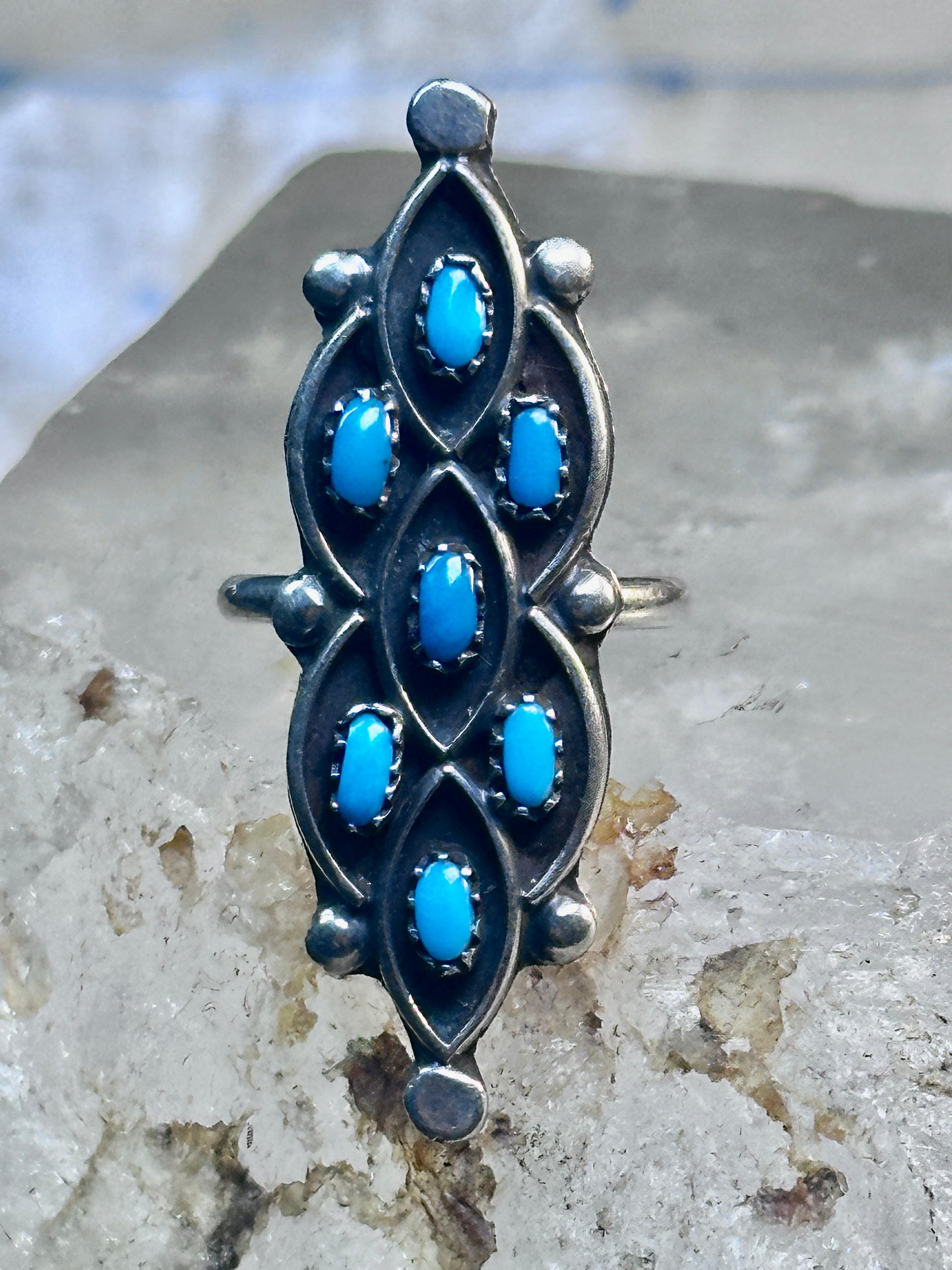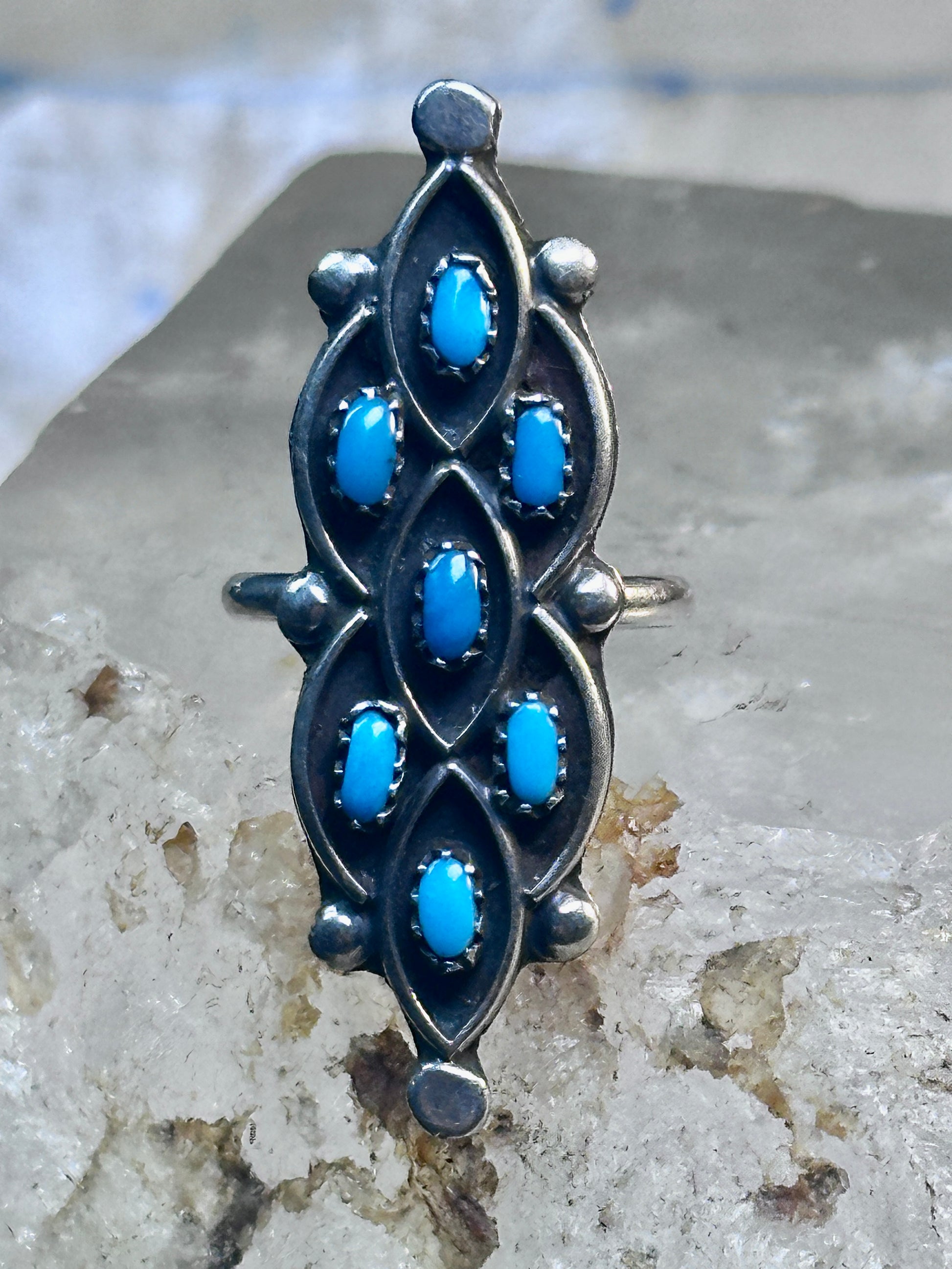 Zuni Ring long Turquoise size 7 sterling silver petite pointe women