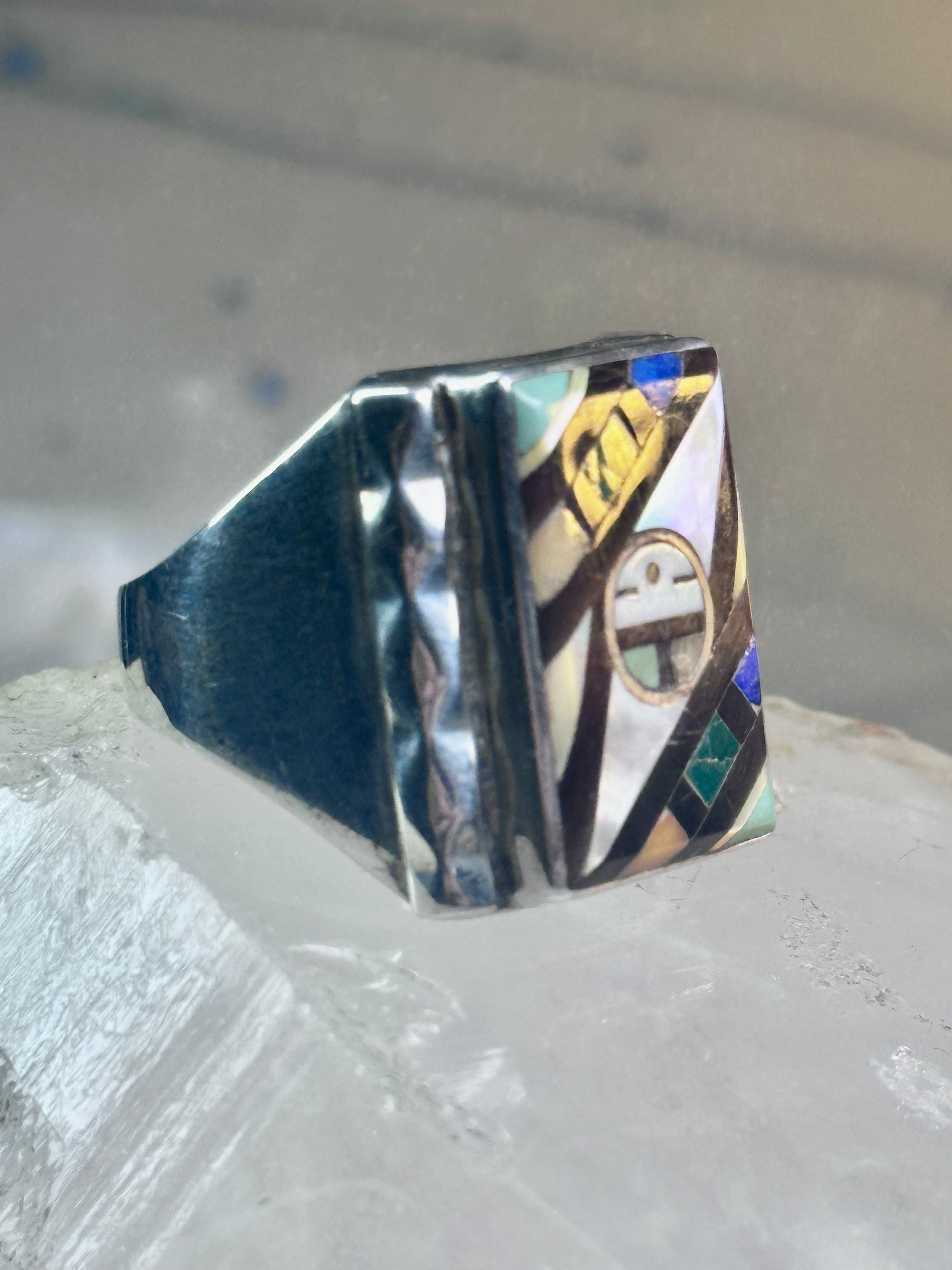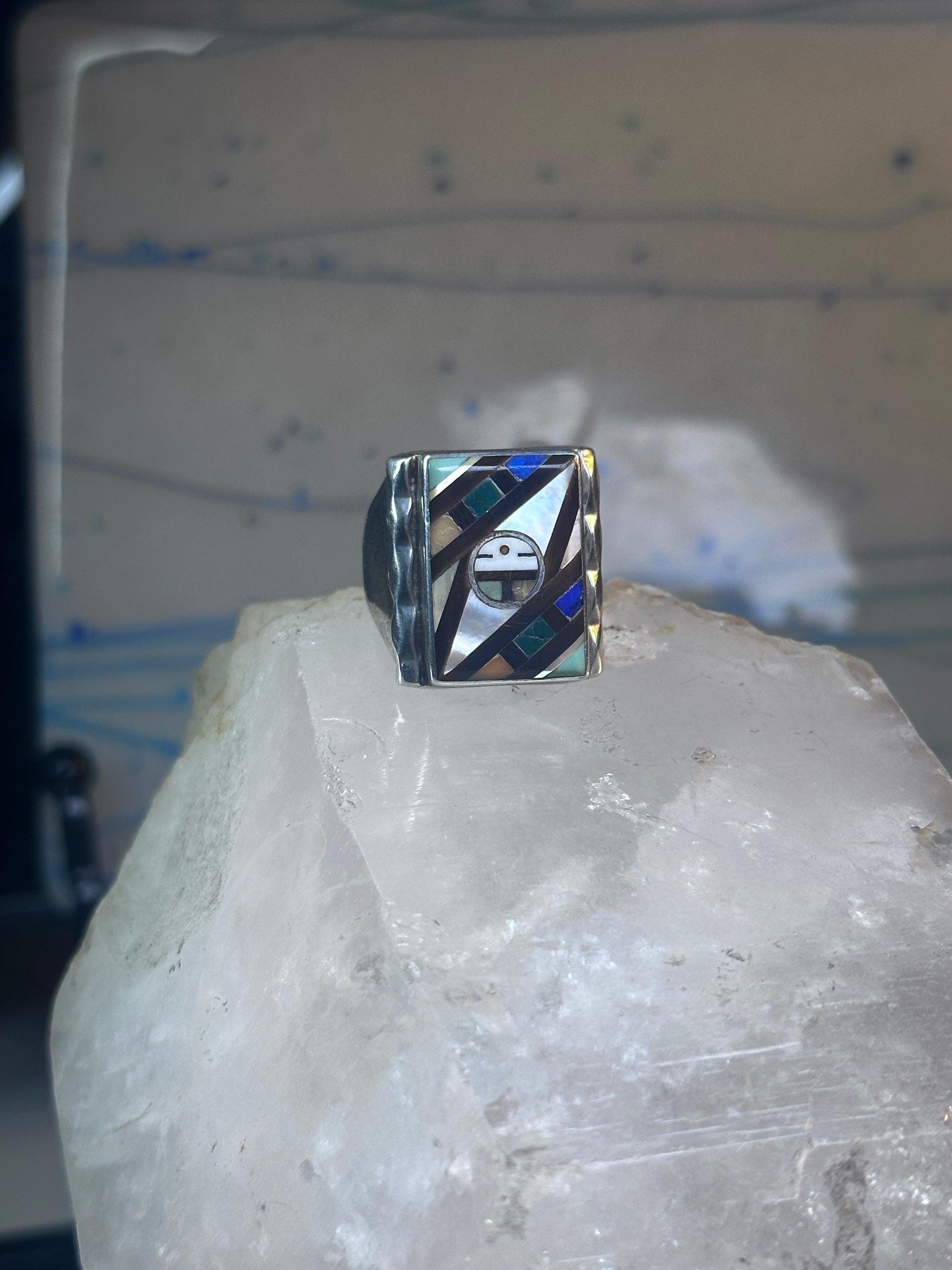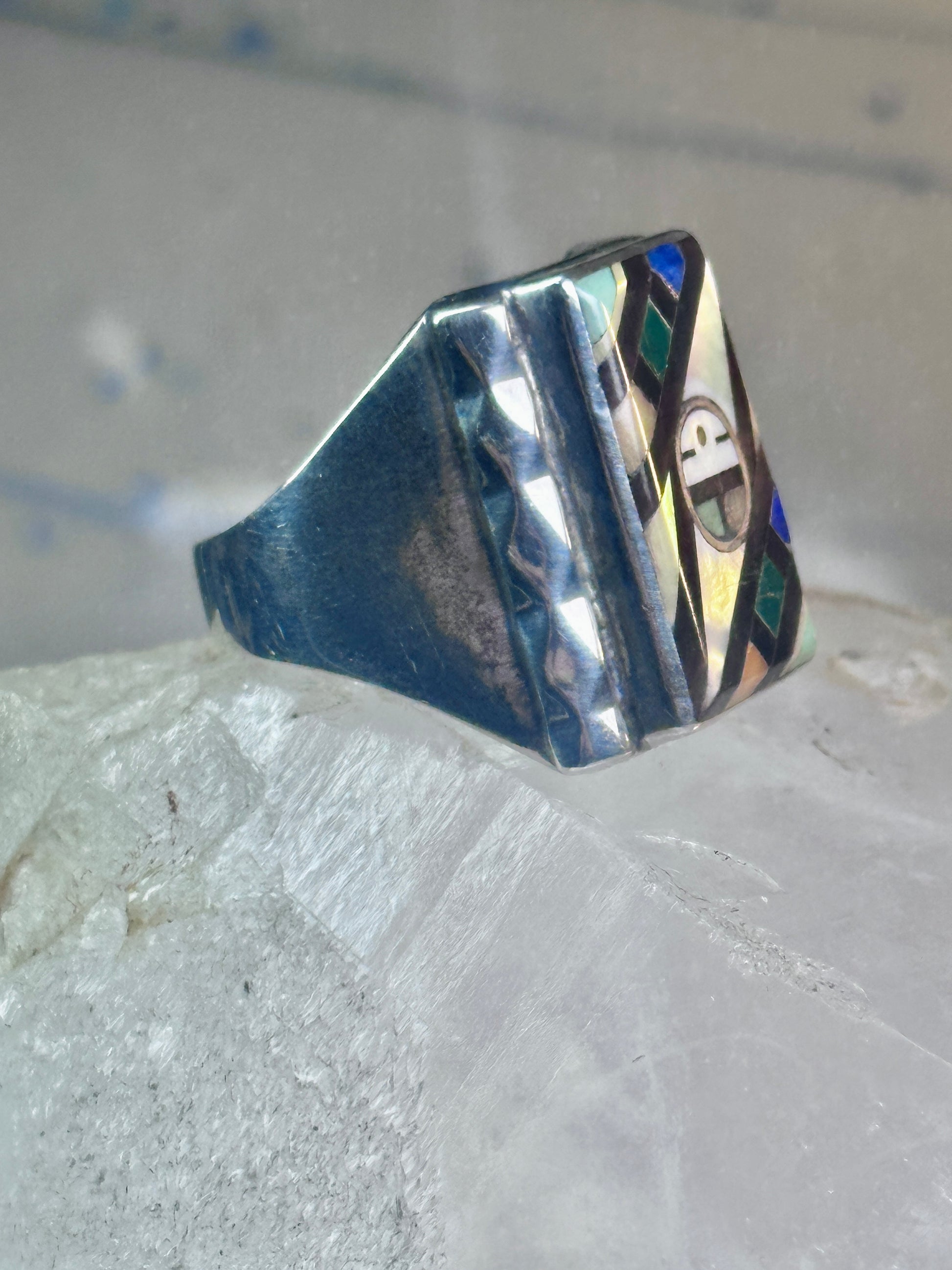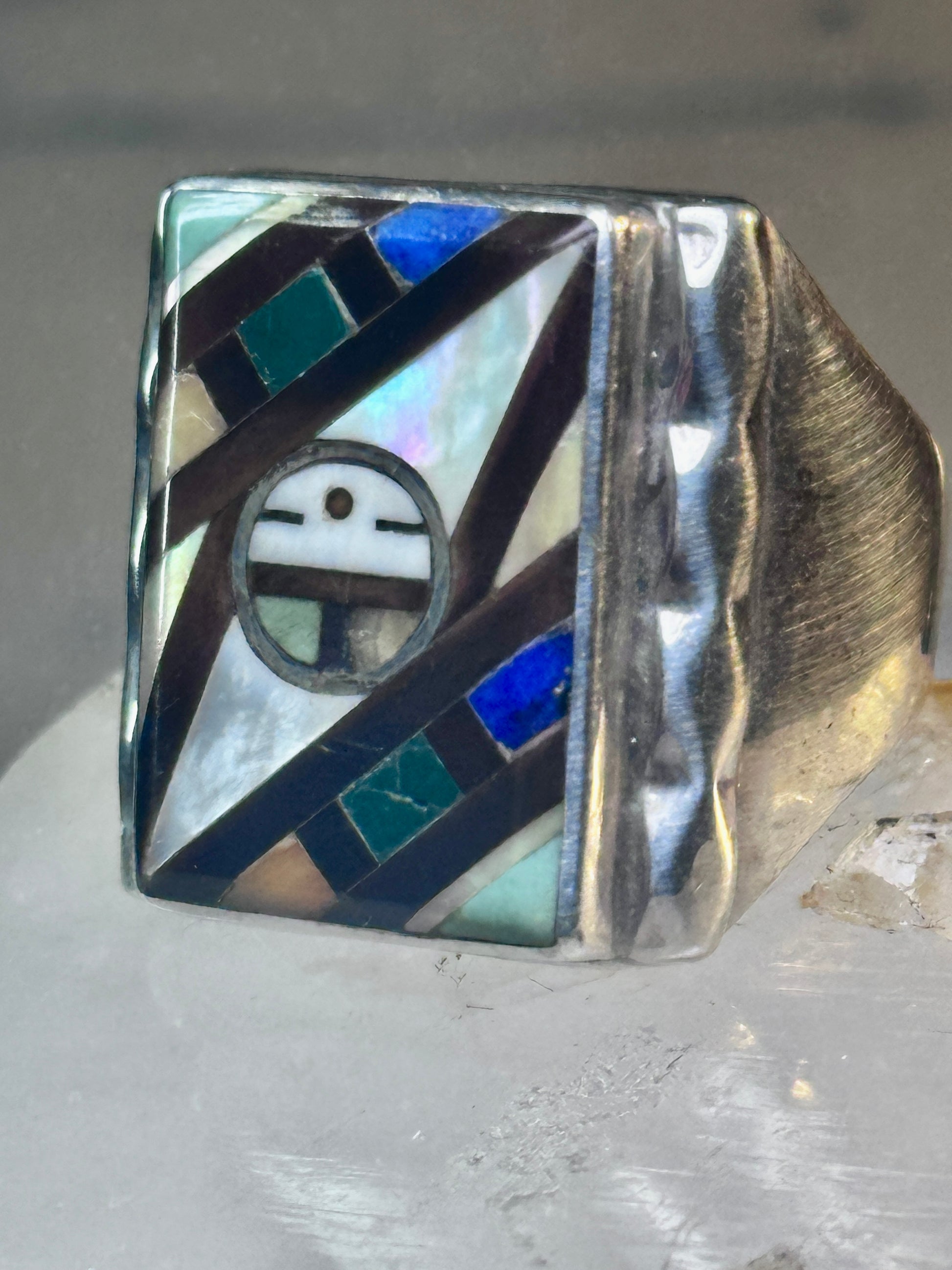 Zuni Ring sun face lapis mother of pearl turquoise size 10.50 sterling silver women men