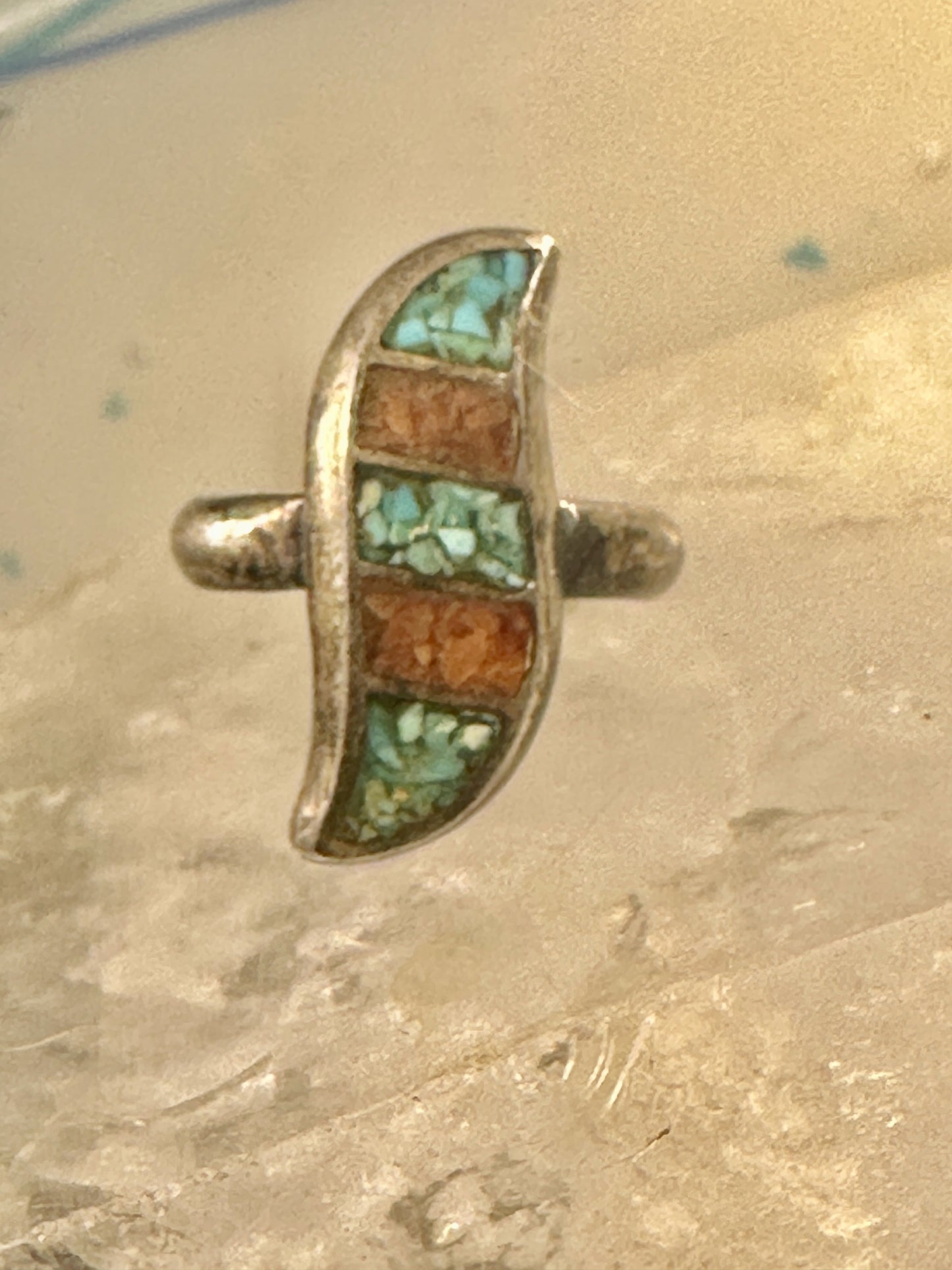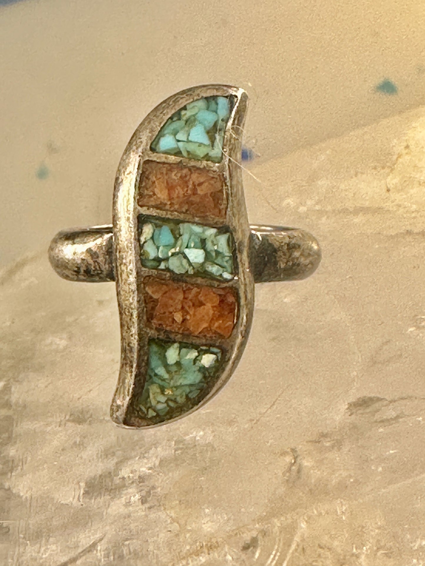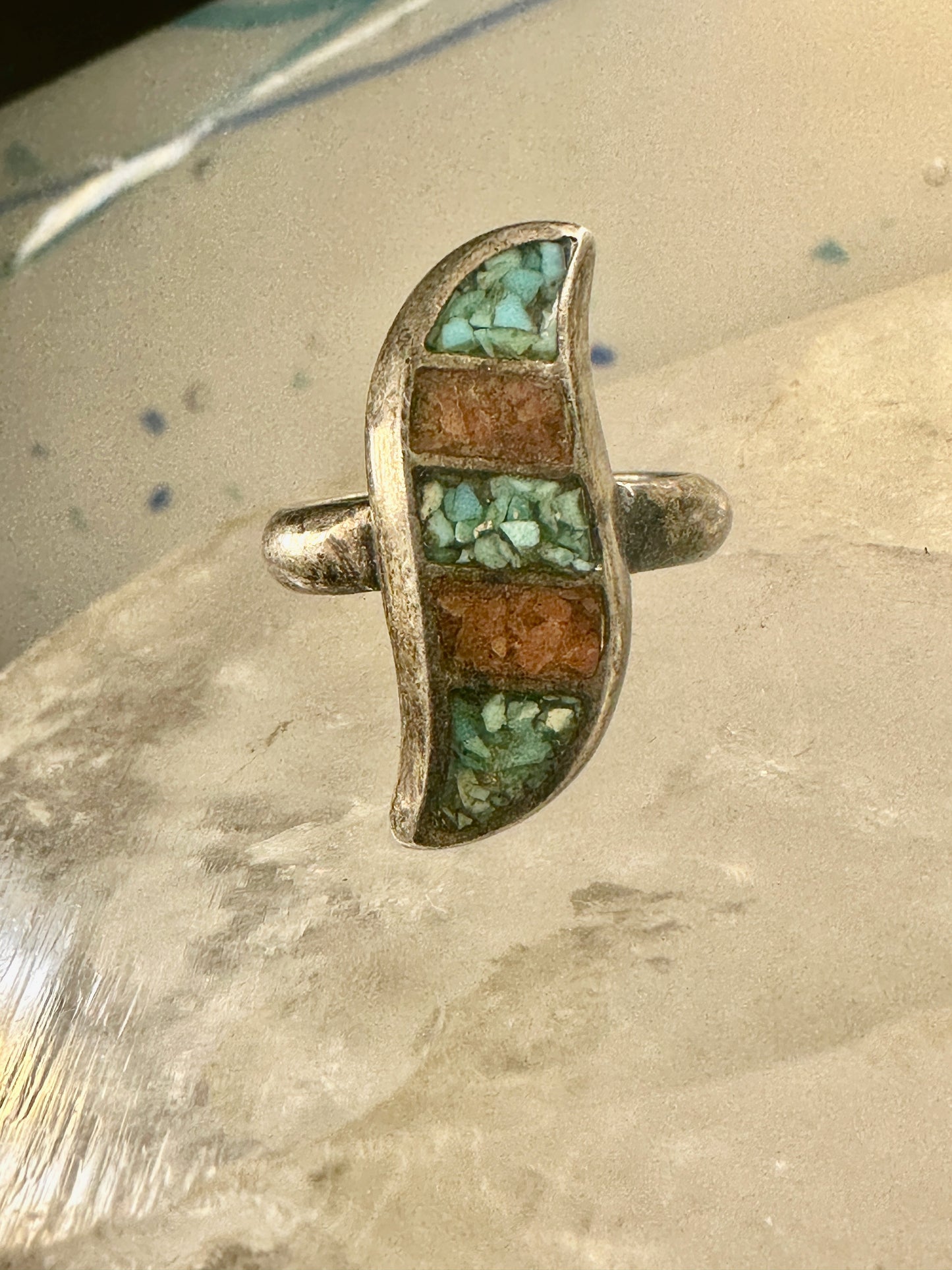 Zuni ring turquoise coral chips band size 5.50 sterling silver women