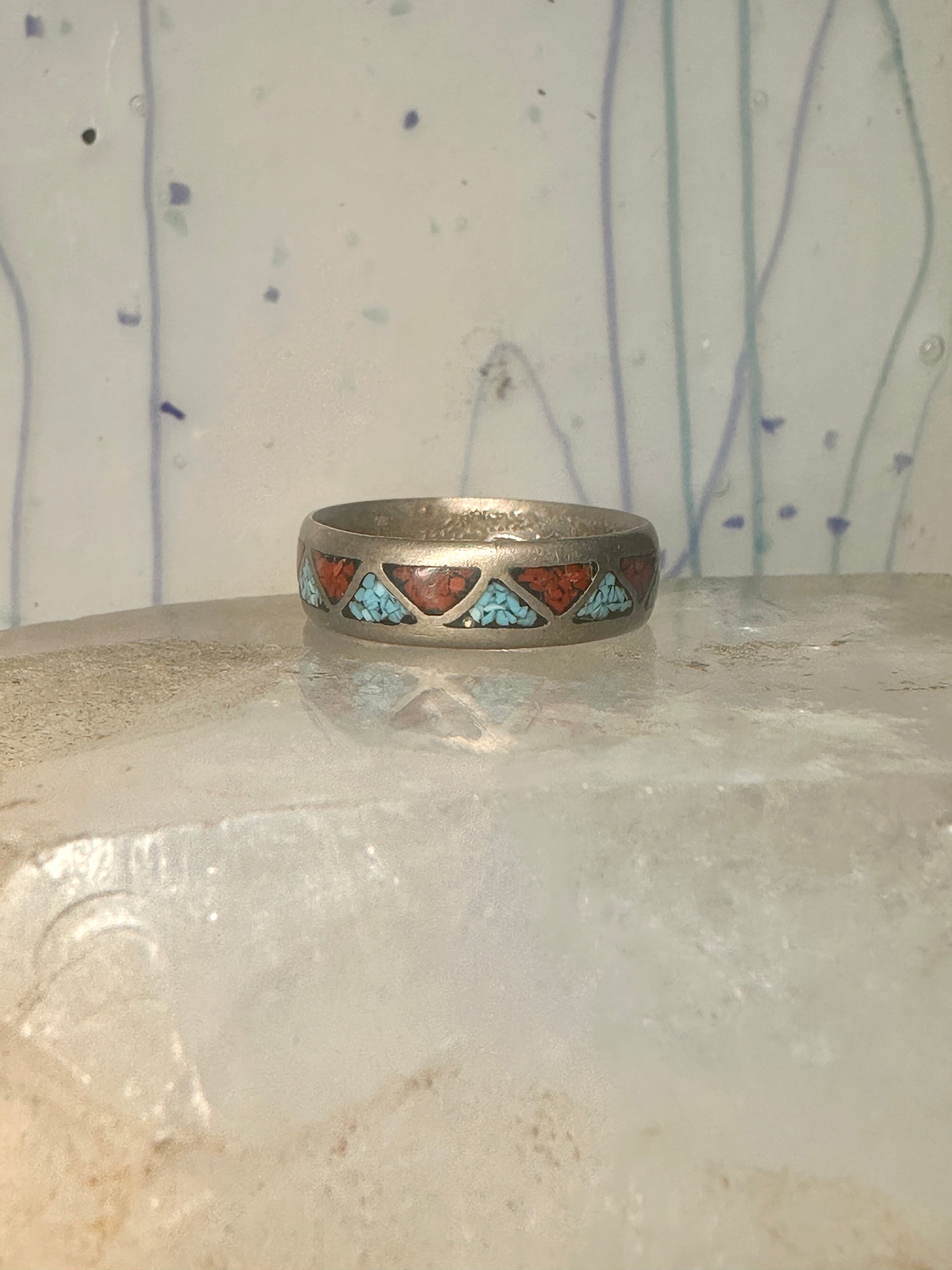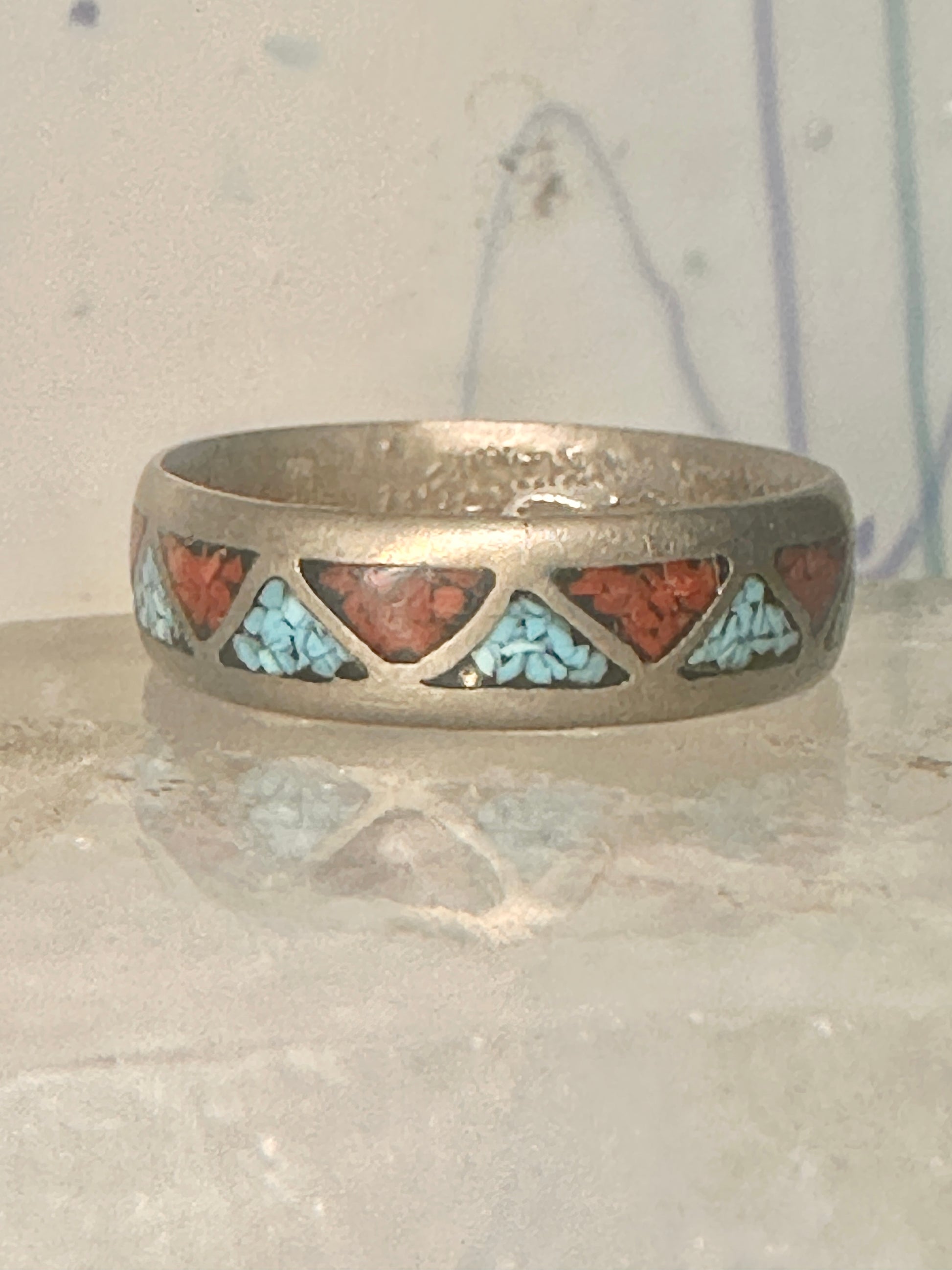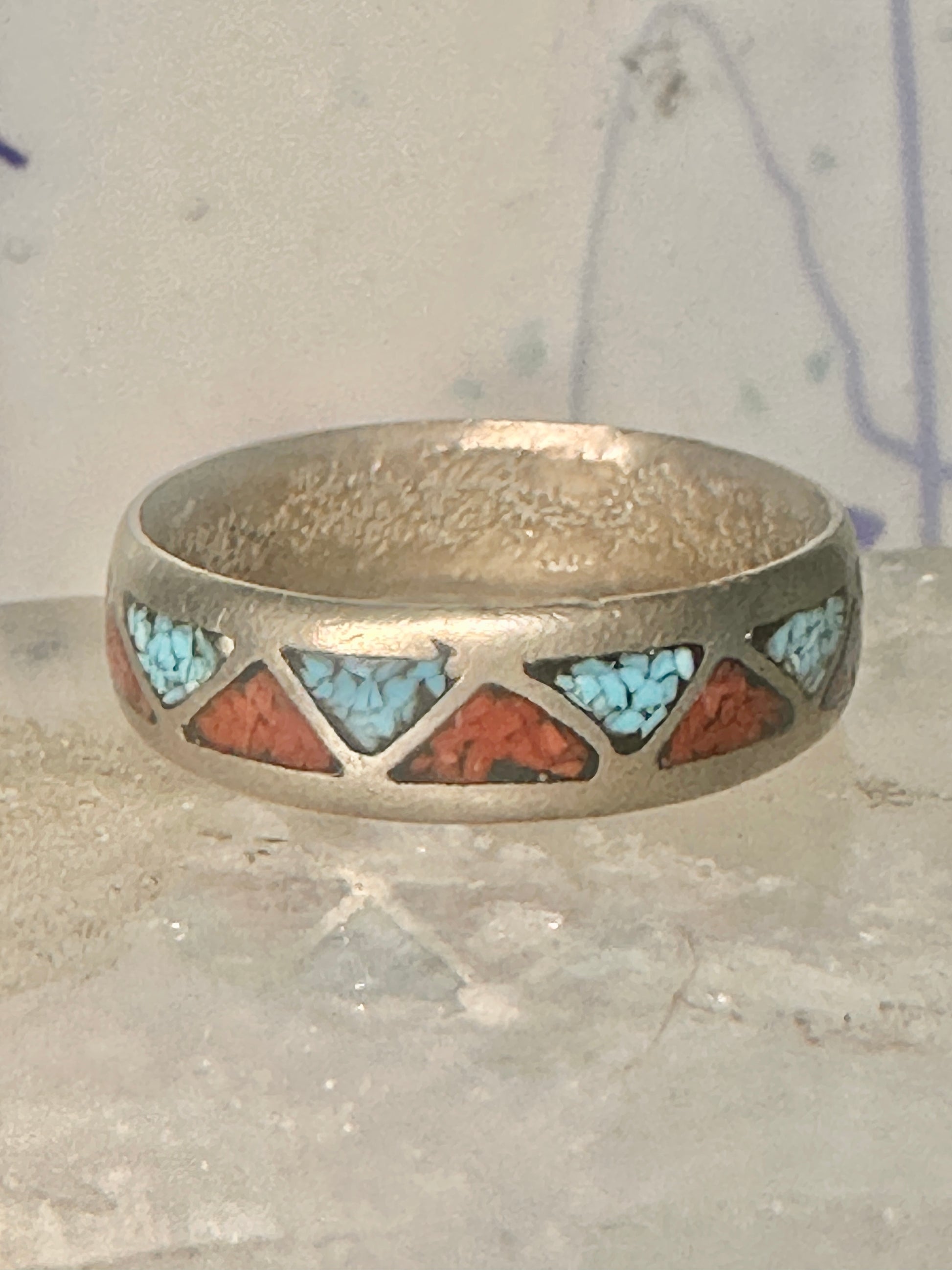 Zuni ring turquoise coral chips wedding band size 11.50 sterling silver women men