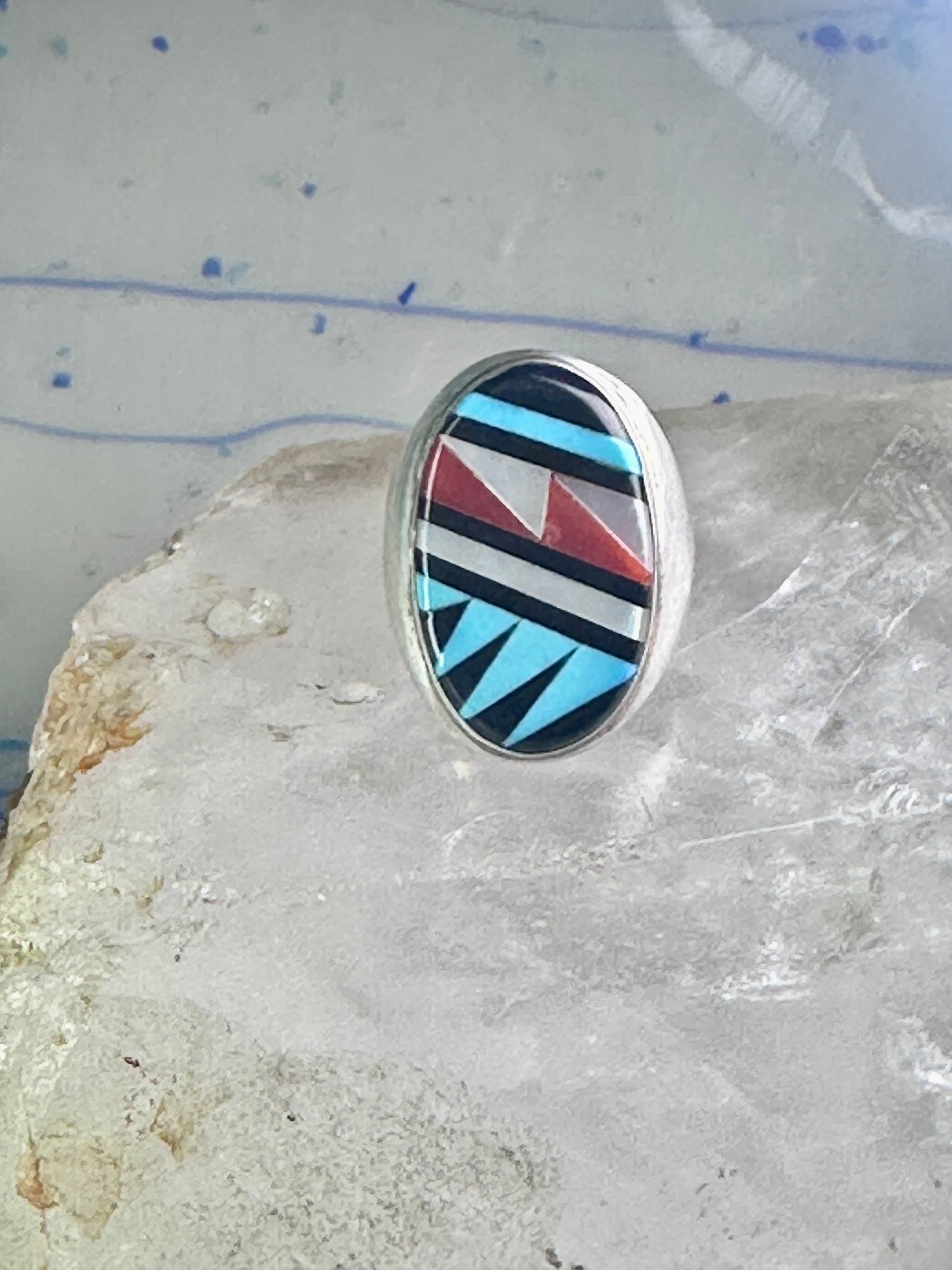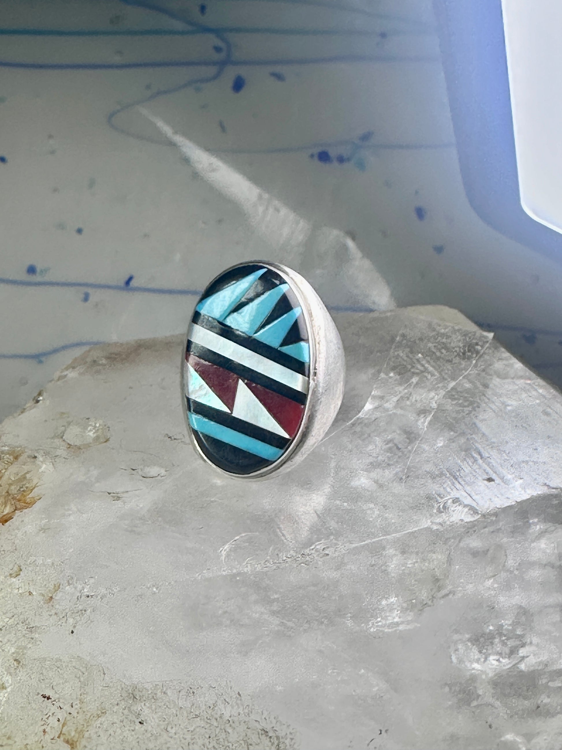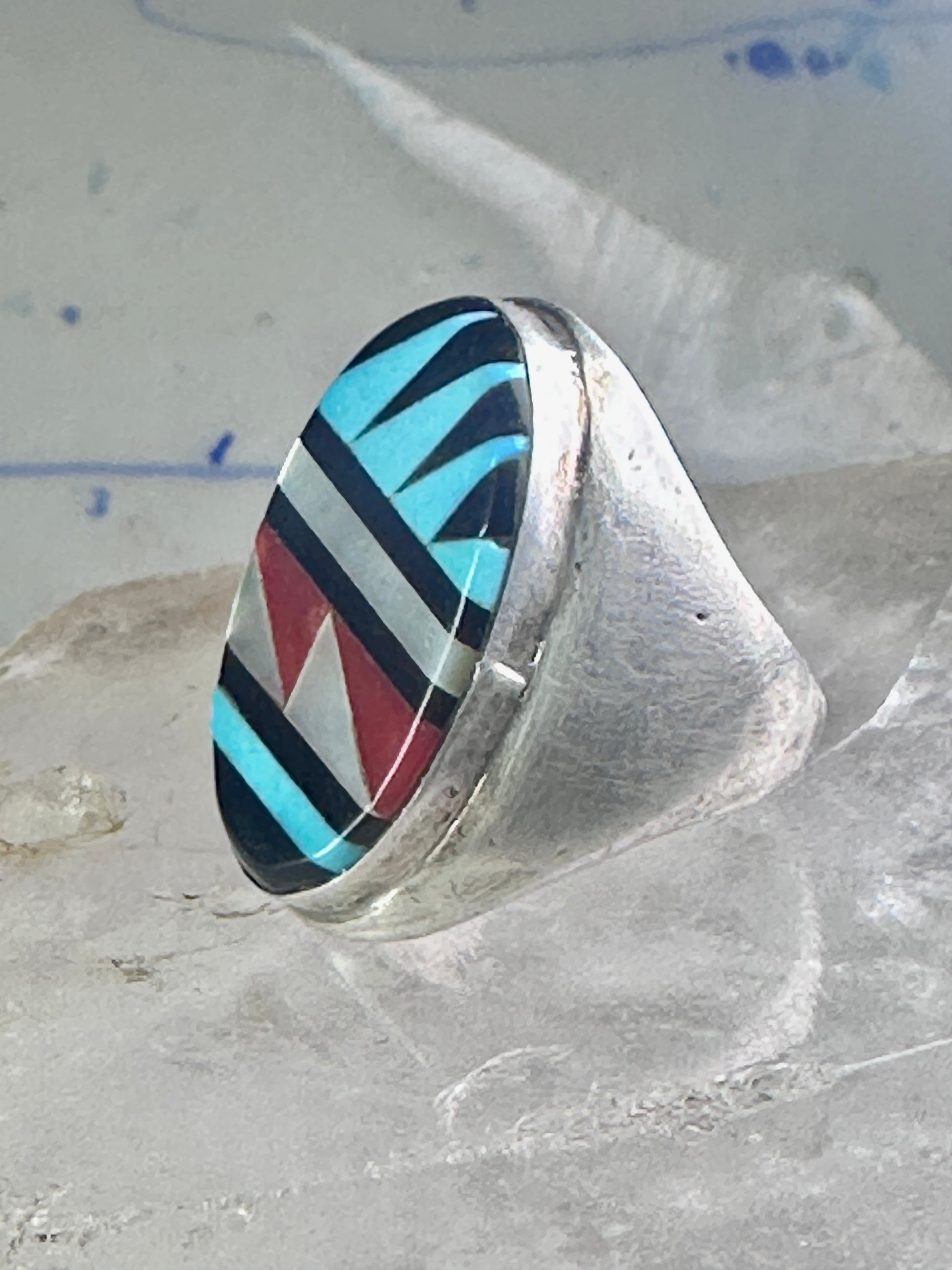 Zuni ring Turquoise coral MOP Onyx band size 8.25 sterling silver women men