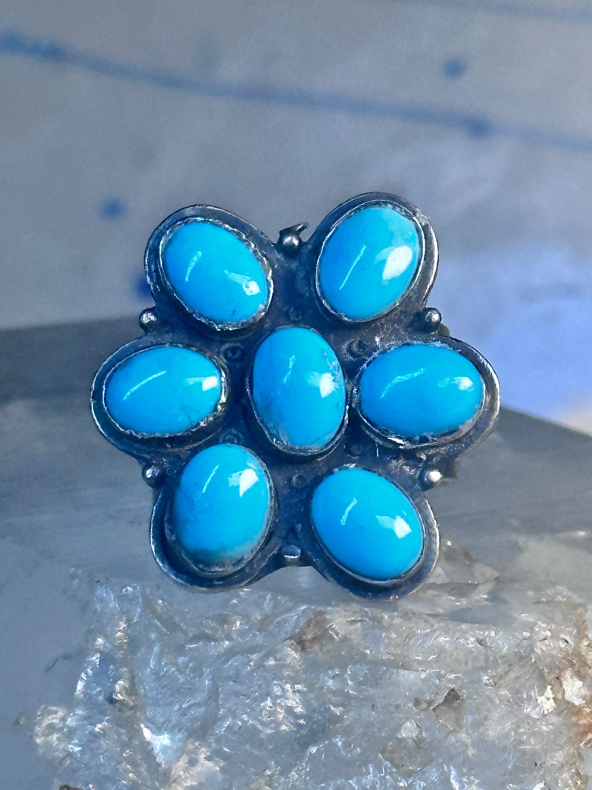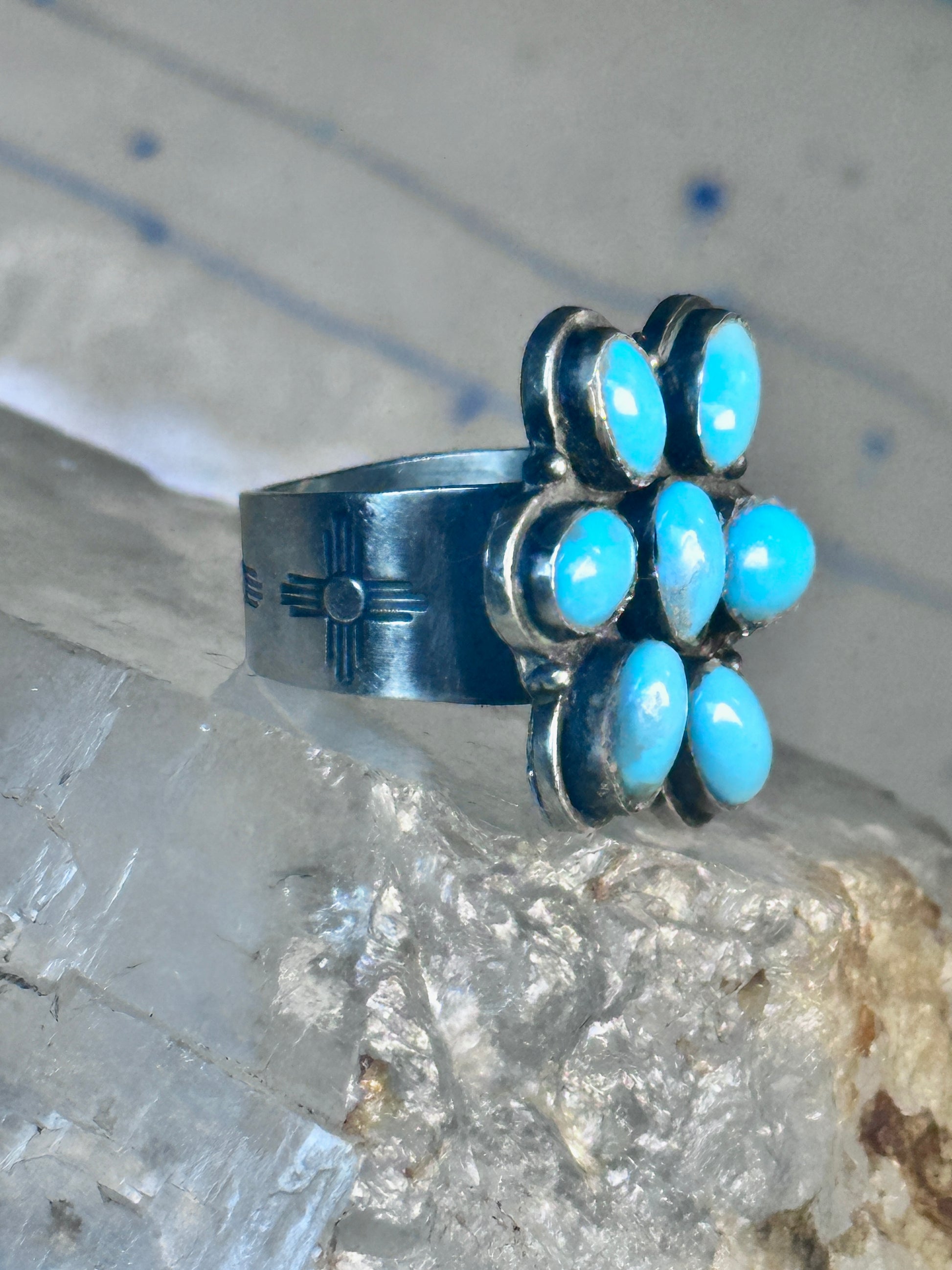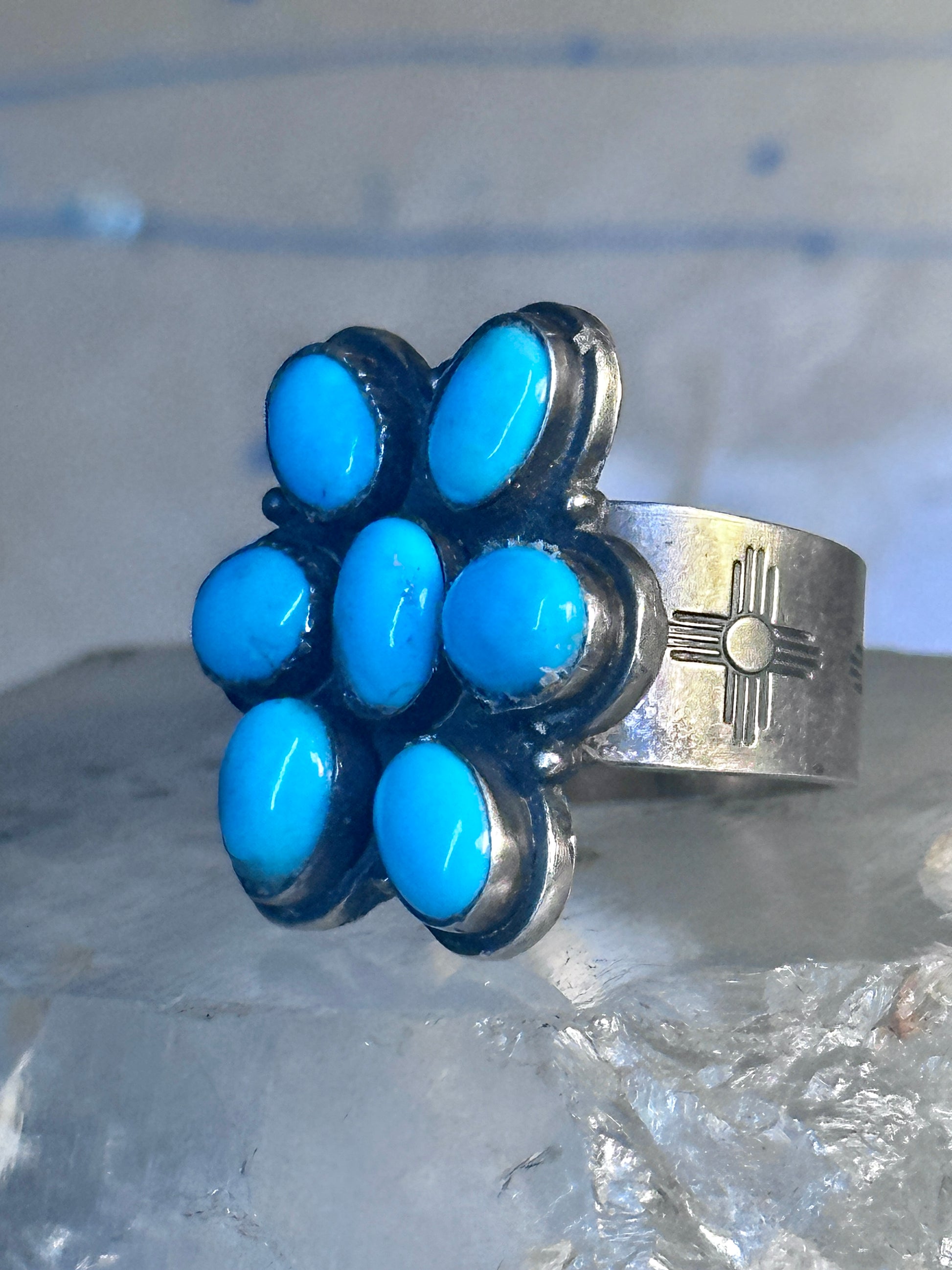 Zuni Ring Turquoise Flower size 8.25 sterling silver women