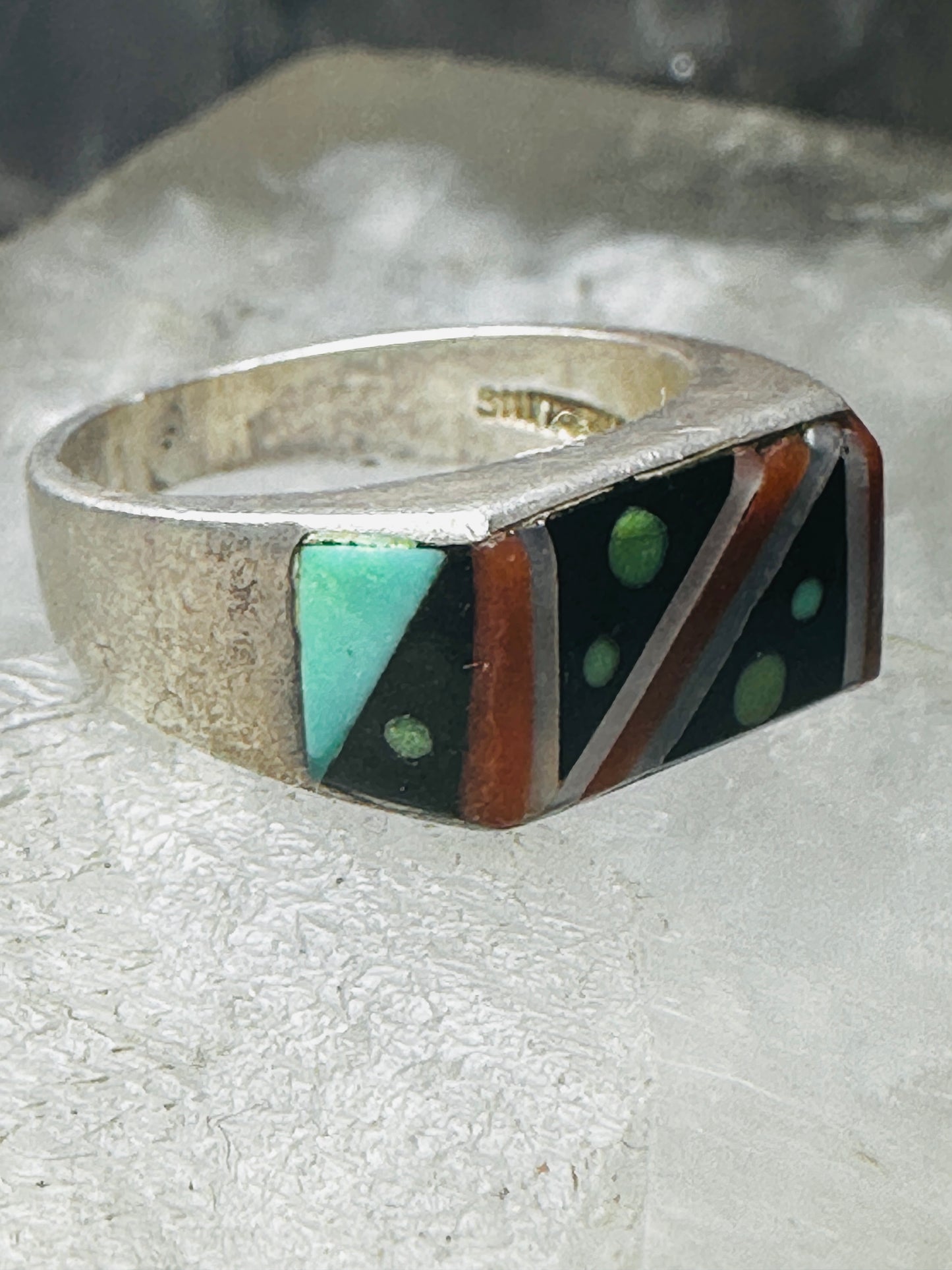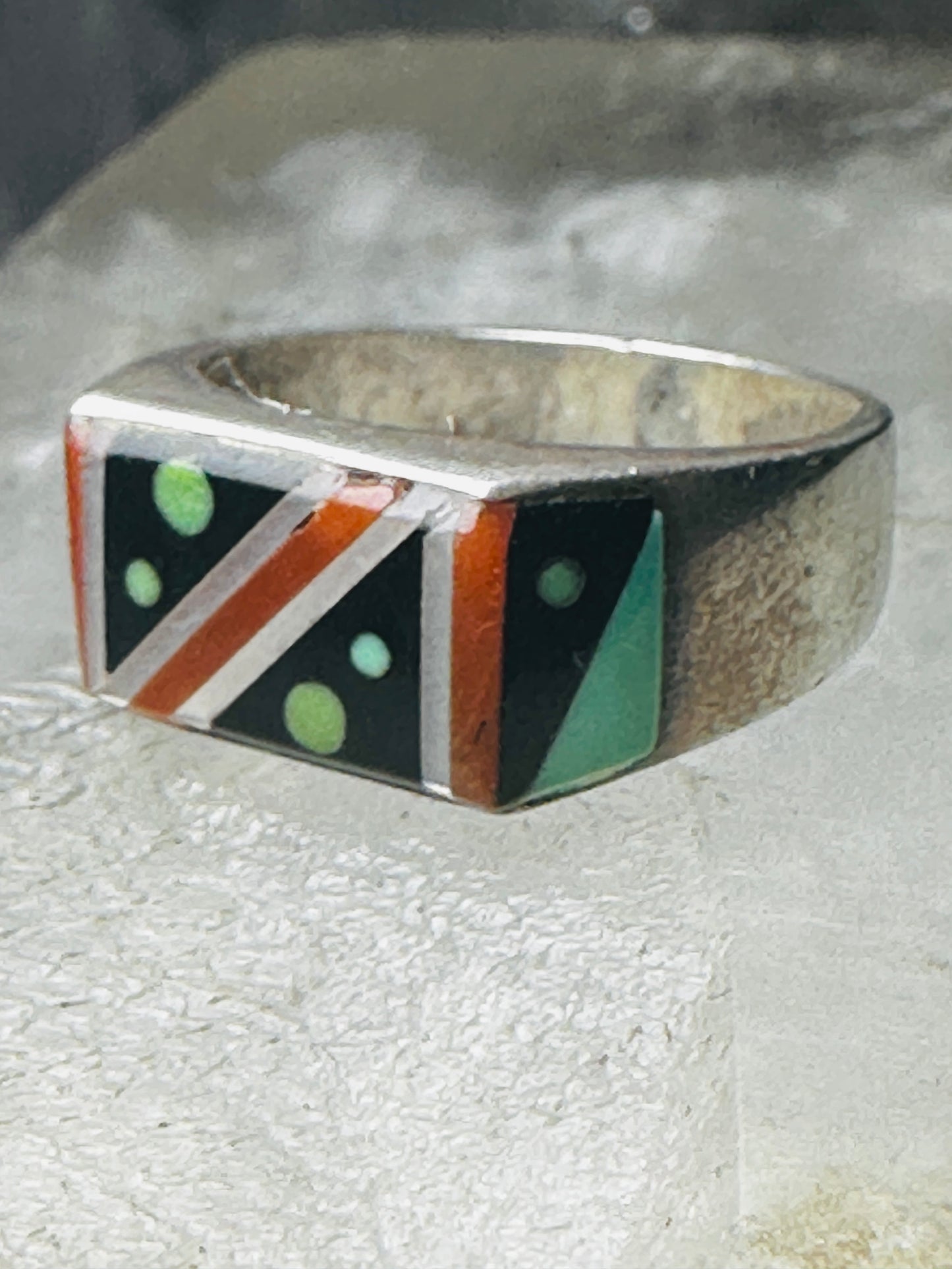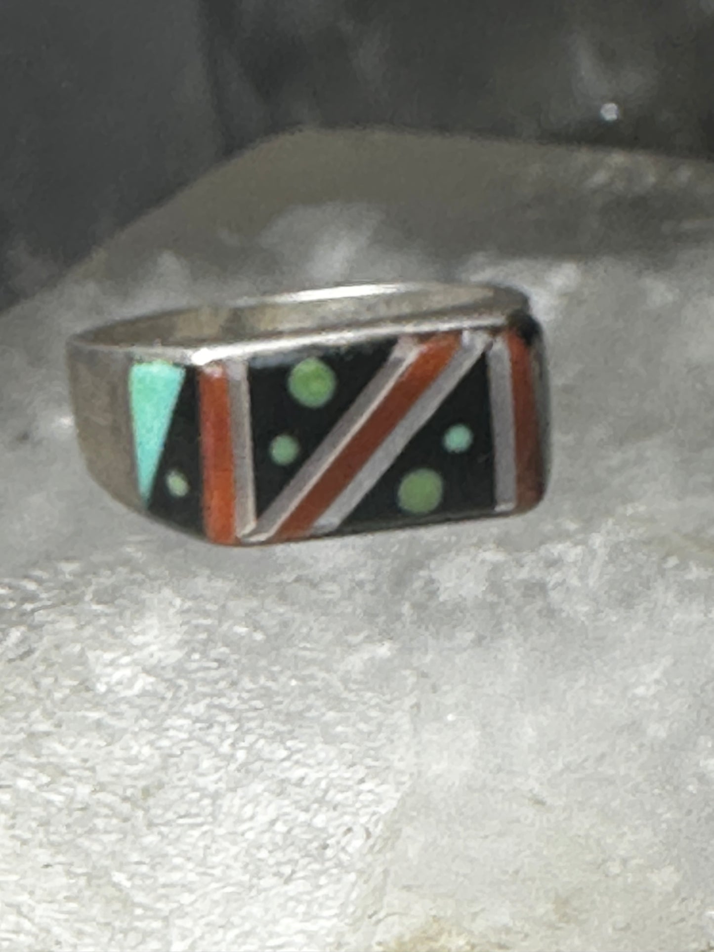 Zuni ring turquoise onyx inlay size 6 sterling silver women girls