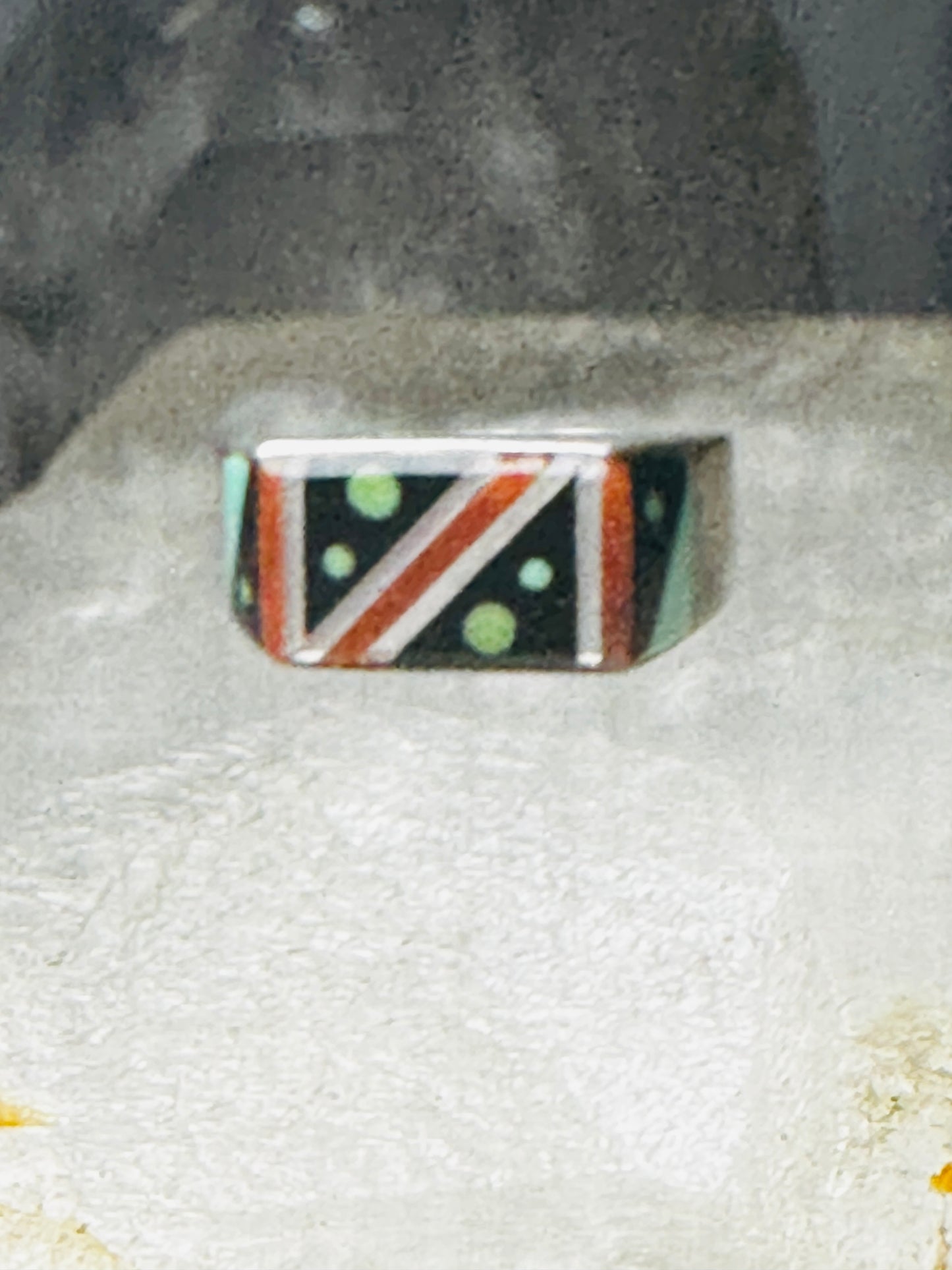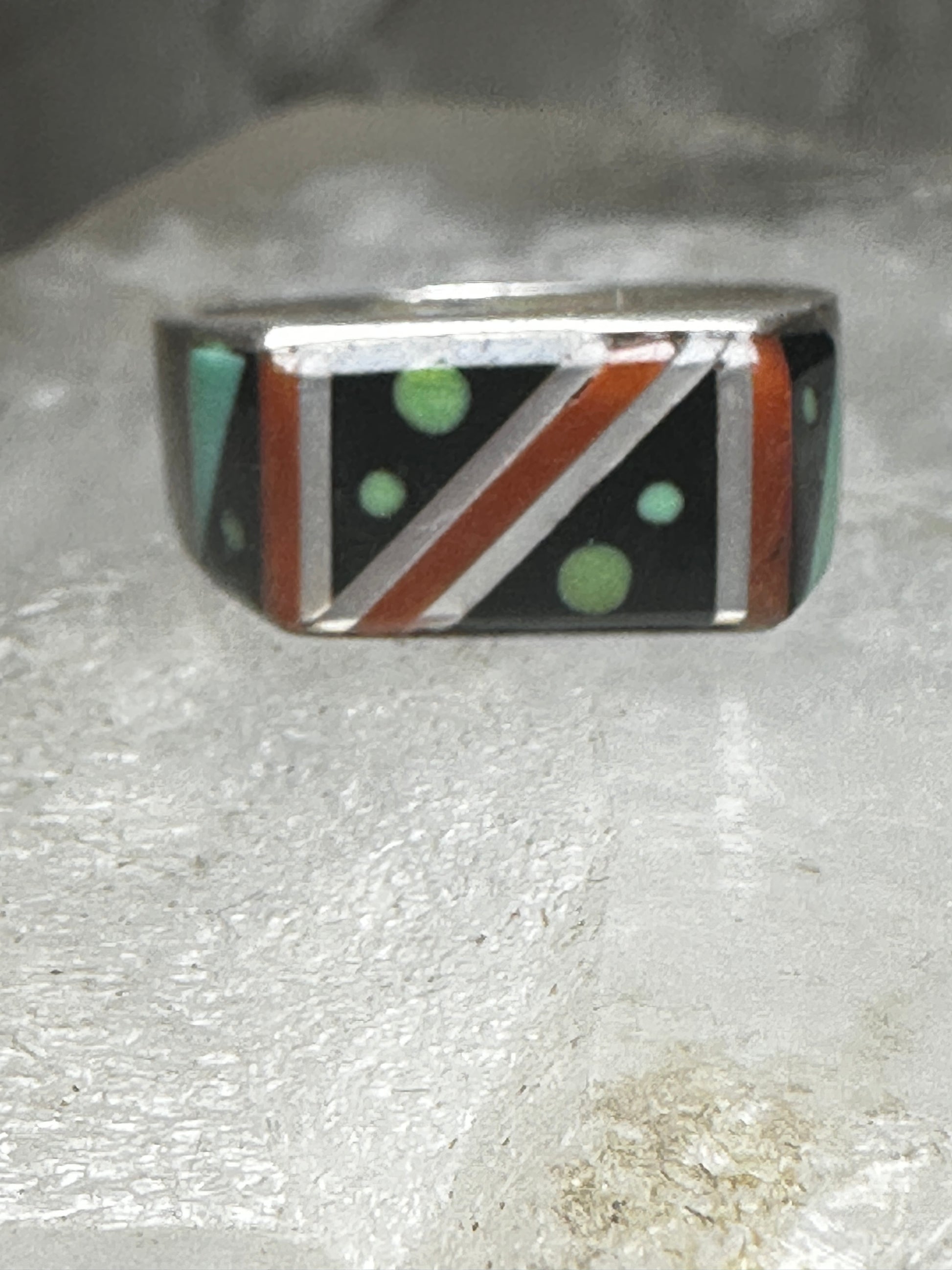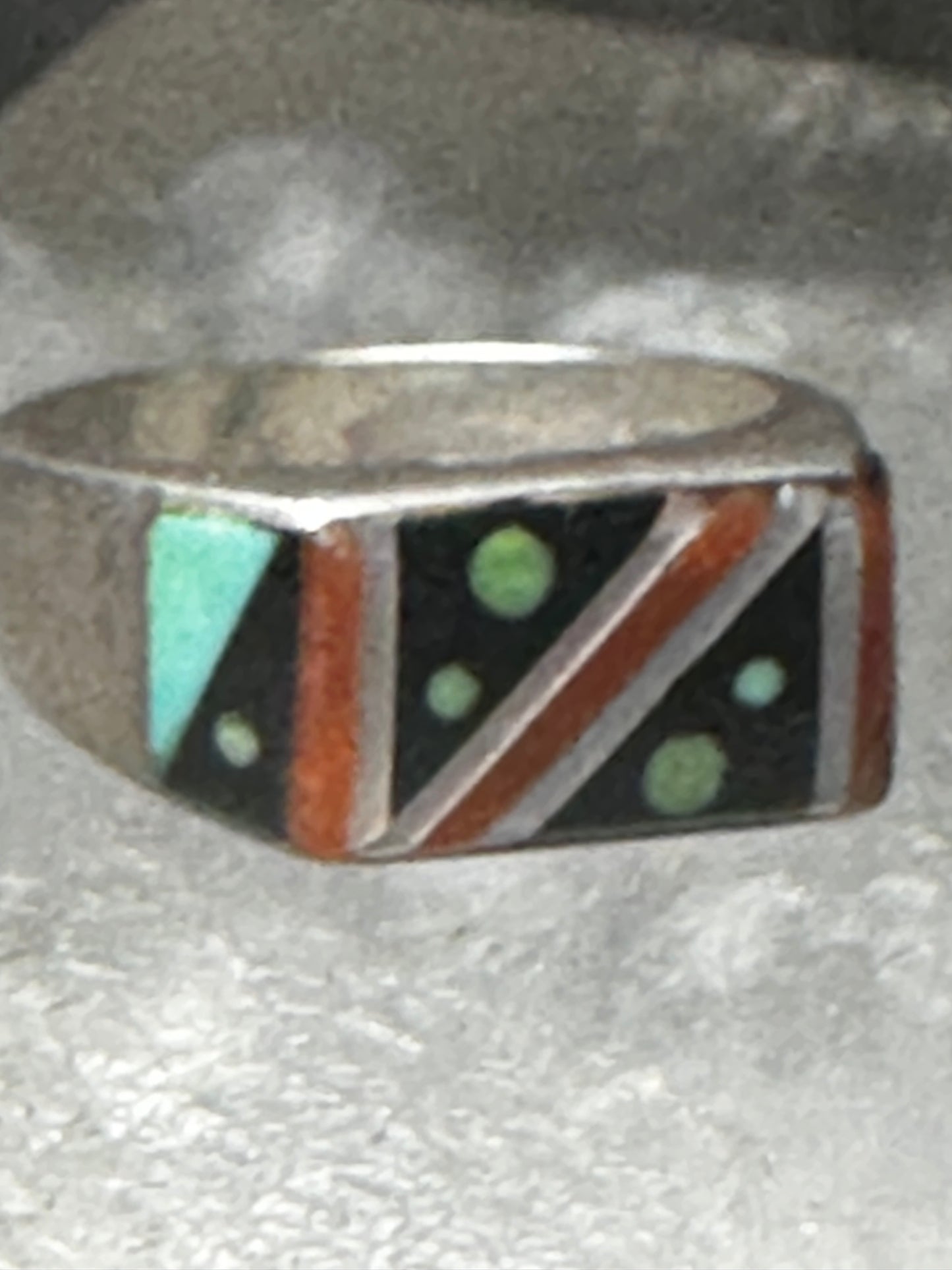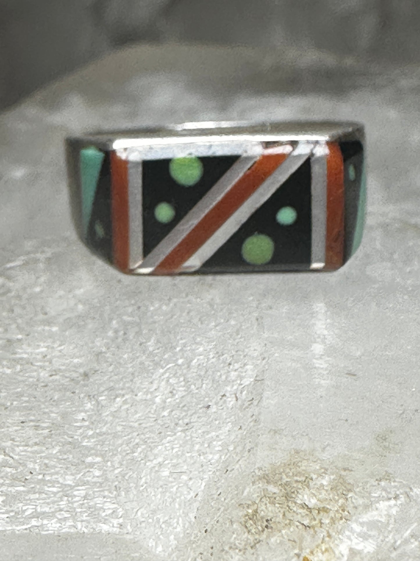 Zuni ring turquoise onyx inlay size 6 sterling silver women girls